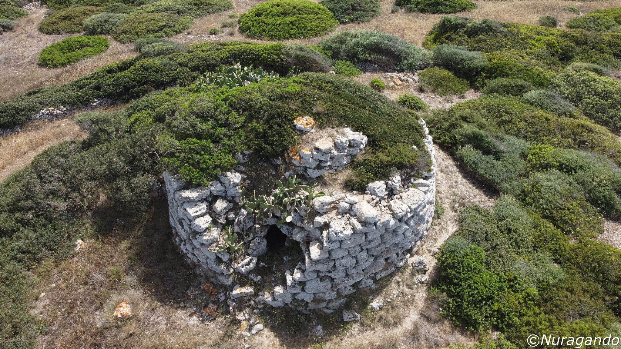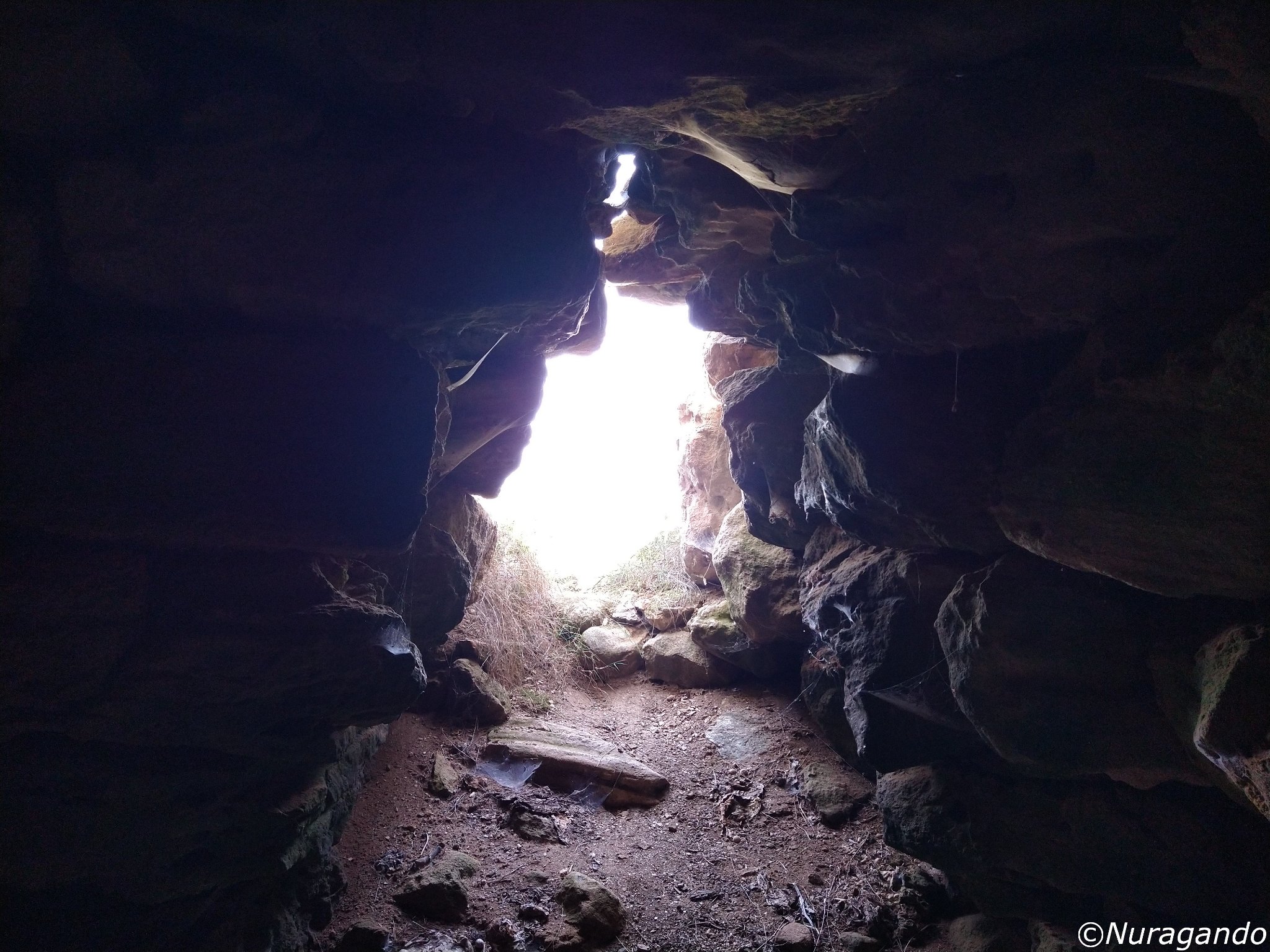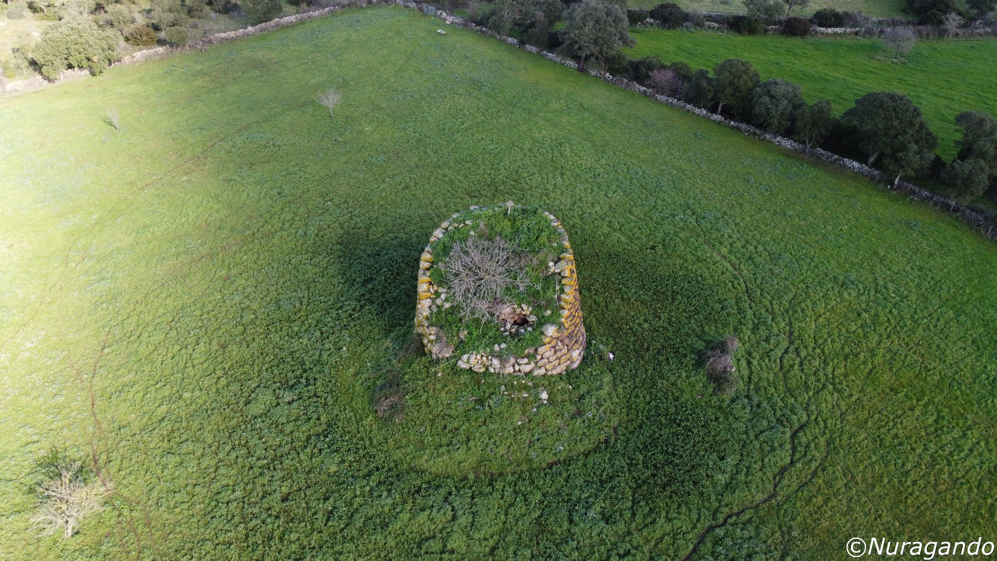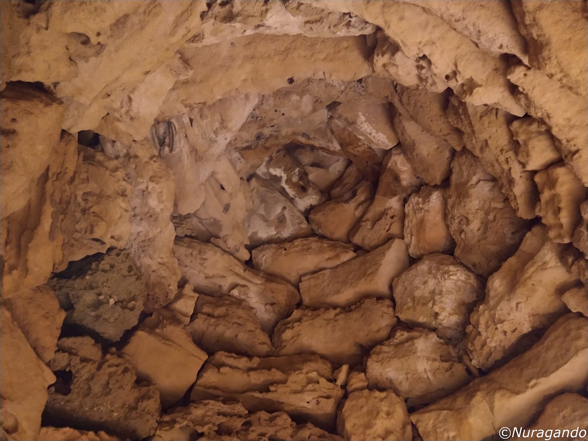 Da un pertugio fra i grossi conci, della parte superiore del paramento esterno si accede al corridoio che era il vano in cui si sviluppava la scala elicoidale che dava accesso alla parte superiore della torre. Infatti il corridoio termina su due grandi architravi totalmente interrati. Il nuraghe appare in pessime condizioni di conservazione. E’ avvolto, in parte da arbusti di lentischio e fichi d’india, la causa dei crolli e dell’interramento, sino a circa due metri dal calpestio.