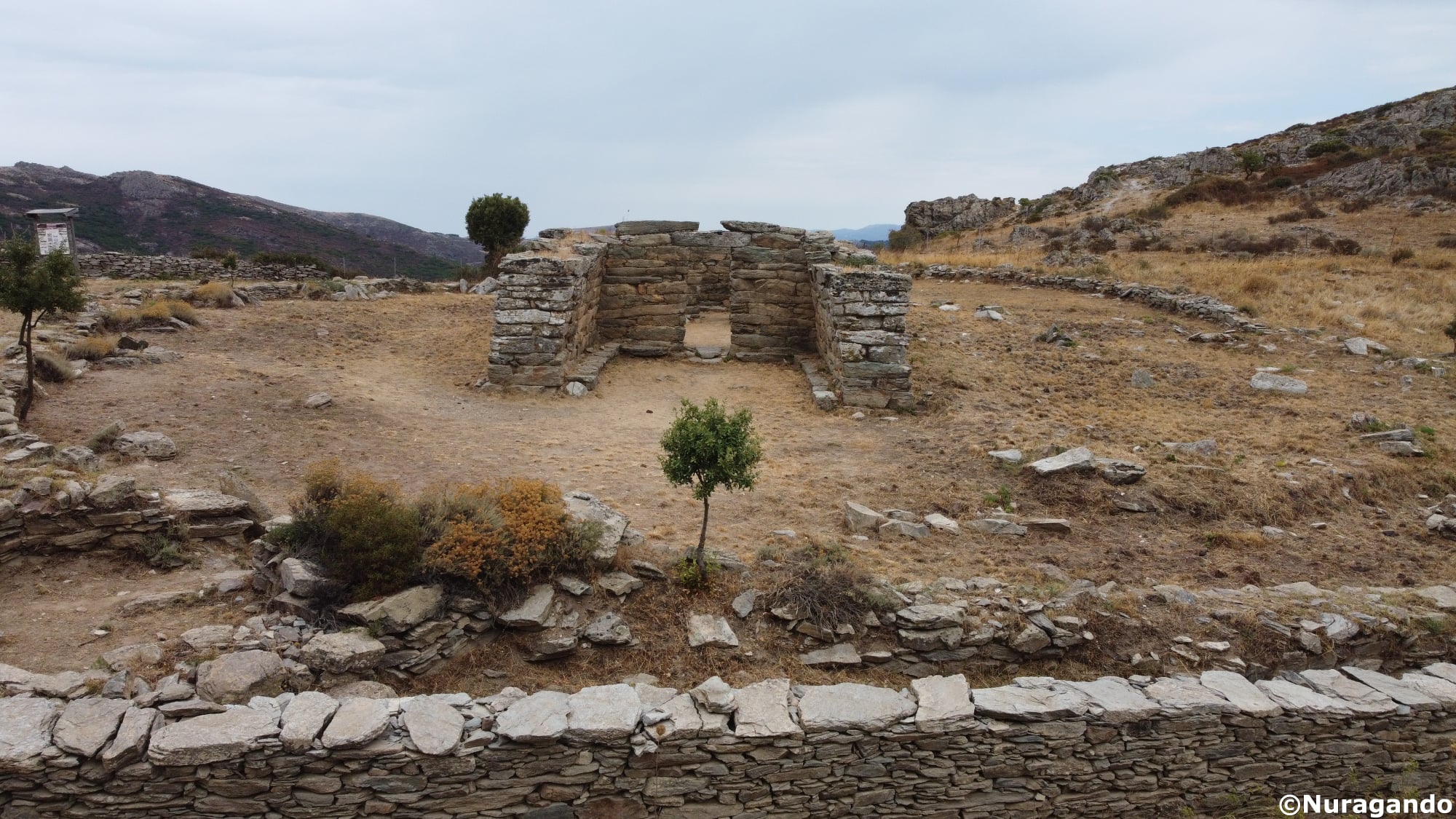 Il monumento è preceduto da un vestibolo “in antis” (m 5,15 x 5), costituito dal prolungamento dei muri lunghi laterali del corpo principale e dotato di banconi-sedile lungo entrambe le pareti.