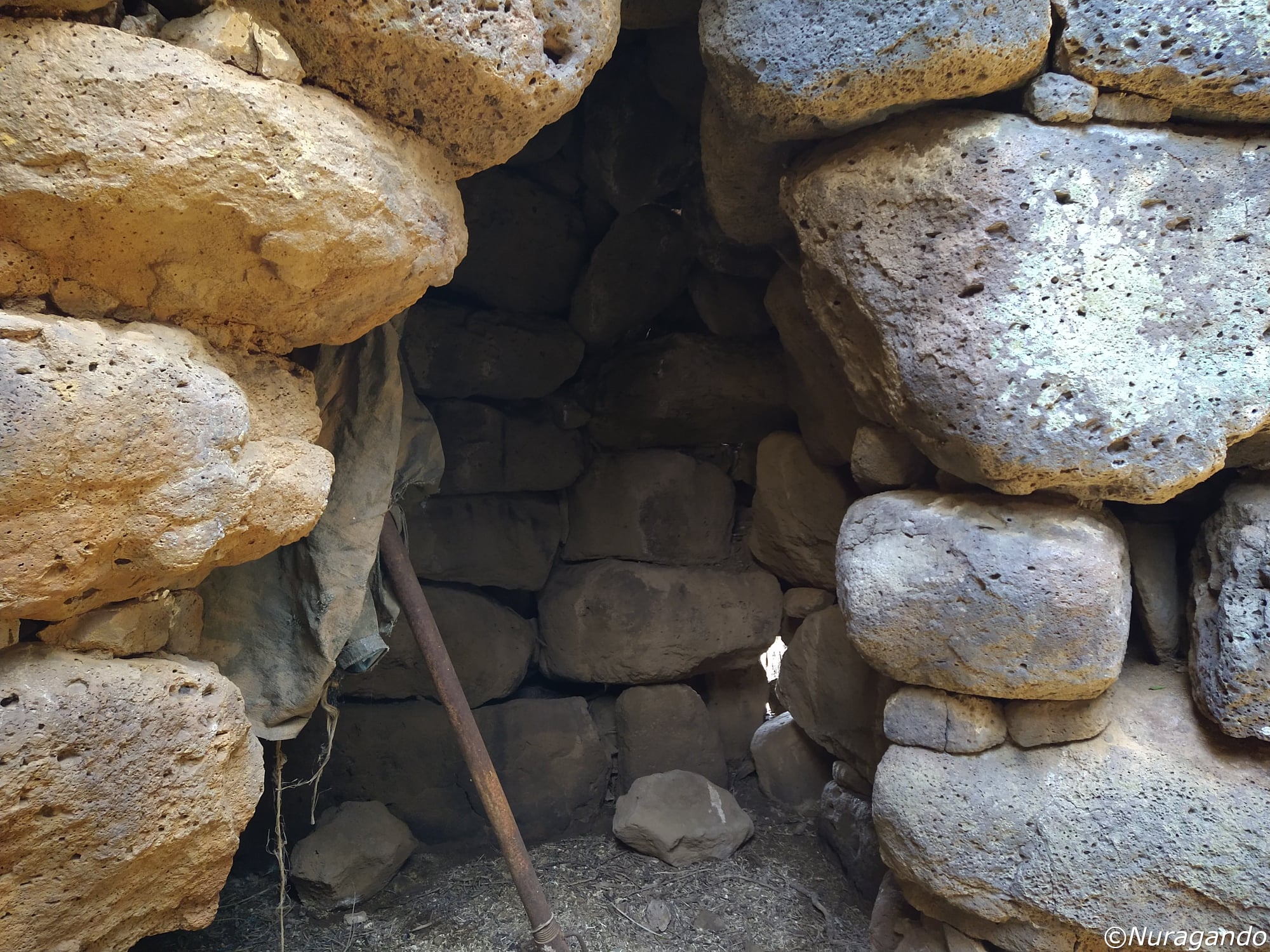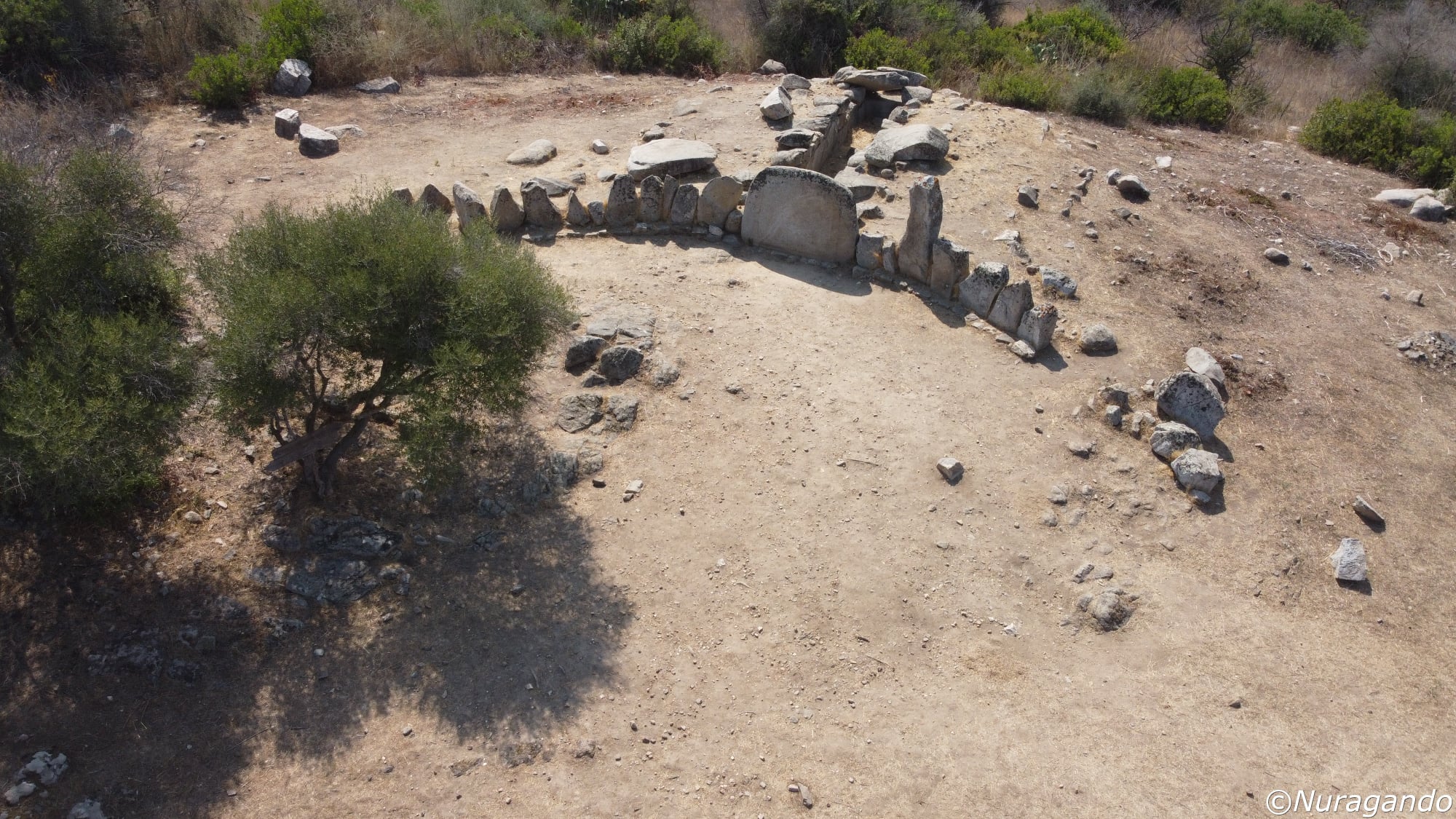 La sepoltura – del tipo a filari con stele centinata – conserva, in parte, il corpo tombale absidato orientato a E e costruito con blocchi di granito e di porfido poliedrici di medie dimensioni. Il breve corridoio interno, rettangolare, presenta le pareti formate da ortostati di base sui quali poggiano tre filari di blocchi sbozzati; il piano pavimentale è costituito dalla roccia affiorante. La sepoltura si data intorno al 1500 a.C.