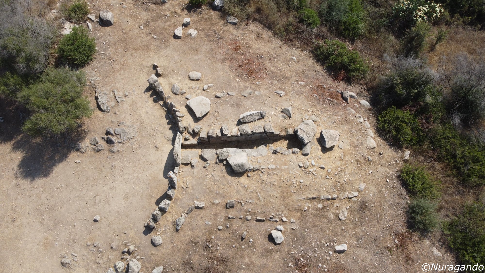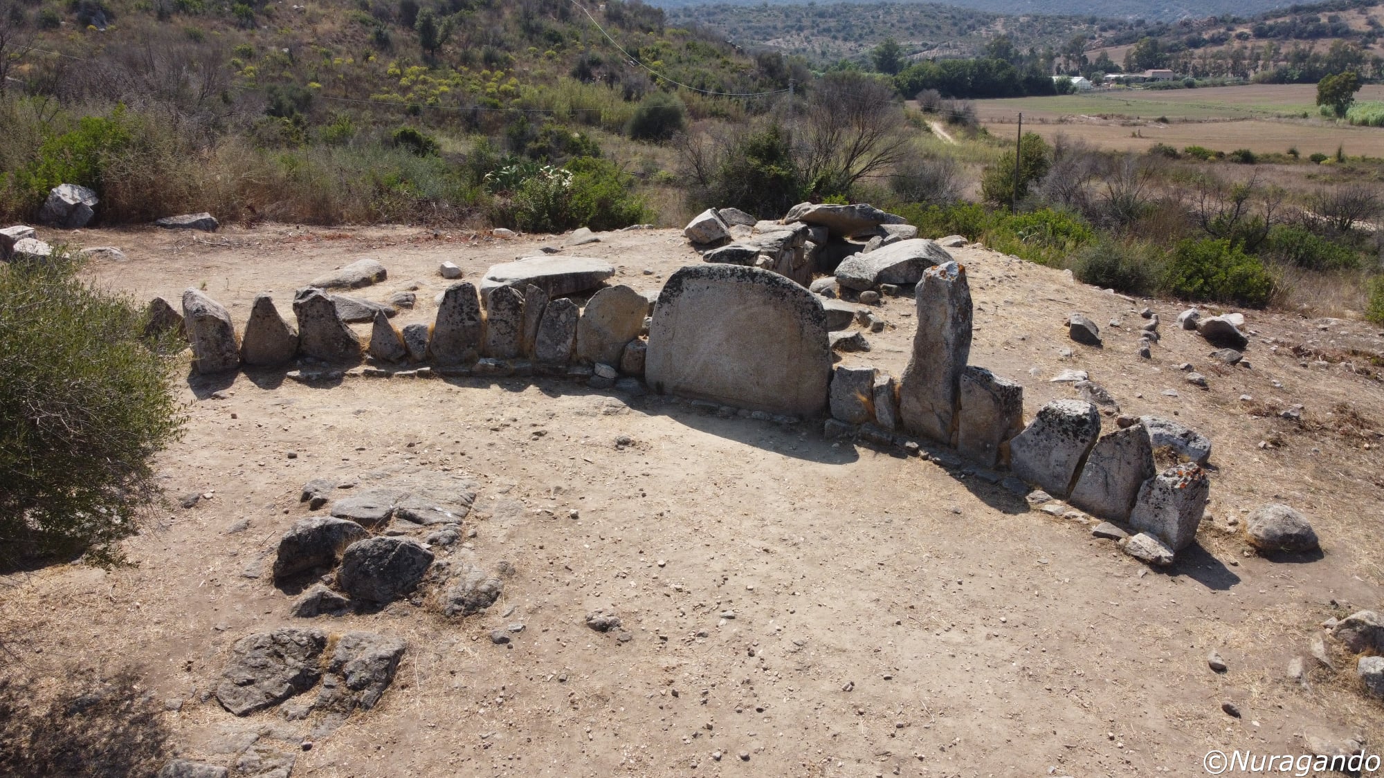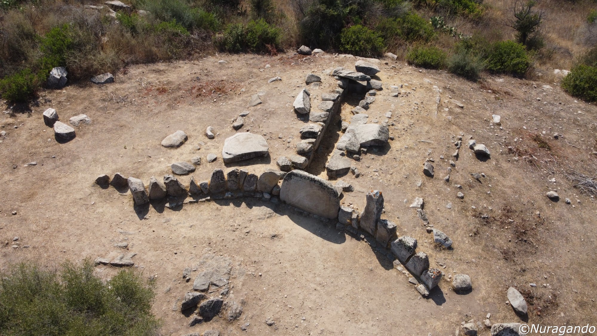 La sepoltura – del tipo a filari con stele centinata – conserva, in parte, il corpo tombale absidato orientato a E e costruito con blocchi di granito e di porfido poliedrici di medie dimensioni. Il breve corridoio interno, rettangolare, presenta le pareti formate da ortostati di base sui quali poggiano tre filari di blocchi sbozzati; il piano pavimentale è costituito dalla roccia affiorante. La sepoltura si data intorno al 1500 a.C.