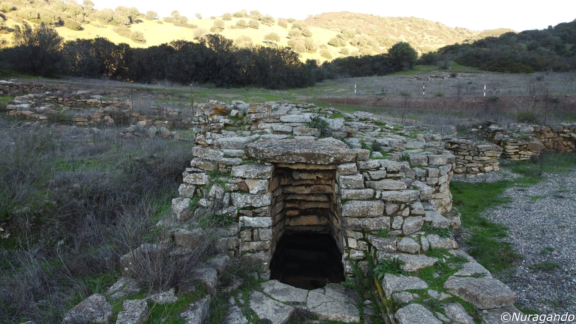 Il tempio è costituito da un piccolo vestibolo, da una scala discendente stretta e coperta a solaio gradonato, e da una camera circolare coperta a tholos. Le strutture emergenti sono attualmente limitate al muro perimetrale a forma di serratura di chiave che racchiude l’atrio ed il tamburo del pozzo. Il vestibolo, parzialmente lastricato, ha pianta rettangolare: non è presente il bancone-sedile. La scala di accesso alla camera del pozzo, dalle pareti verticali, è costituita da 12 gradini.