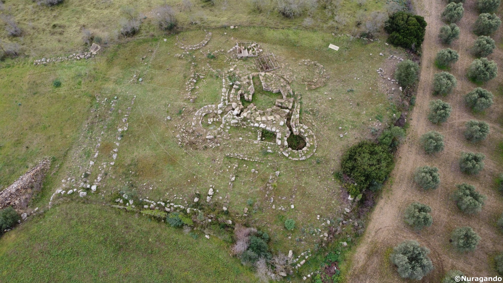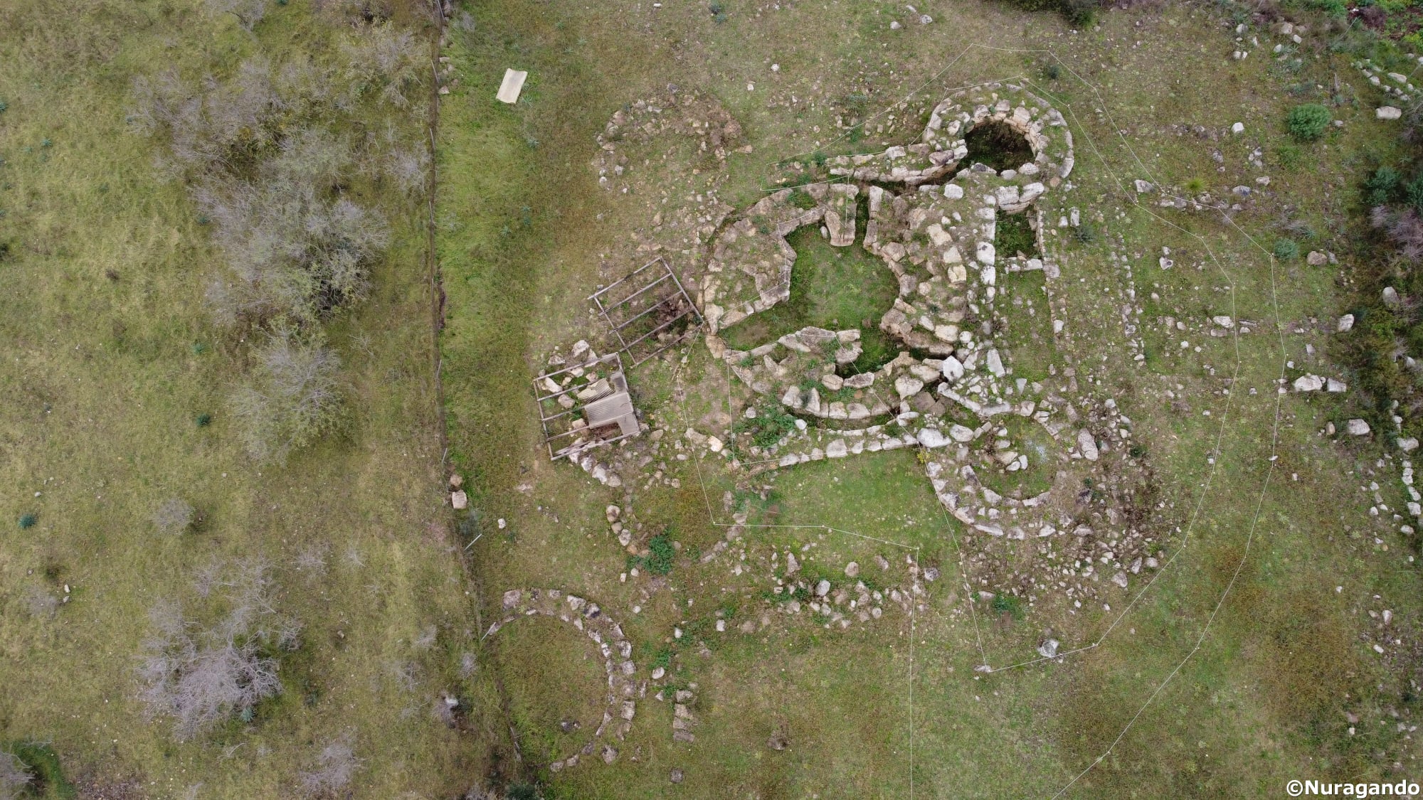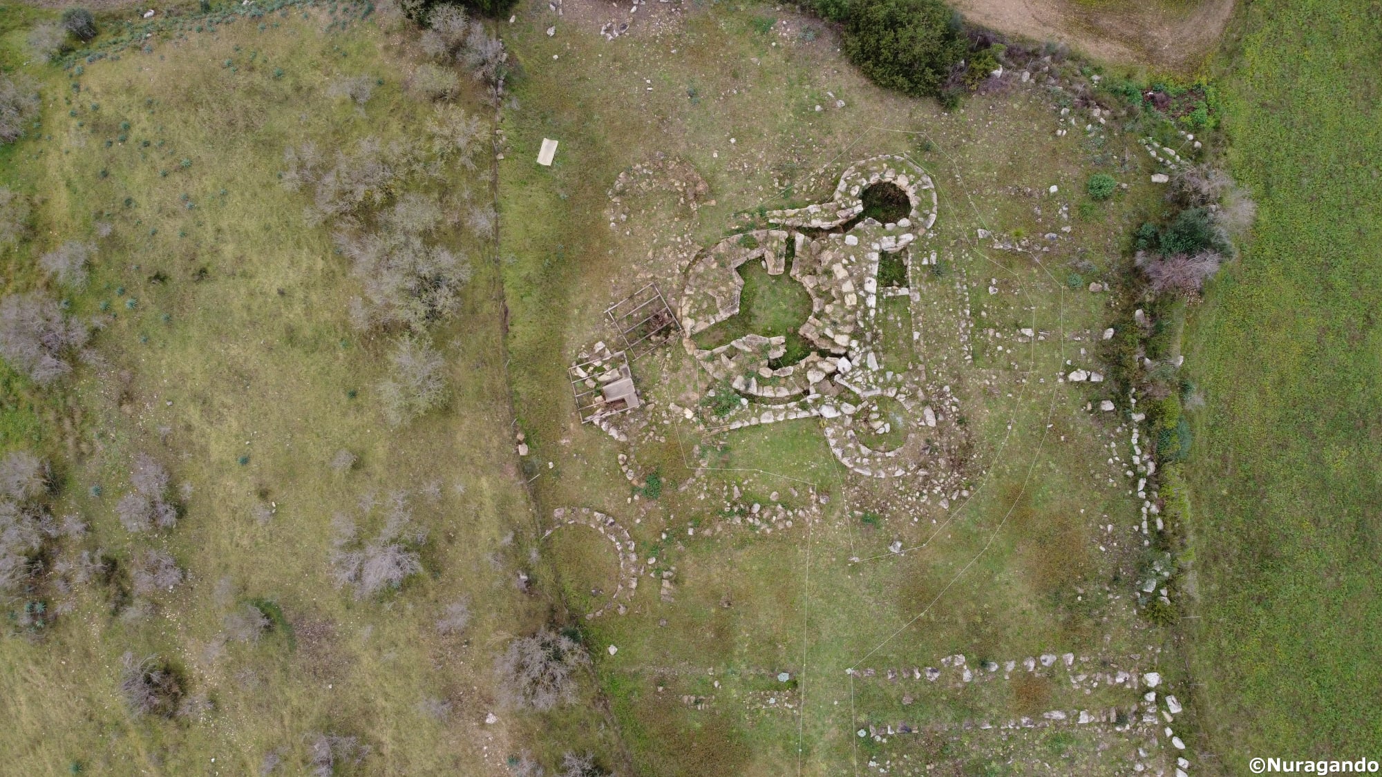 Eretto in blocchi calcarei e marnosi, il nuraghe presenta un impianto planimetrico quadrilobato, con torre centrale e quattro torri esterne orientate secondo i punti cardinali, circondato da cinta antemuraria, e i resti di altre quattro torri. all”interno del complesso è presente un pozzo sacro.