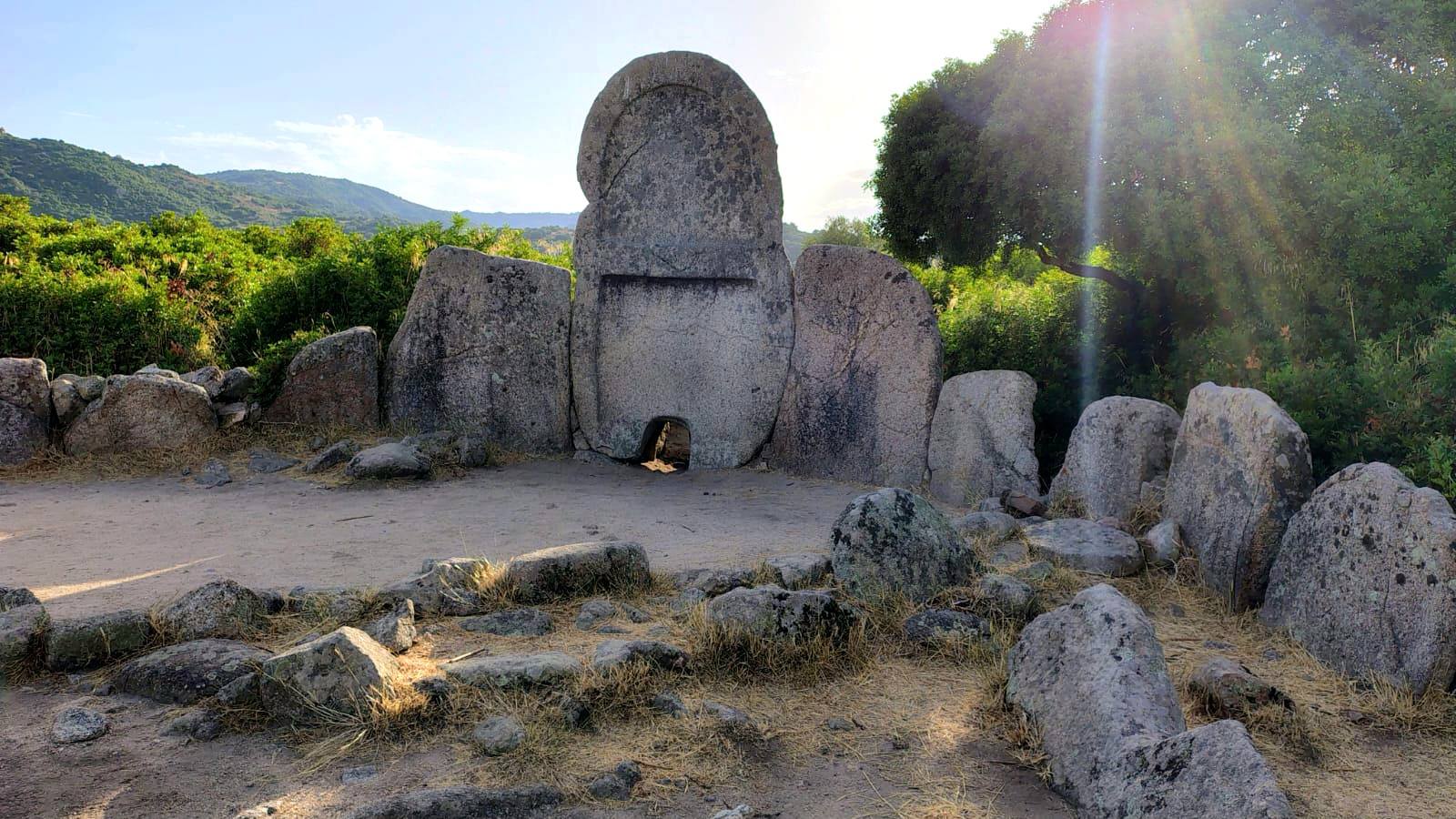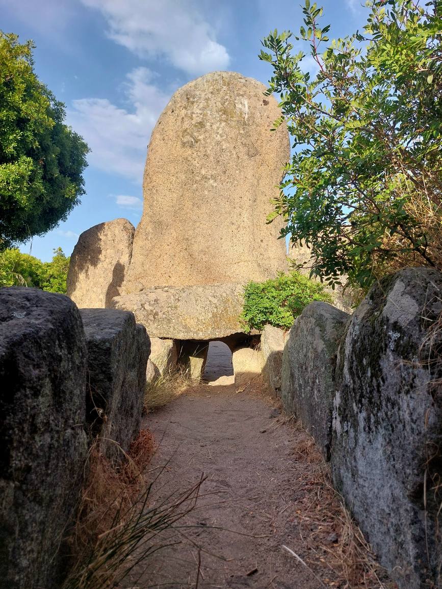Questa tomba di tipo dolmenico, del periodo del Bronzo Antico, si presenta in ottimo stato di conservazione, infatti conserva quasi intatto il corridoio funebre con copertura a piattabanda, cioè costituita da lastre di pietra disposte orizzontalmente lungo le pareti del corridoio. La grande stele è costituita da un monolite centinato, in cui è scavato il piccolo portello d’accesso alla camera funeraria. L’esedra conserva ancora alcune pietre infisse come erano in origine. (www.ilportalesardo.it)