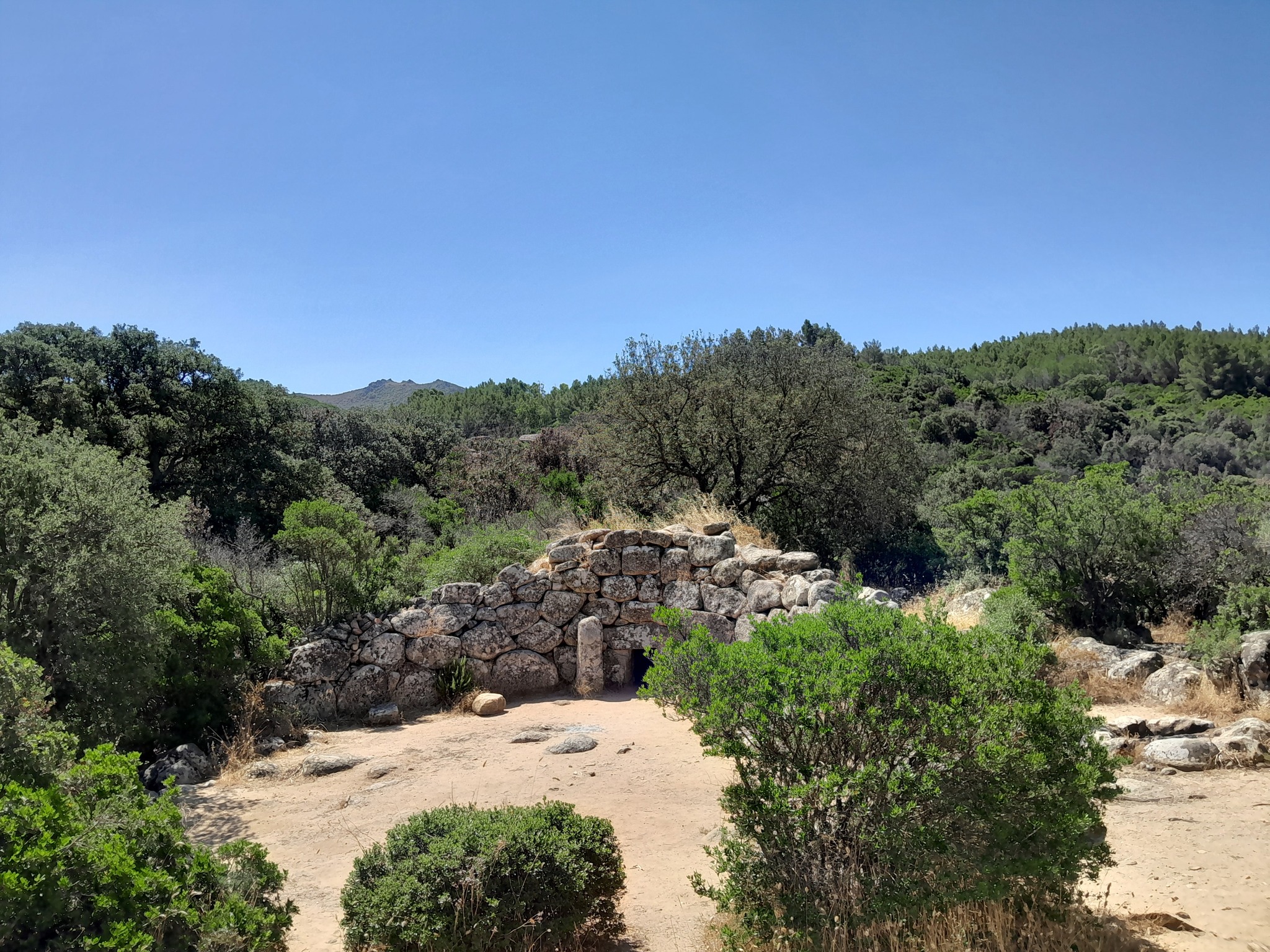 Conosciuta anche come “Sa Domu ‘e s’Orku”, é costituita da blocchi di granito locale ordinati secondo lo “stile ciclopico”. Presenta la particolarità unica di essere orientata esattamente verso il Nord. Questa Tomba dei giganti è del tipo con “facciata a filari”, tipica delle tombe dei giganti del Sud della Sardegna la facciata e l’esedra, ampia 10 m., sono costruite in muratura megalitica; nell’area sulla destra dell’esedra sono presenti tre “focolari rituali”, di forma circolare.