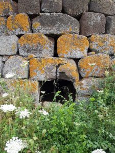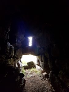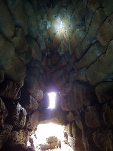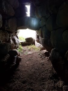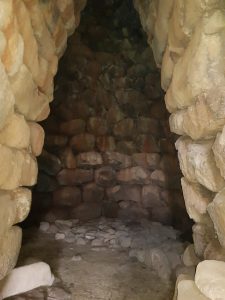 Il nuraghe, immerso nella macchia mediterranea, è un bell’edificio preistorico monotorre edificato con nere pietre basaltiche, di dimensioni abbastanza regolari. La cella interna, alla quale si accede tramite un corridoio ben conservato, è munita di due nicchie laterali e di un terrazzo, posto all’altezza di circa otto metri, accessibile grazie ad una rampa di scale.