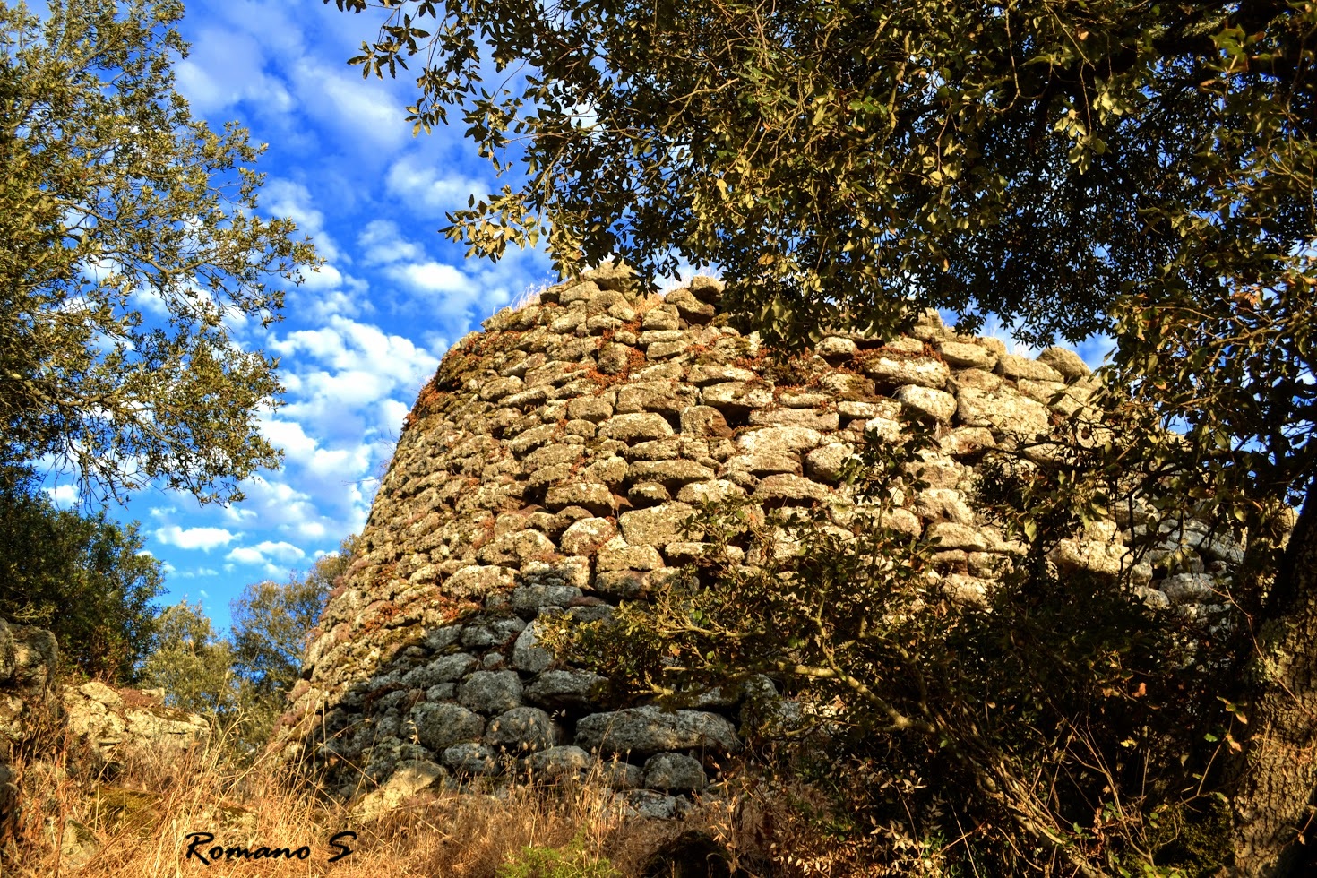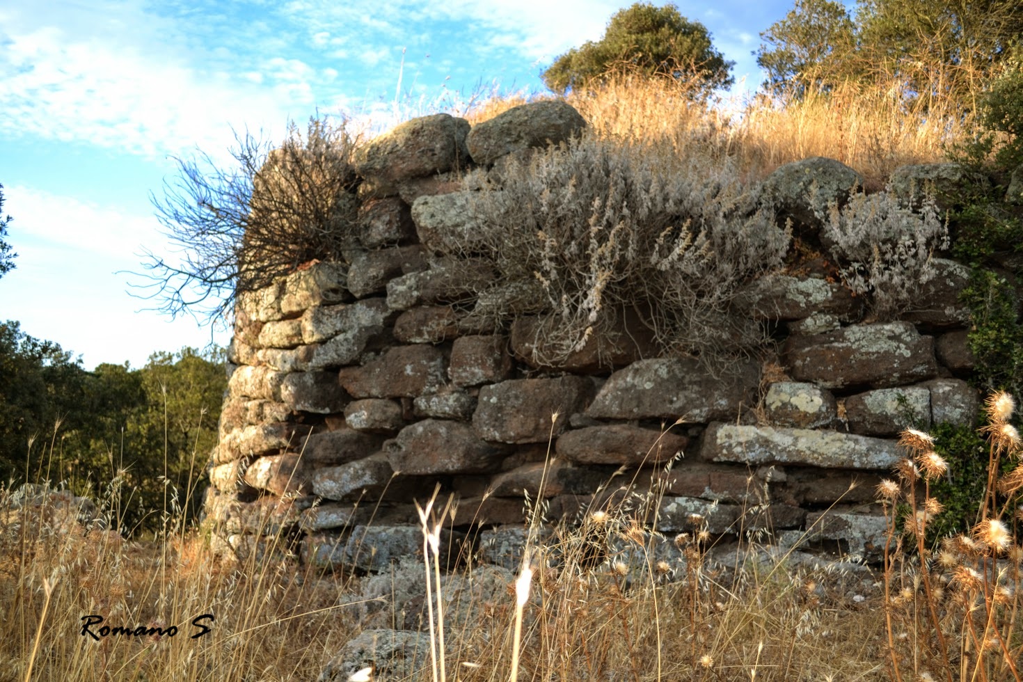 E’ quasi certamente un monotorre che nasce su un dirupo quasi ad evidenziare il carattere di inatacabilità da parte di un probabilistico attacco nemico. Si evidenziano circa venti filari di pietre ordinate nei circoli. La tholos non raggiungibile è probabilmente intatta.mu