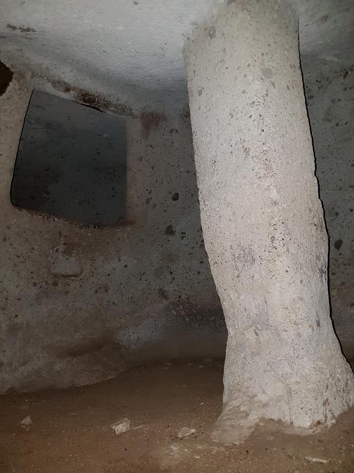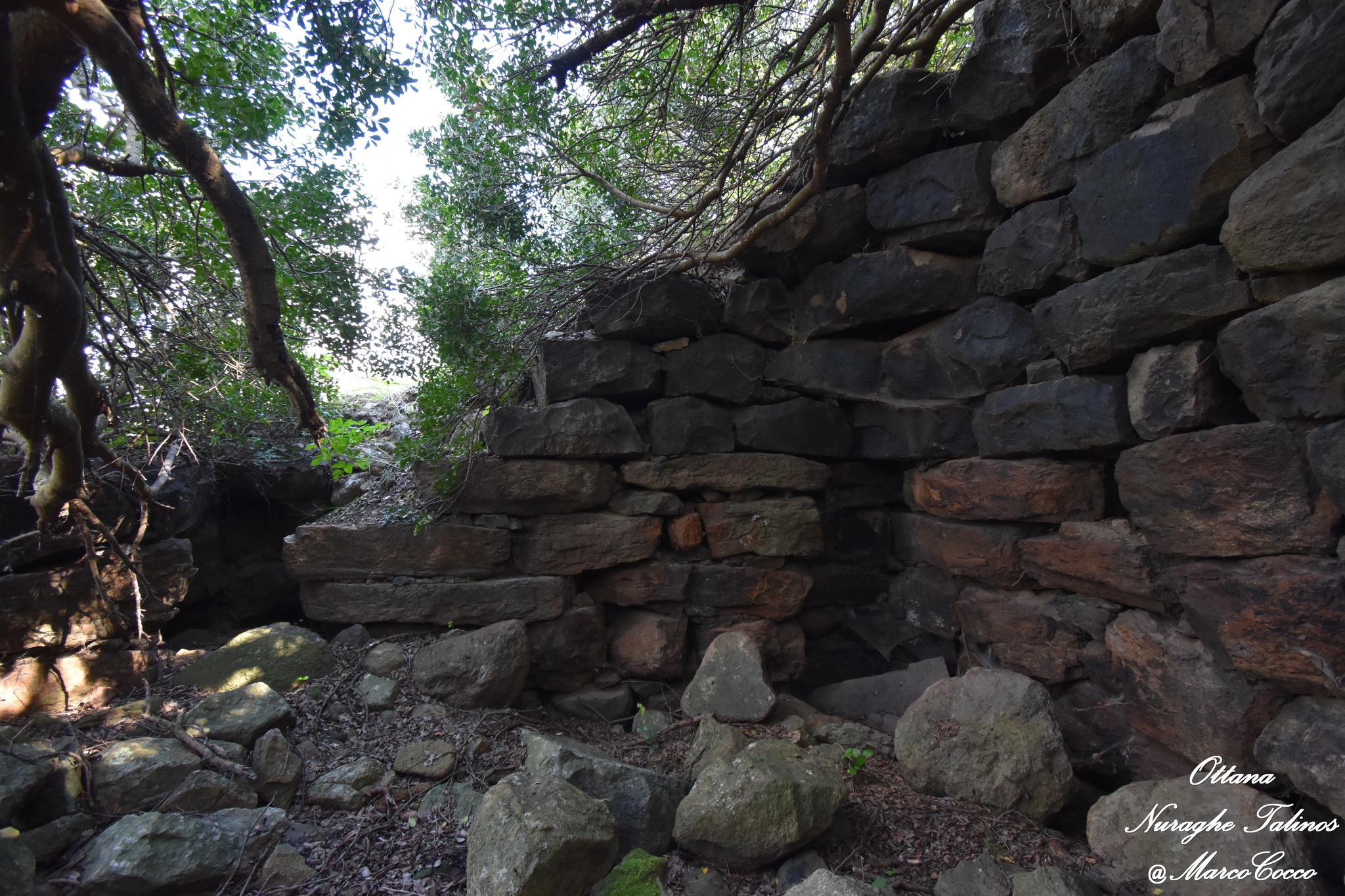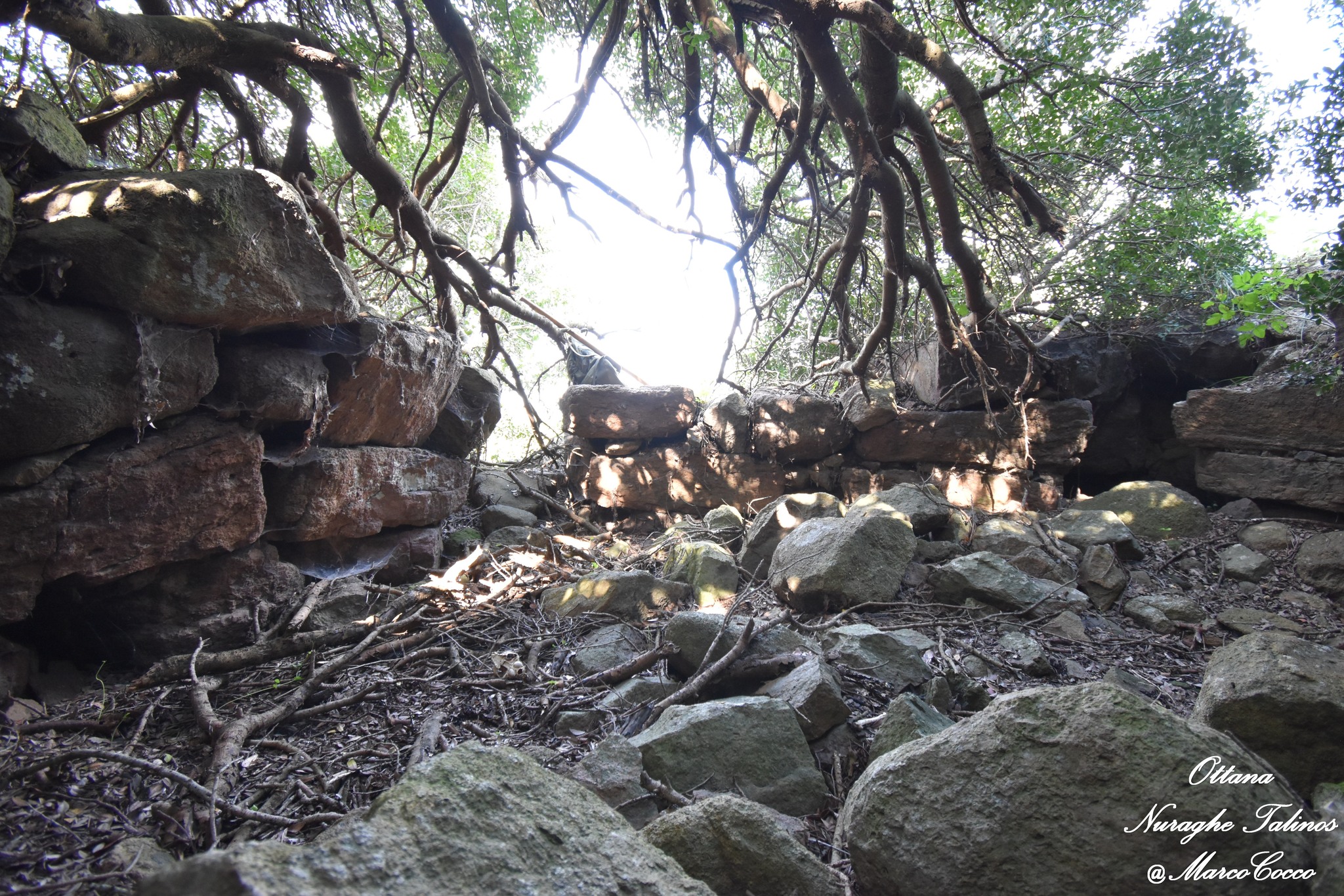 All’interno sono presenti un corridoio piattabandato, una nicchia semicircolare, la scala di accesso al piano superiore e la camera centrale; quest’ultima, originariamente voltata a tholos ma oggi priva di copertura, ha la classica pianta circolare con 3 nicchie disposte a croce. Il muro esterno, alto fino a 4 m, è composto da massi medio-grandi in trachite.