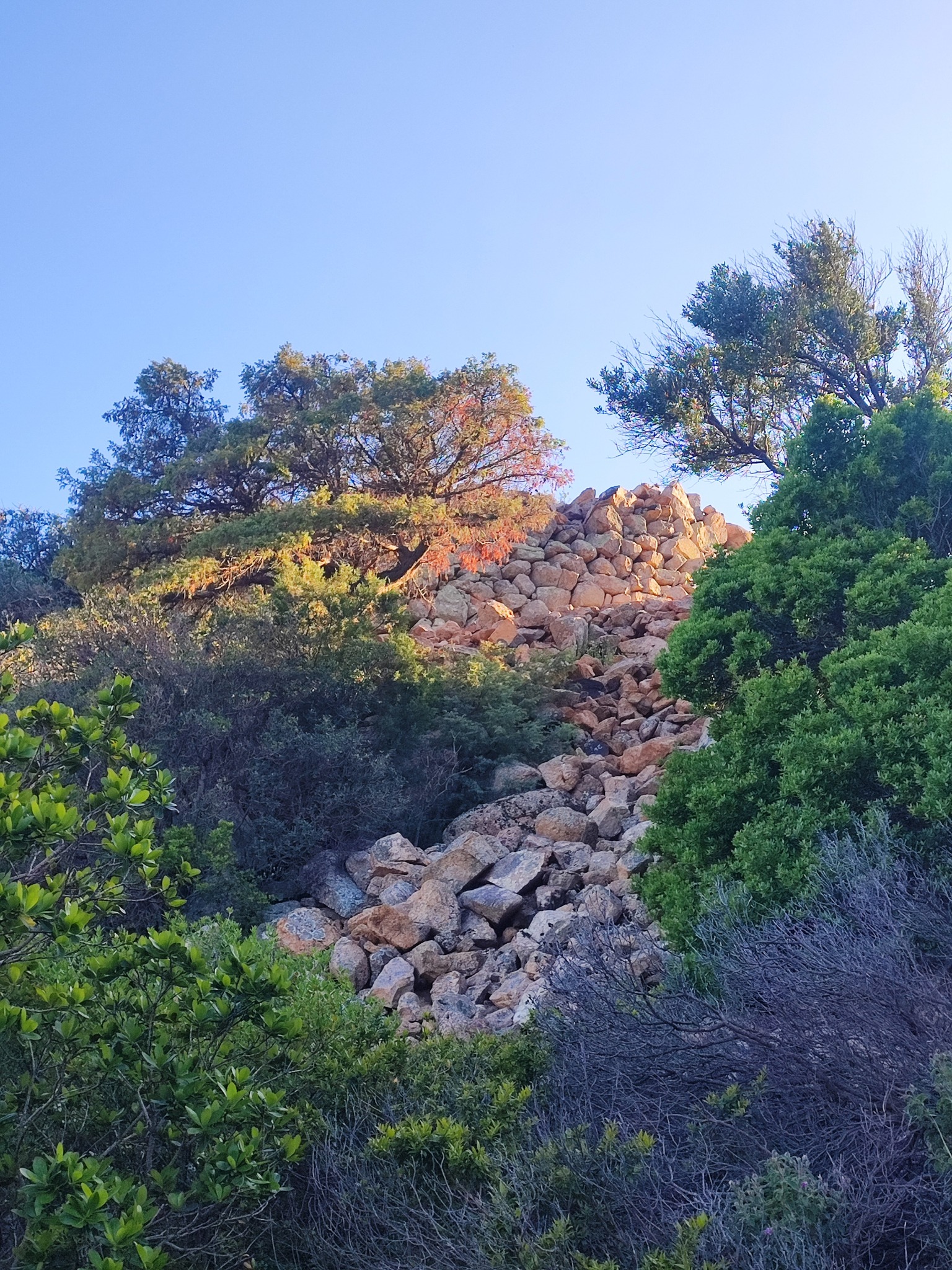 Il monumento, presenta una pianta abbastanza complessa e caratterizzata da successive apposizioni al corpo principale; quest’ultimo ha una pianta ellittica, del diametro massimo di 13,5 m, ed è dotato di due ingressi ubicati a nord e a sudovest dai quali si accede a due corridoi che si raccordano ad angolo al centro del mastio. Alla torre centrale si addossano due corpi: uno è situato sul lato nord, l’altro invece doveva cingere almeno i due terzi dell’insieme.