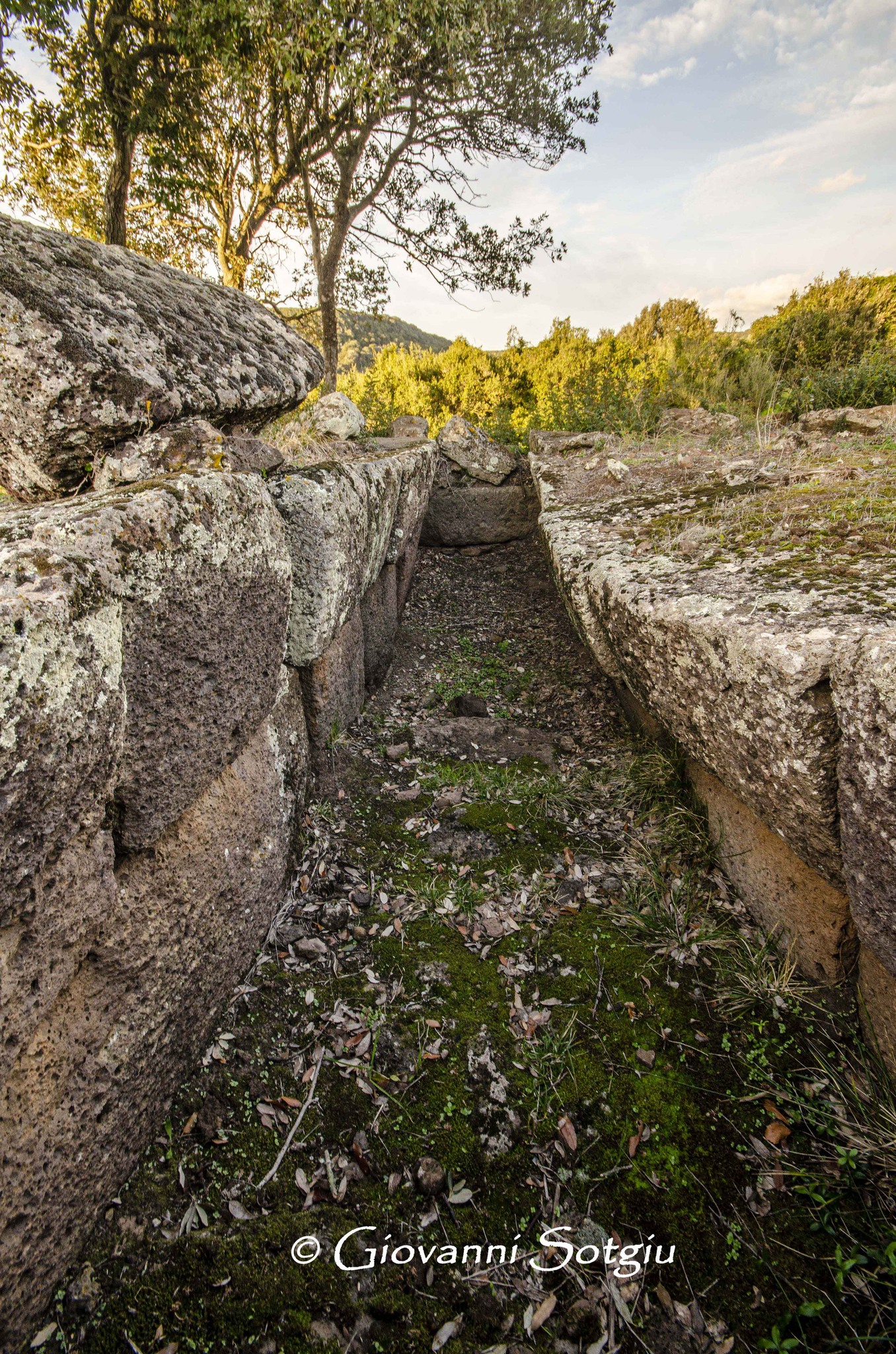 Si tratta di due distinte sepolture collettive ma che condividono la stessa esedra. Si trovano a poca distanza dall’omonimo nuraghe posto in cima al pianoro.