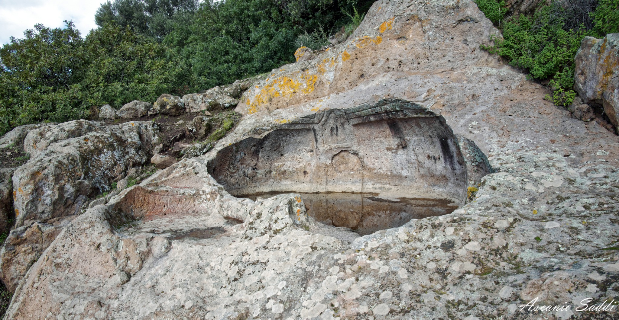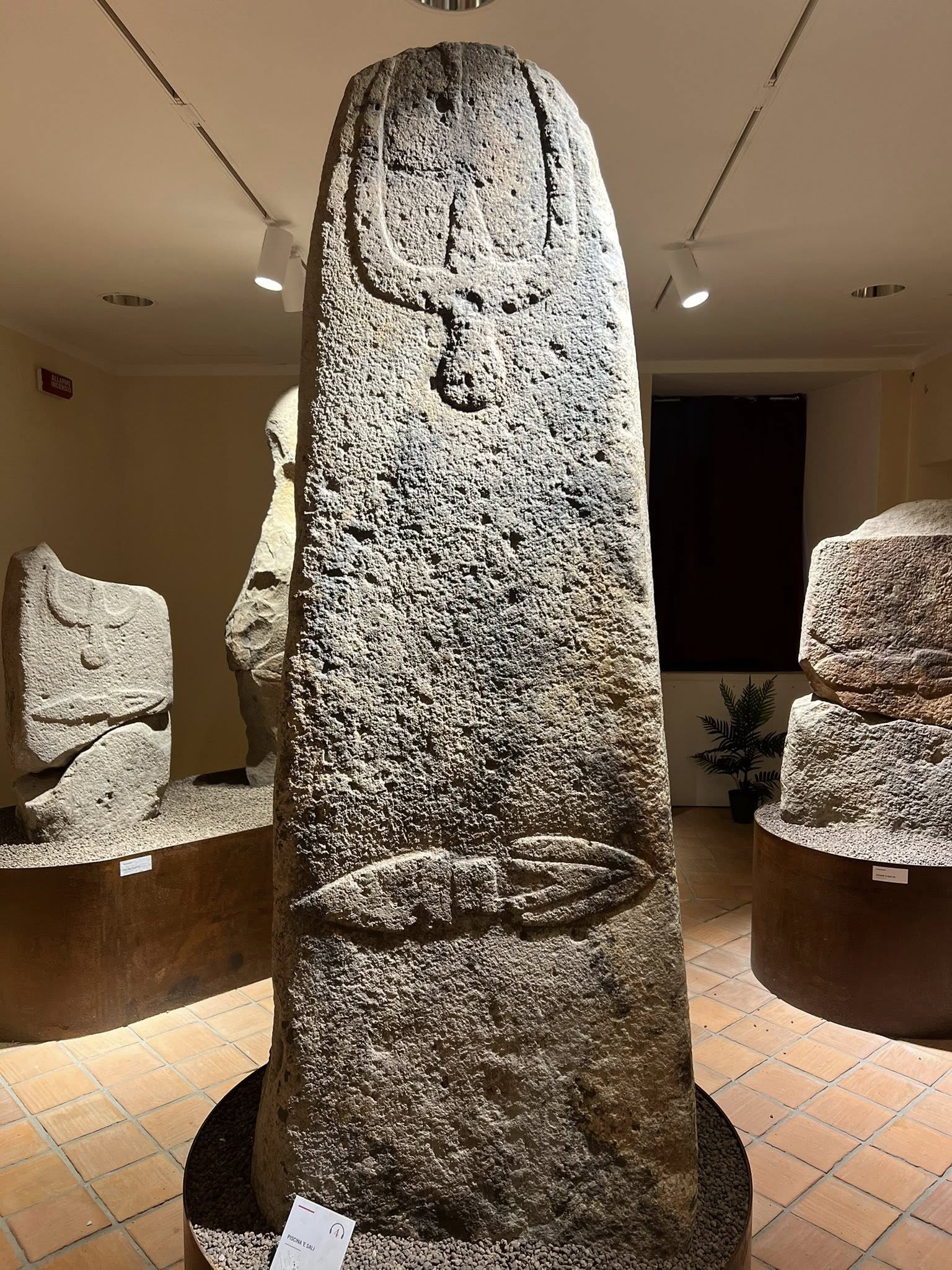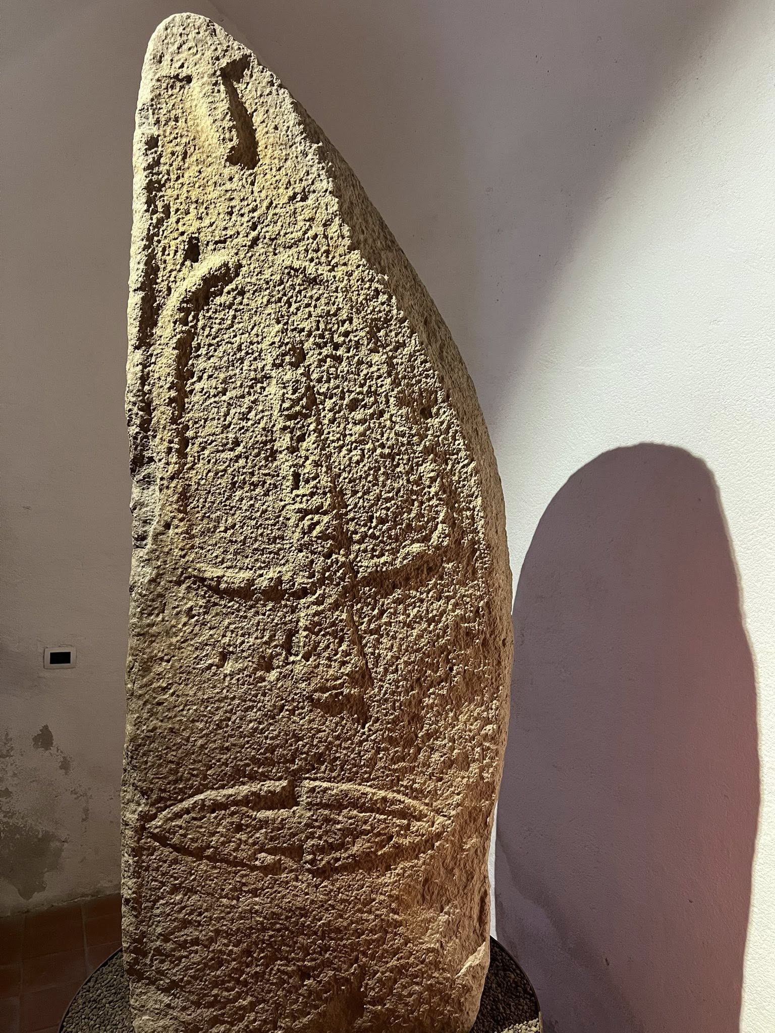 La scoperta delle statue menhir custodite nel museo Aymerich a Laconi, prende avvio dal primo rinvenimento a Genna Arrèle, cui seguirono ritrovamenti numerosi ed eccezzionali in questo e altri siti. Queste “statue stele” presentano sul prospetto diversi motivi scolpiti, i più conosciuti dei quali sono interpretati come il “capovolto” (l’anima del defunto che ritorna alla madre terra) e il pugnale a doppia lama o “bipenne”