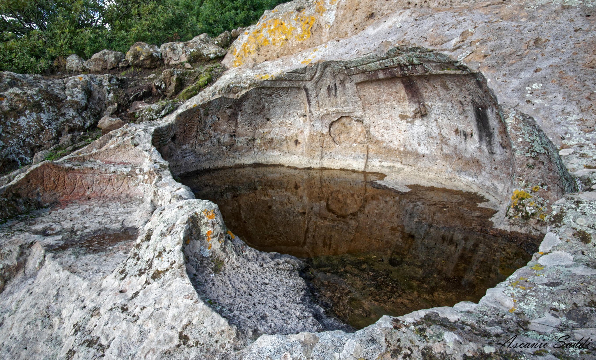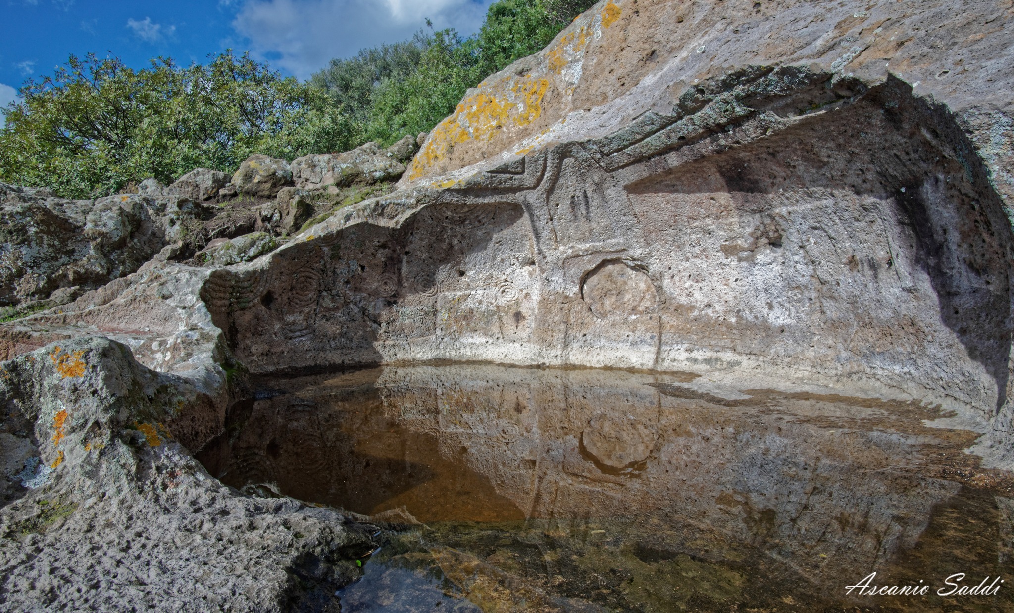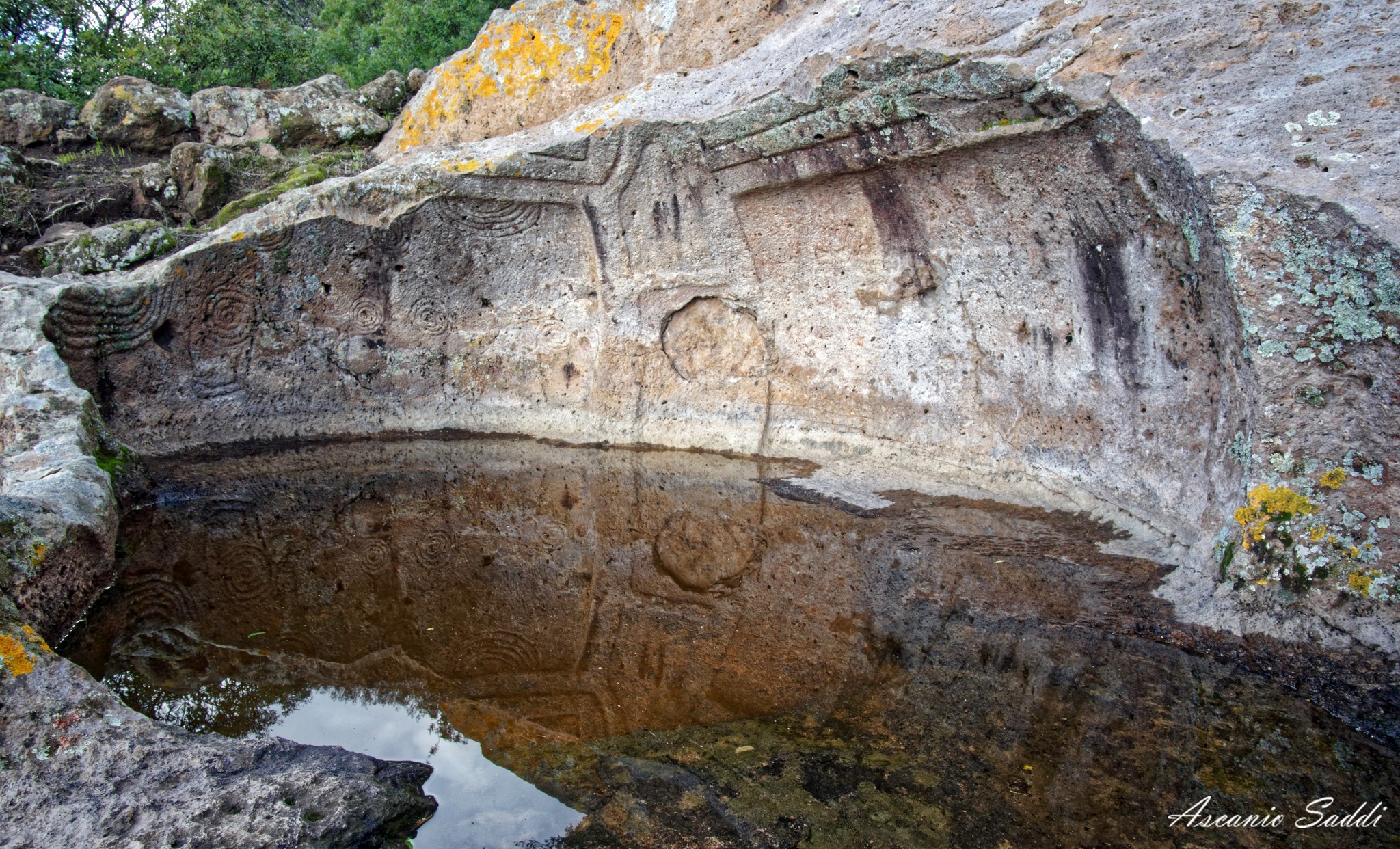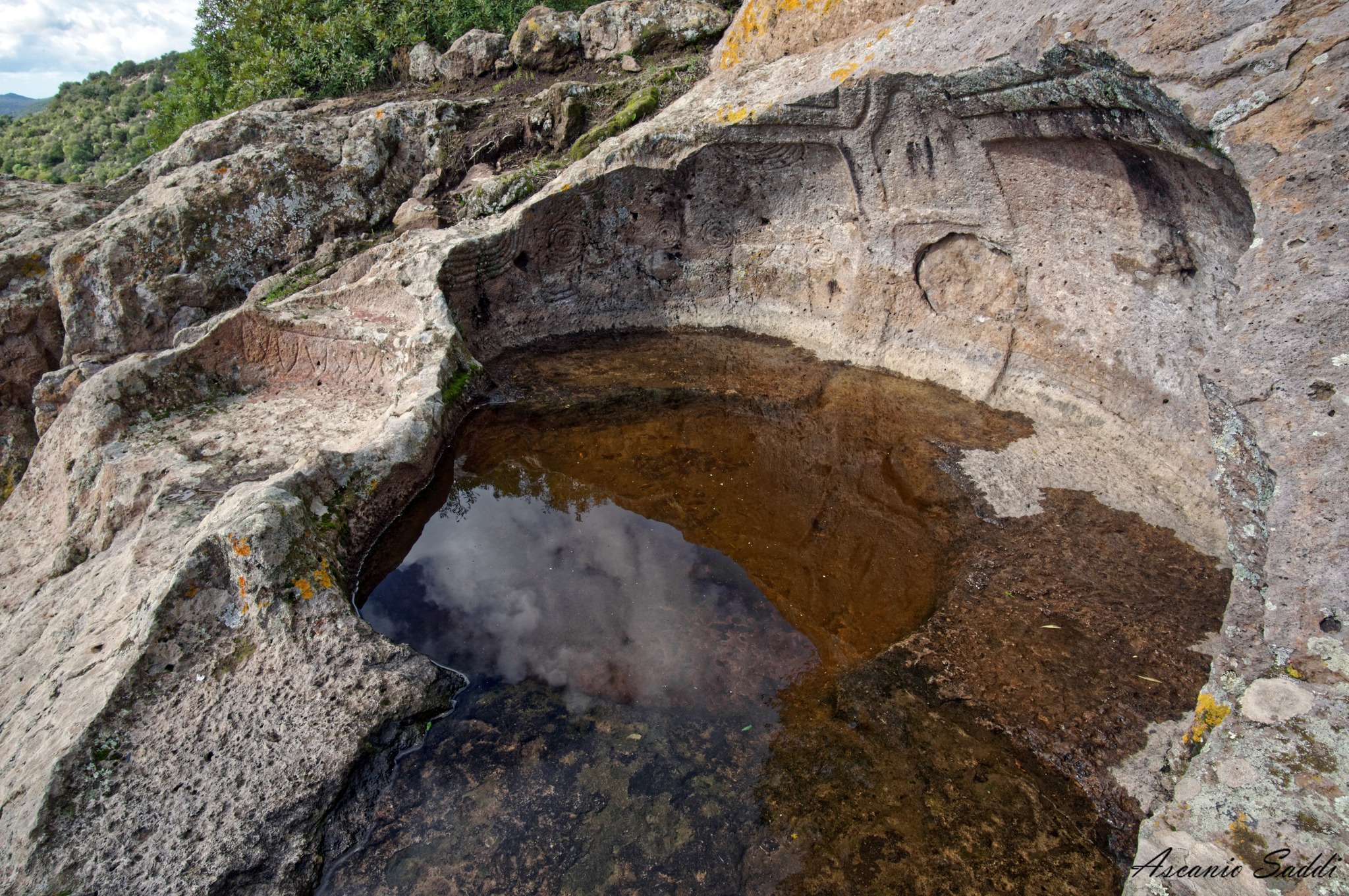 La scoperta delle statue menhir custodite nel museo Aymerich a Laconi, prende avvio dal primo rinvenimento a Genna Arrèle, cui seguirono ritrovamenti numerosi ed eccezzionali in questo e altri siti. Queste “statue stele” presentano sul prospetto diversi motivi scolpiti, i più conosciuti dei quali sono interpretati come il “capovolto” (l’anima del defunto che ritorna alla madre terra) e il pugnale a doppia lama o “bipenne”