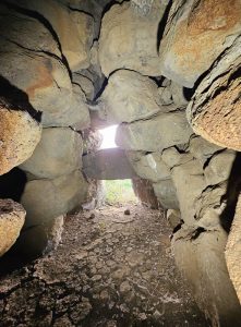 Scavata in un affioramento roccioso, la struttura consta di un unico ambiente con l’ingresso posto sulla parte sinistra dello stesso ammasso roccioso.