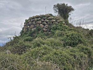 Il nuraghe è posto a circa 400 metri a NO del Nuraghe Biriola, mentre a 350 metri ad Est si trova un area cimiteriale di età romana, attestata da una decina di urne cinerarie di forme diverse scavate nella roccia affiorante. È un monotorre con nicchia, scala d’andito e camera centrale marginata da due nicchie. La torre, a pianta circolare, è svettata da una altezza massima di m 5,80 con 11 filari, mentre un vasto crollo ha interessato il muro perimetrale che guarda a NNO. (Alberto Moravetti)