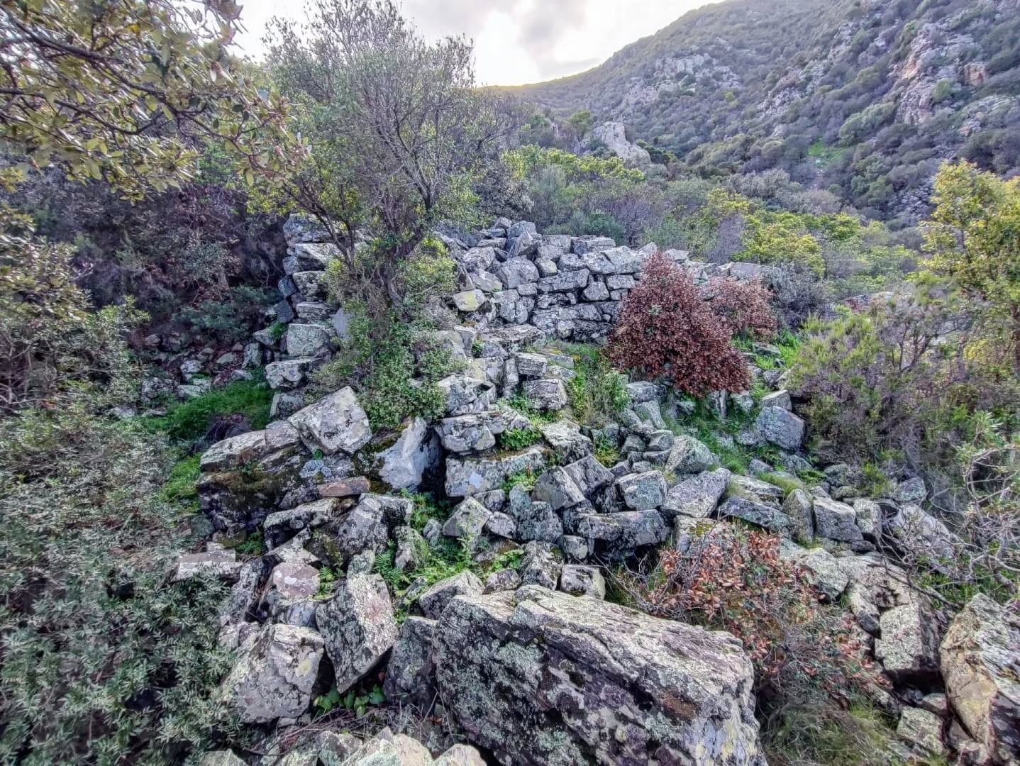 Sepoltura nuragica di tipo a filari costruita in scisto.