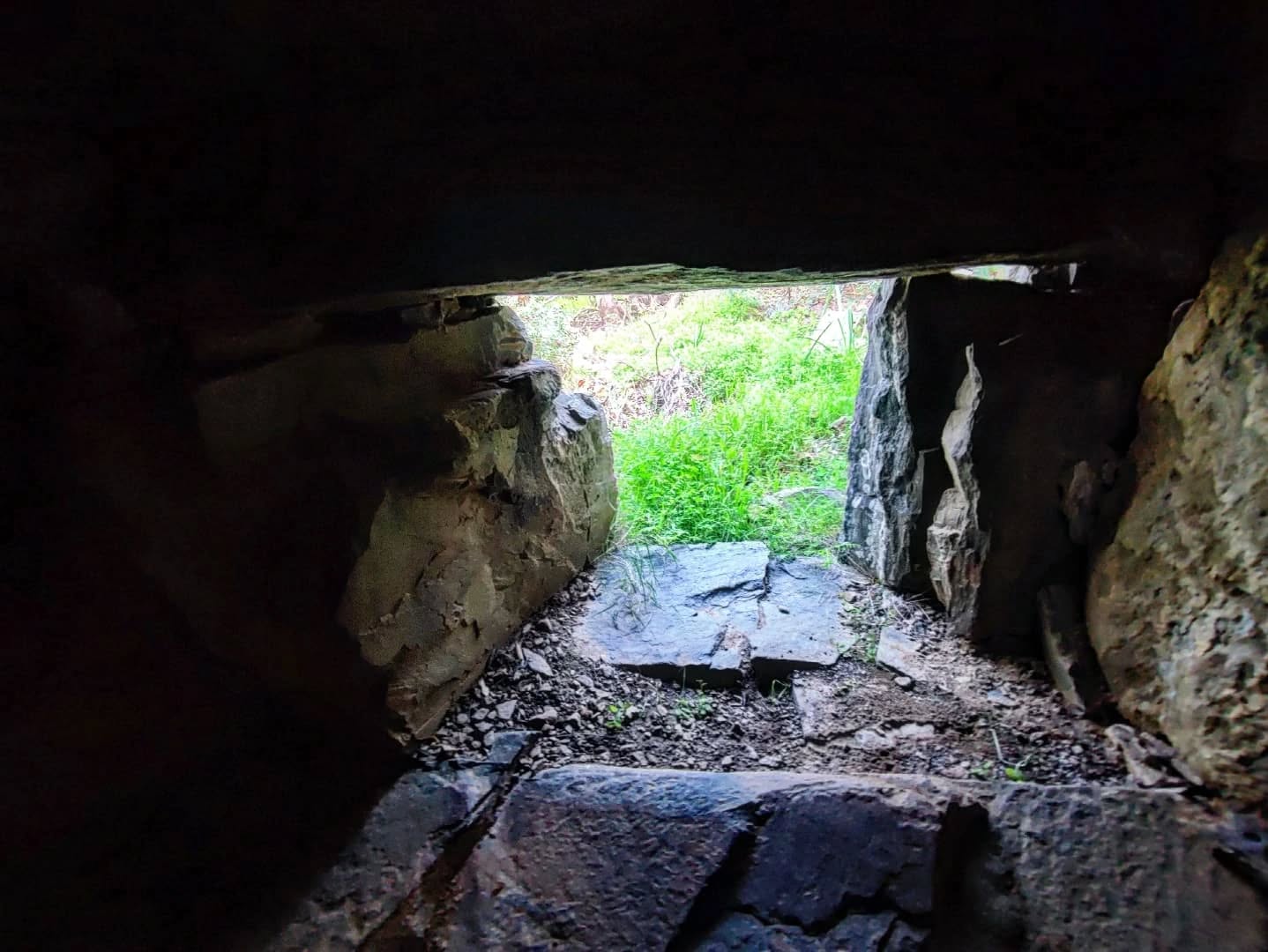 Visibile ancora gran parte dell’esedra, il corridoio è praticamente completo ( tranne la pietra di copertura finale asportata immagino dai tombaroli ) e tutta la struttura esterna è ancora in sito.