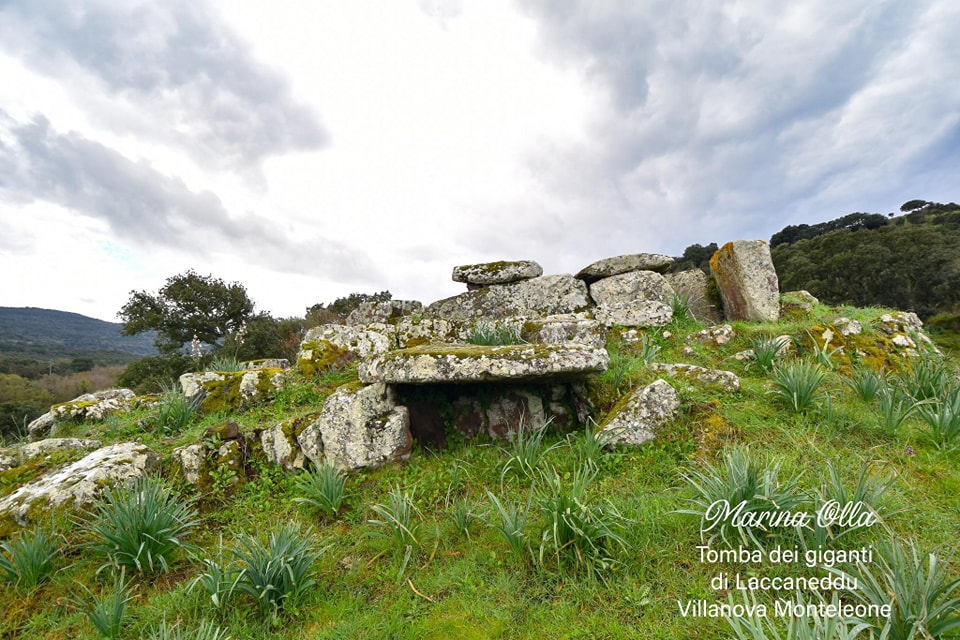 Interessante monumento ubicato in territorio di Villanova Monteleone,orientato a sud-ovest rimane ancora visibile parte dell’esedra,non rimane purtroppo traccia della stele. Il corridoio ben conservato,realizzato con blocchi di pietra trachitica ben squadrati ha una lunghezza di 7,10 m e una larghezza di 2,80 m,della copertura restano ancora due lastroni disposti a piattabanda. Alla sinistra del monumento si osserva una sistemazione di pietre coperta da una lastra forse un dolmen.