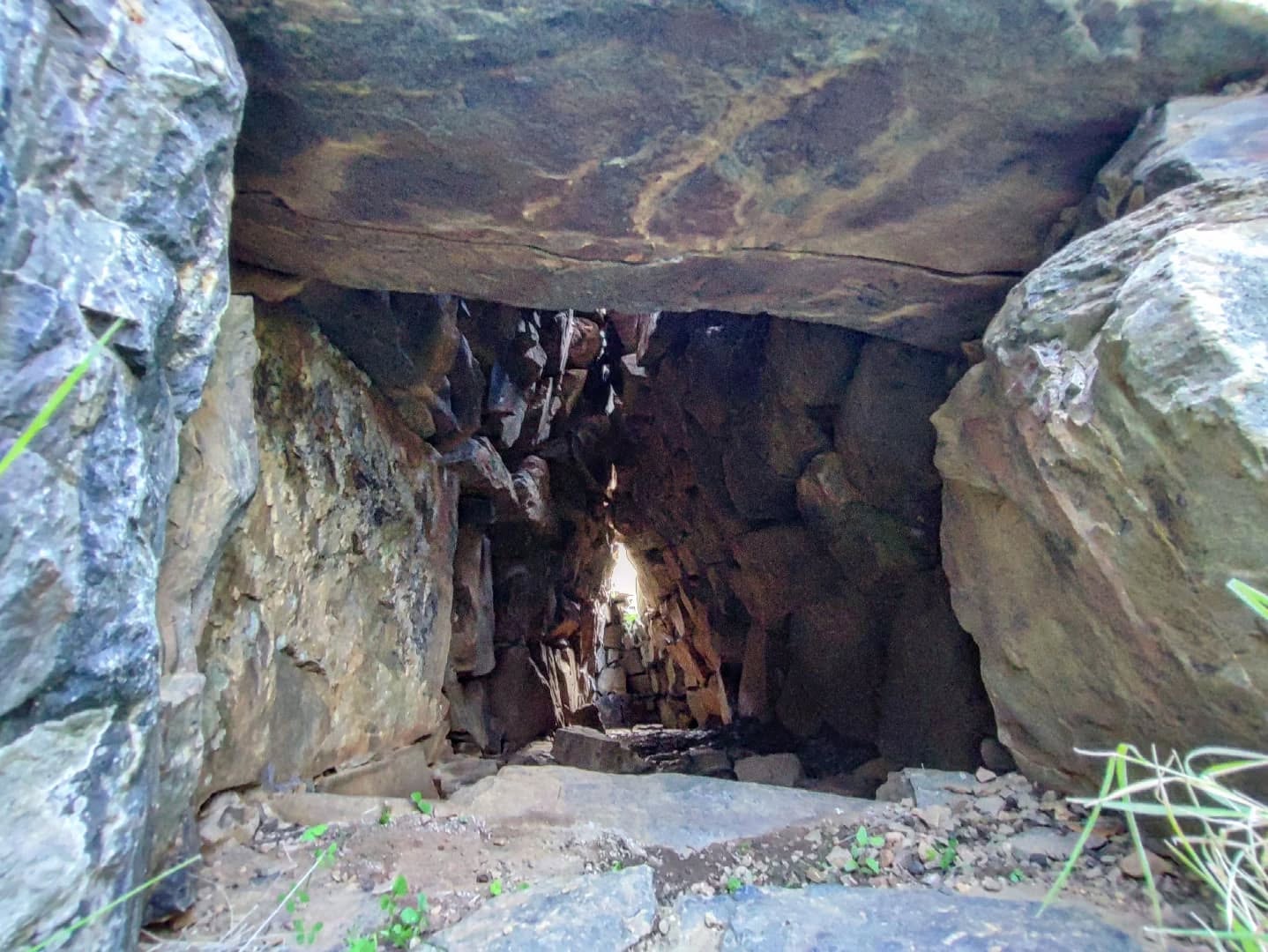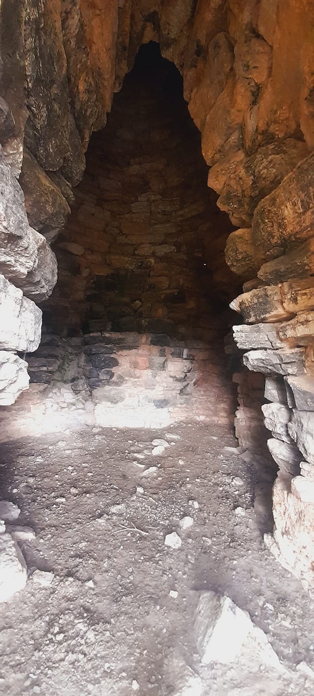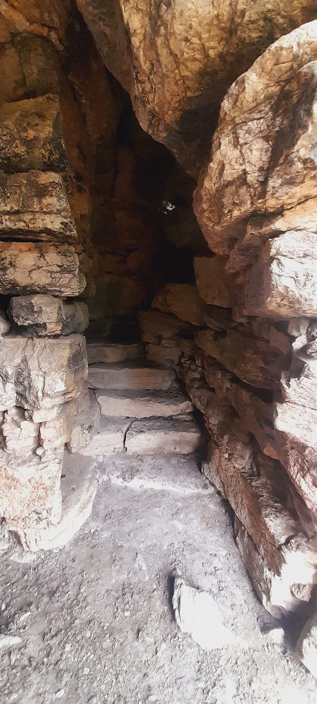 Visibile ancora gran parte dell’esedra, il corridoio è praticamente completo ( tranne la pietra di copertura finale asportata immagino dai tombaroli ) e tutta la struttura esterna è ancora in sito.