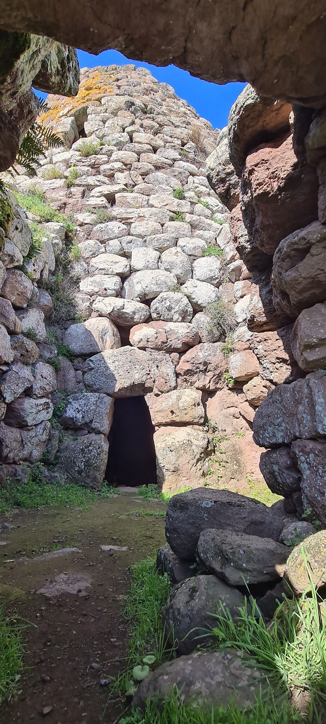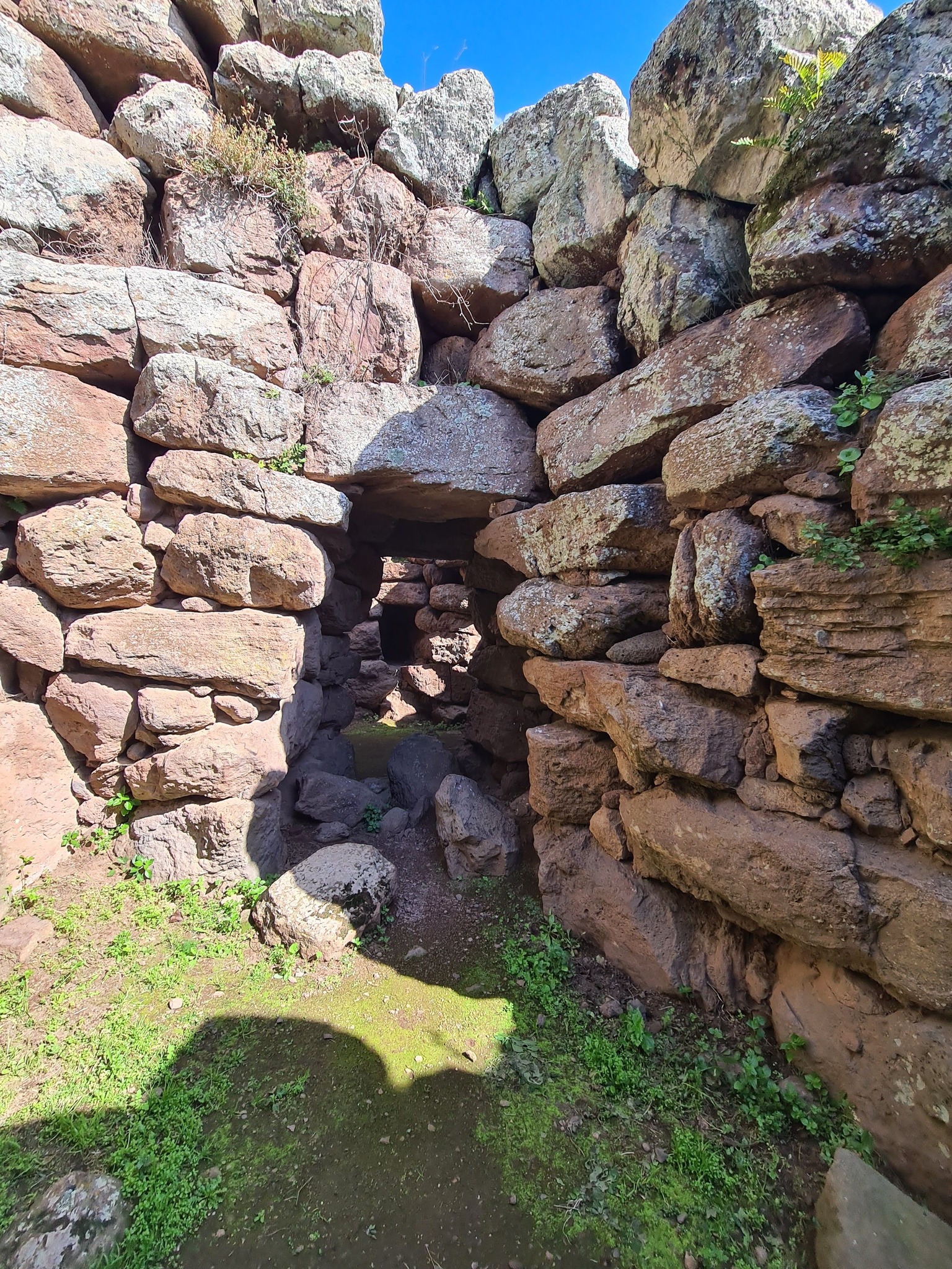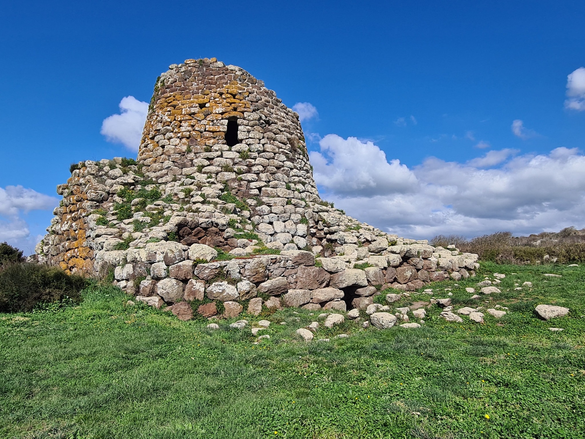 Nuraghe monotorre, conserva la tholos intatta. L’architrave sovrastante l’entrata misura circa m. 3,30×0,90×1,85, per un peso stimato di circa Kg. 16.000.