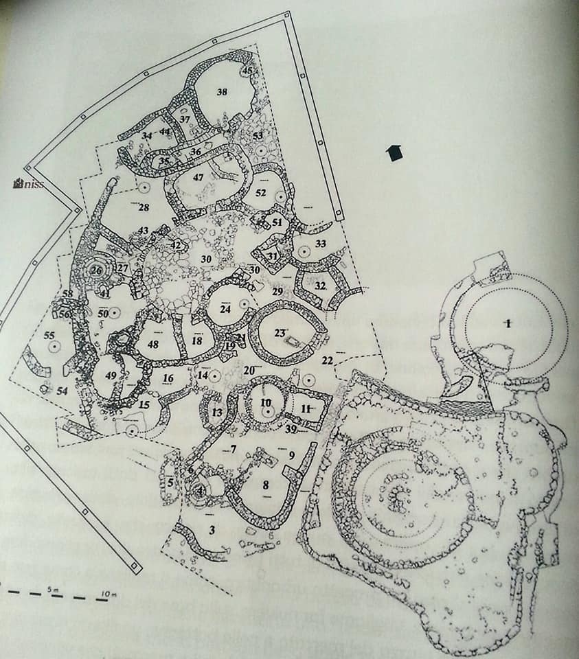 Il complesso è costituito da un nuraghe e da un villaggio di capanne. Il nuraghe è costituito da una torre centrale rifasciata da un bastione a profilo retto-convesso-curvilineo che include due torri minori ad ENE e SSE. Il villaggio, risalente agli inizi dell”età del Ferro, si sviluppa a N/O del nuraghe. Le abitazioni, di forma sub-circolare e sub-rettangolare, sono articolate in “isolati” con più vani che si raccordano generalmente su una corte centrale.