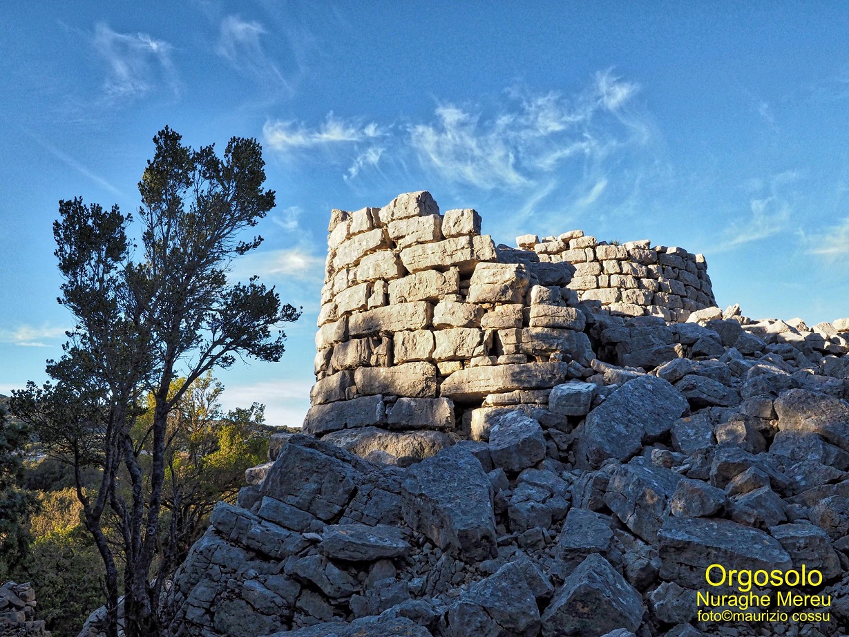 Il nuraghe Mereu o ”Intro de Padente” , interamente costruito in bianco calcare, con pietre ben squadrate di medie dimensioni, è situato su un’altura che domina il territorio circostante. Il nuraghe è di tipo complesso, costituito da una torre principale, e due torri secondarie ulteriormente protette da bastioni rettilinei.