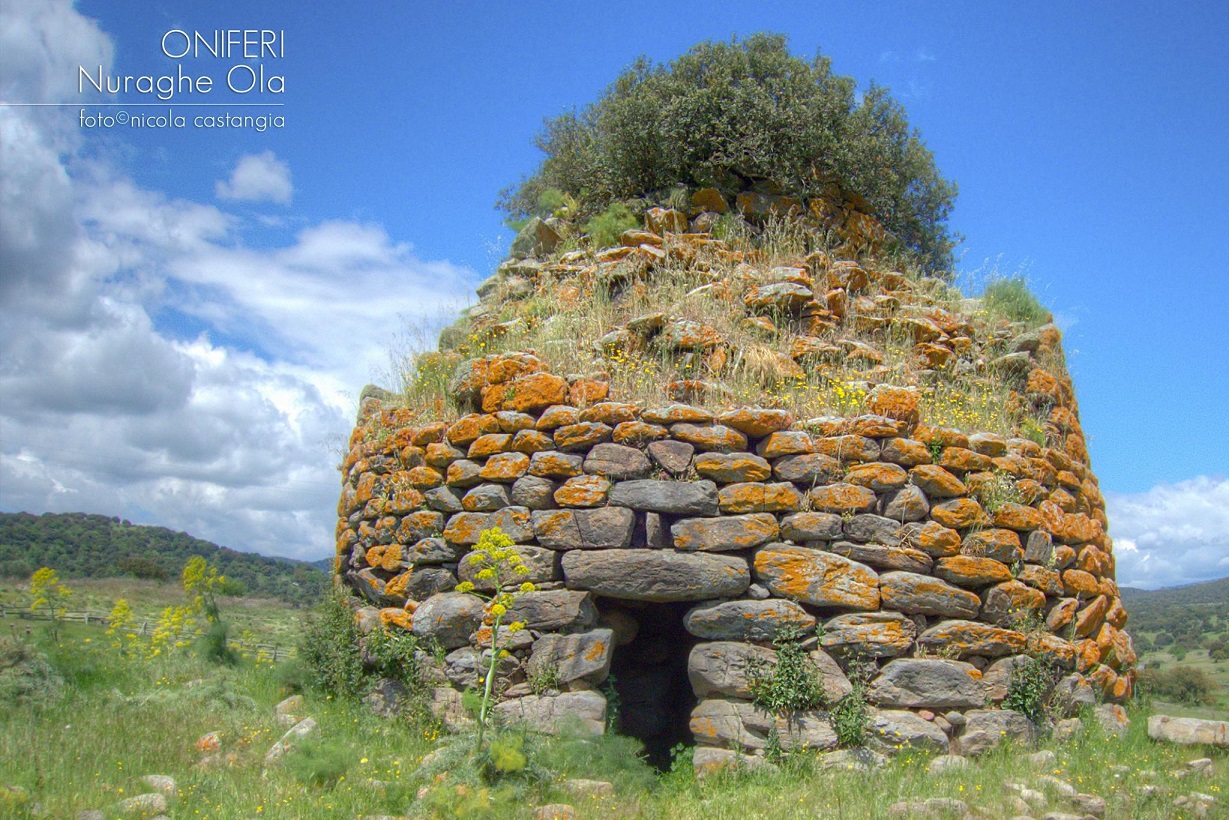 ll nuraghe Ola è un monotorre di circa 12 m di diametro esterno e 10 m di altezza, risalente al Bronzo recente. Ciò che colpisce particolarmente è l’utilizzo di differenti materiali da costruzione: all’esterno infatti la base si compone di 12 filari di blocchi di granito, mentre superiormente insistono 13 ordini in trachite.