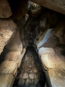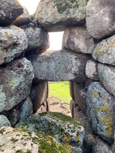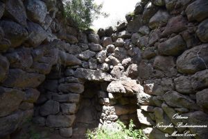 Nuraghe monotorre, conserva la tholos intatta. L’architrave sovrastante l’entrata misura circa m. 3,30×0,90×1,85, per un peso stimato di circa Kg. 16.000.