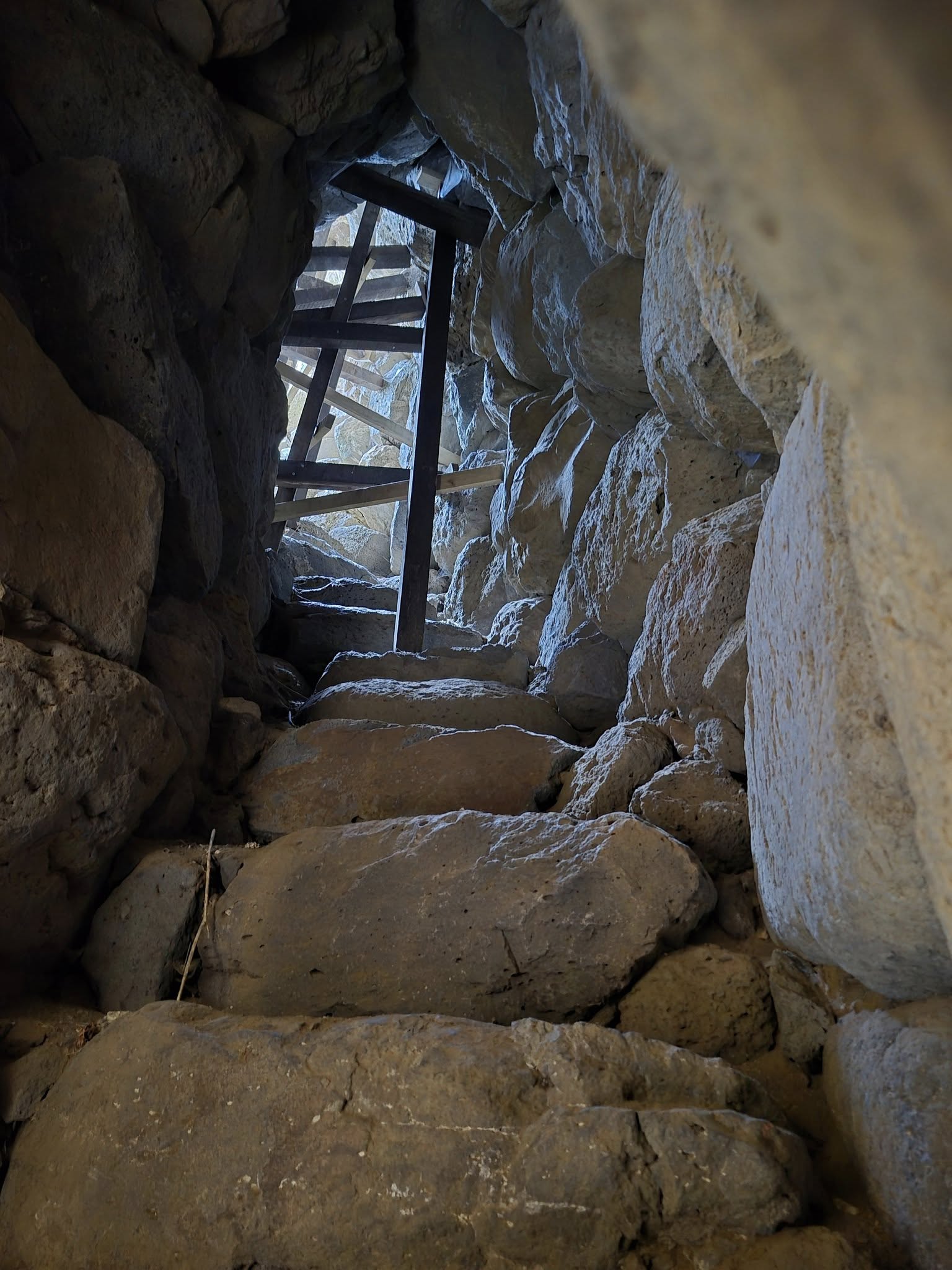 Nella camera centrale, oltre alle classiche nicchie laterali e alla scala per il piano superiore, è presente un focolare costituito da cunei di pietra e, accanto, un pozzo con la classica conformazione a pietre sovrapposte che rivestono le pareti.