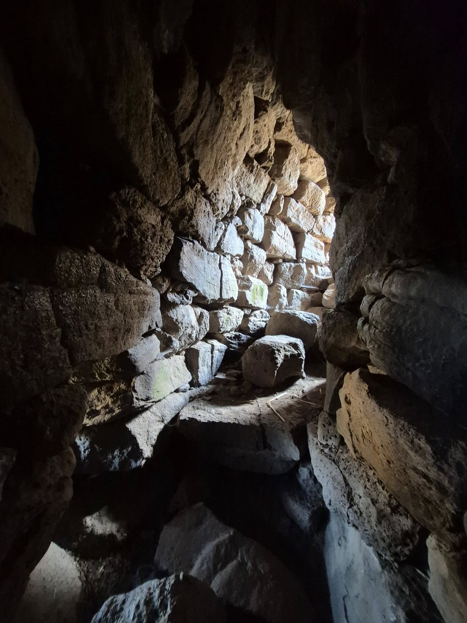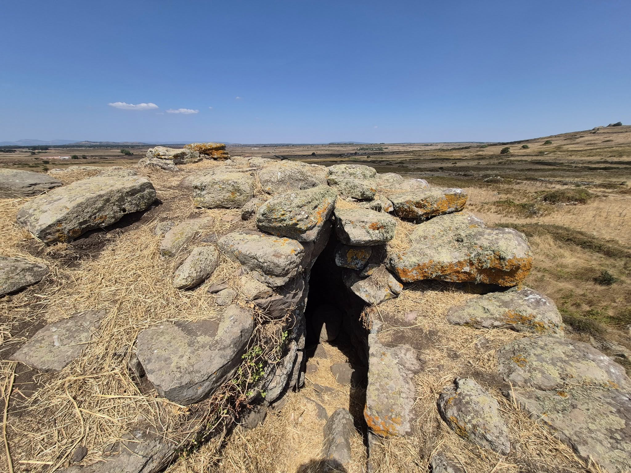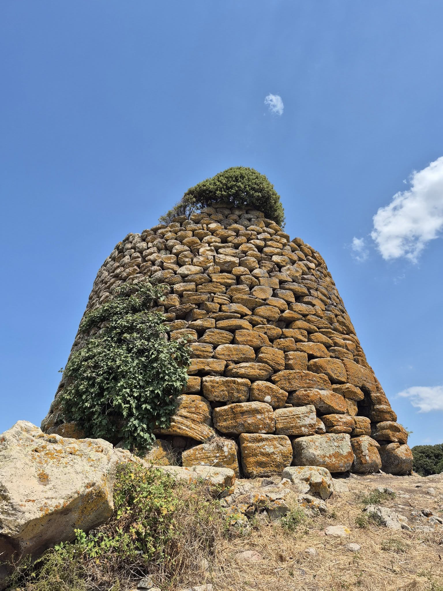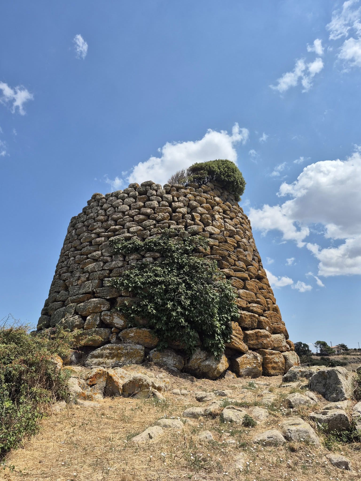 La torre (diametro m 14,20; altezza m 1/1,80) è costruita nei filari inferiori con grandi blocchi; a questi si sovrappongono massi di minori dimensioni, rifiniti con cura e messi in opera su corsi orizzontali regolari. … Sardegna Cultura