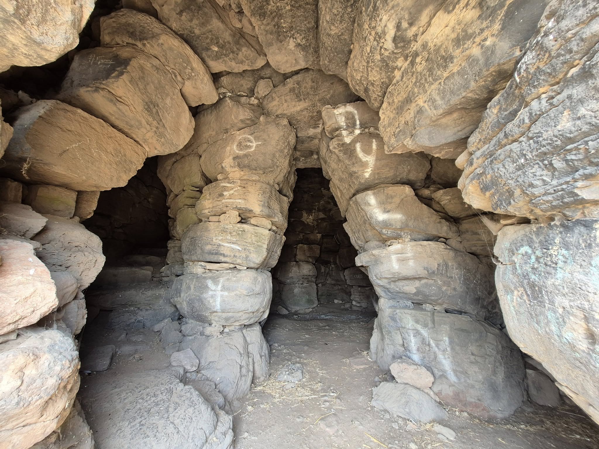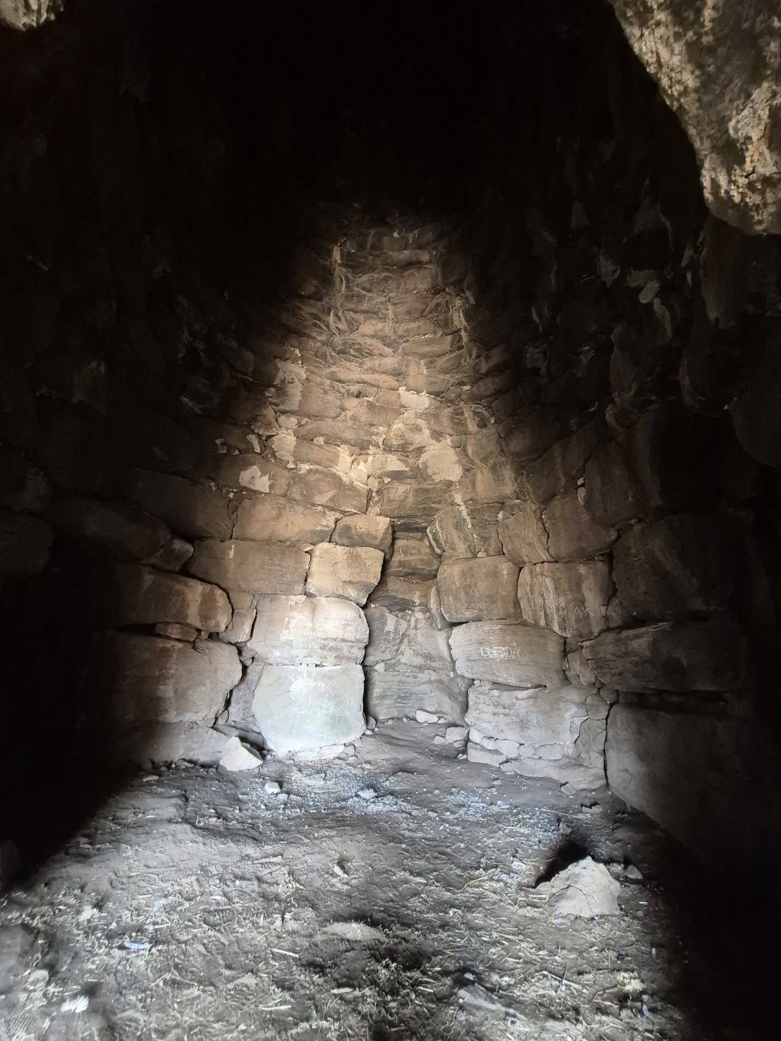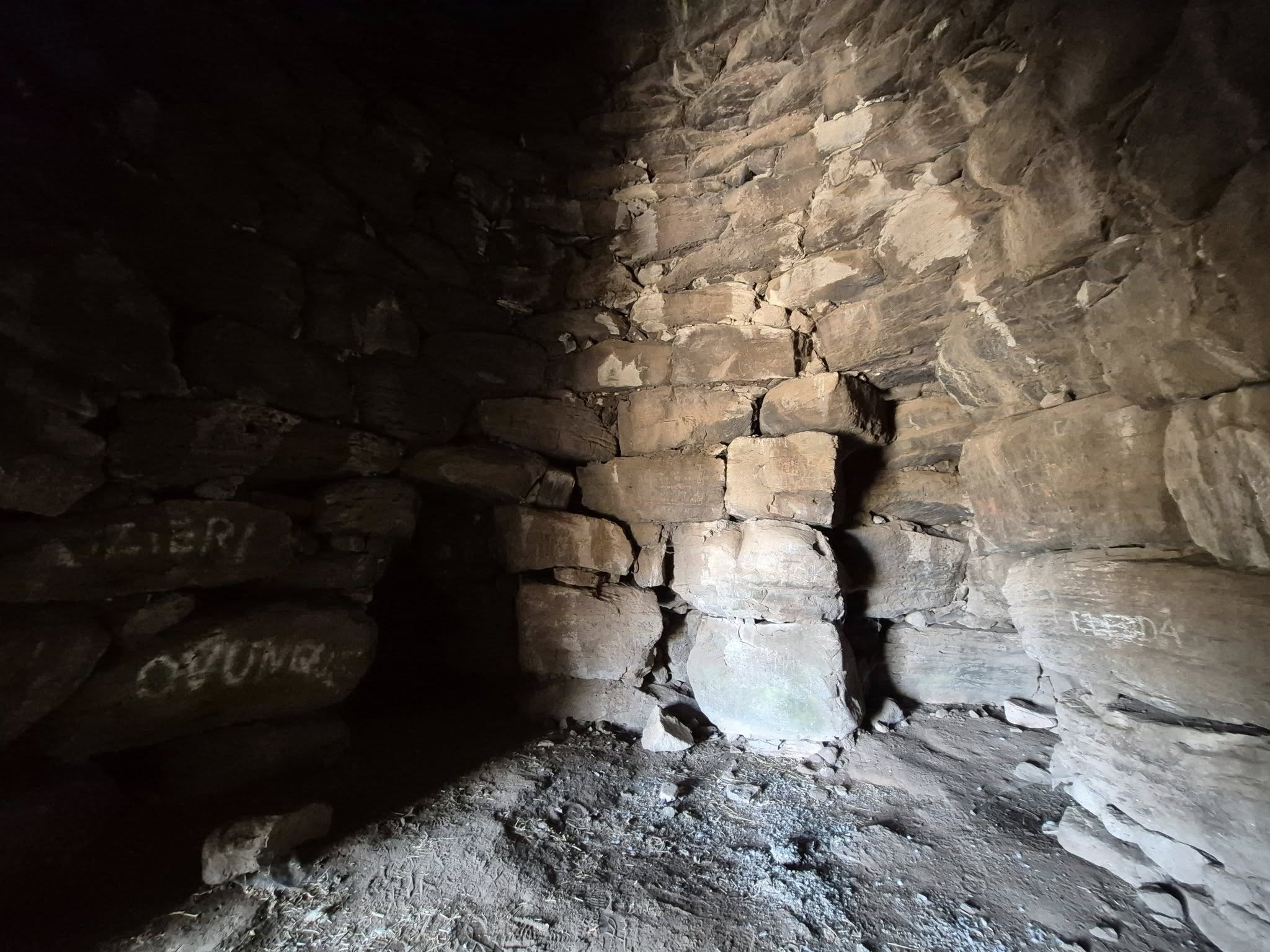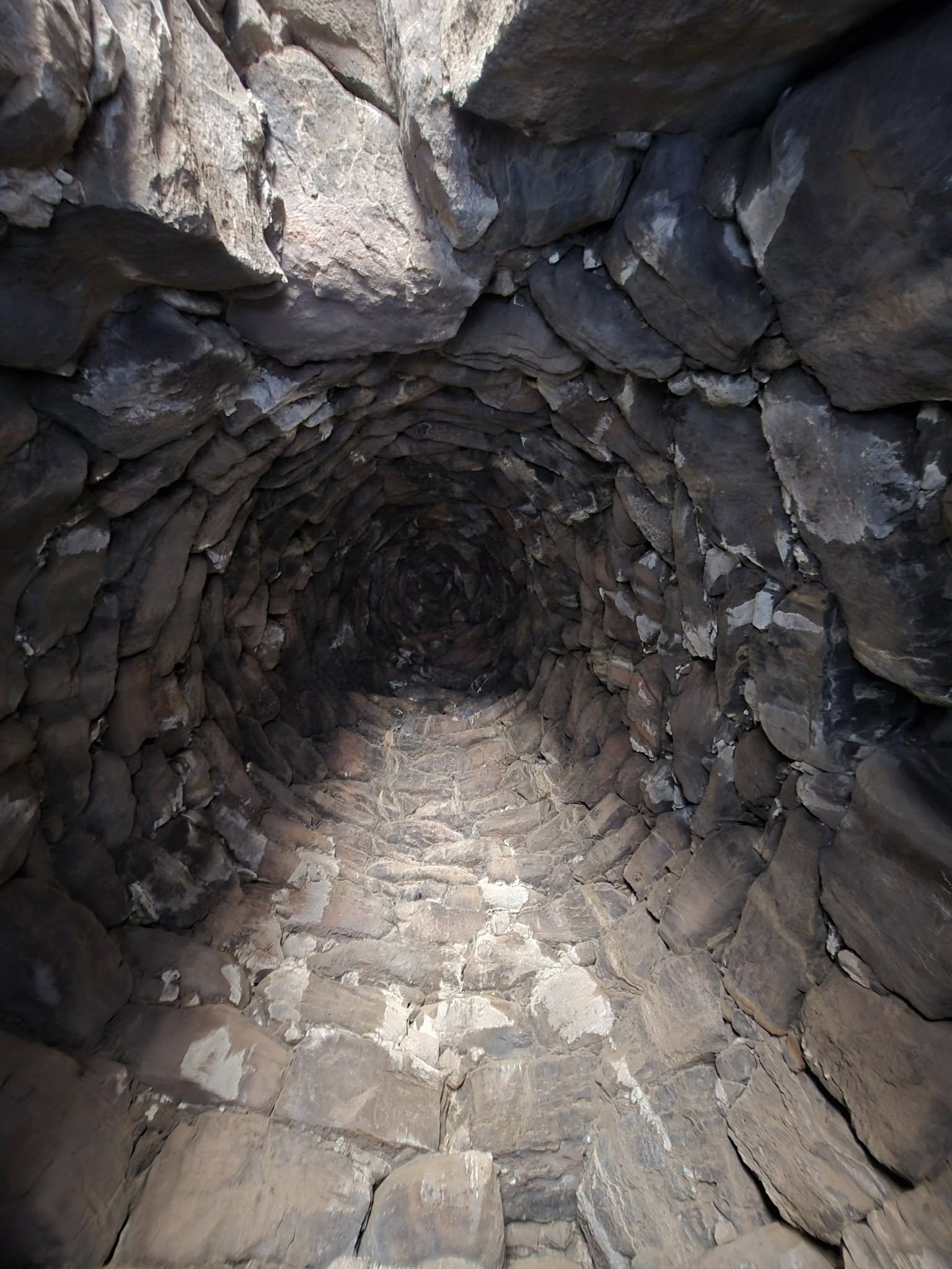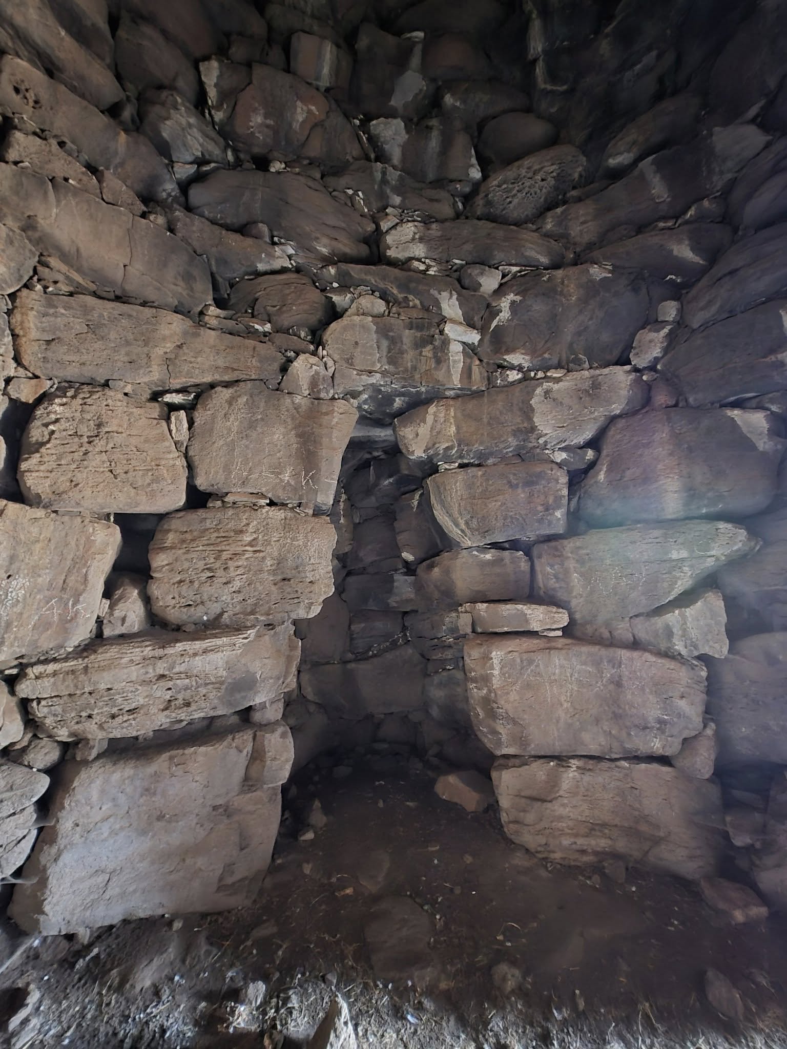 La torre (diametro m 14,20; altezza m 1/1,80) è costruita nei filari inferiori con grandi blocchi; a questi si sovrappongono massi di minori dimensioni, rifiniti con cura e messi in opera su corsi orizzontali regolari. … Sardegna Cultura