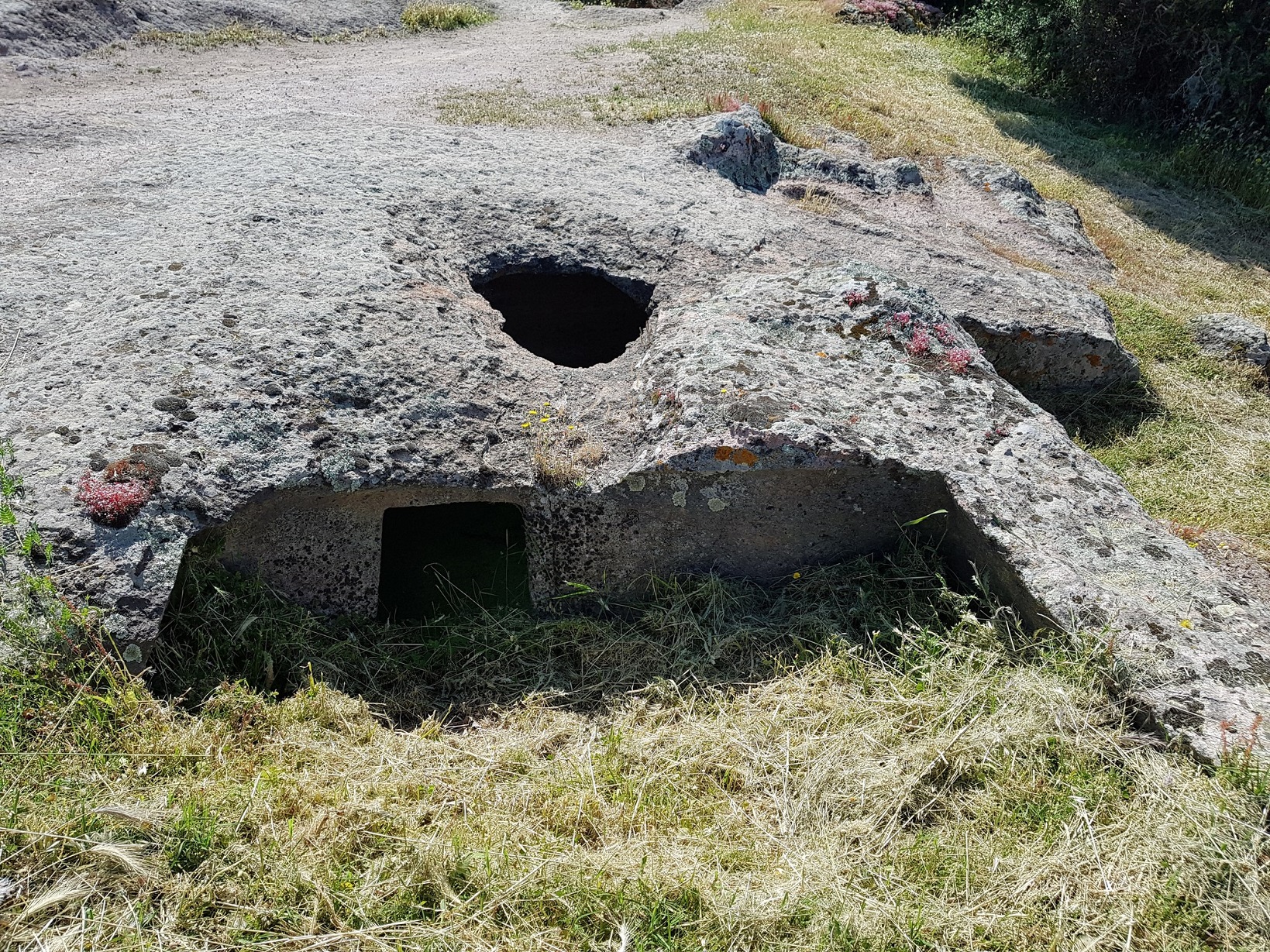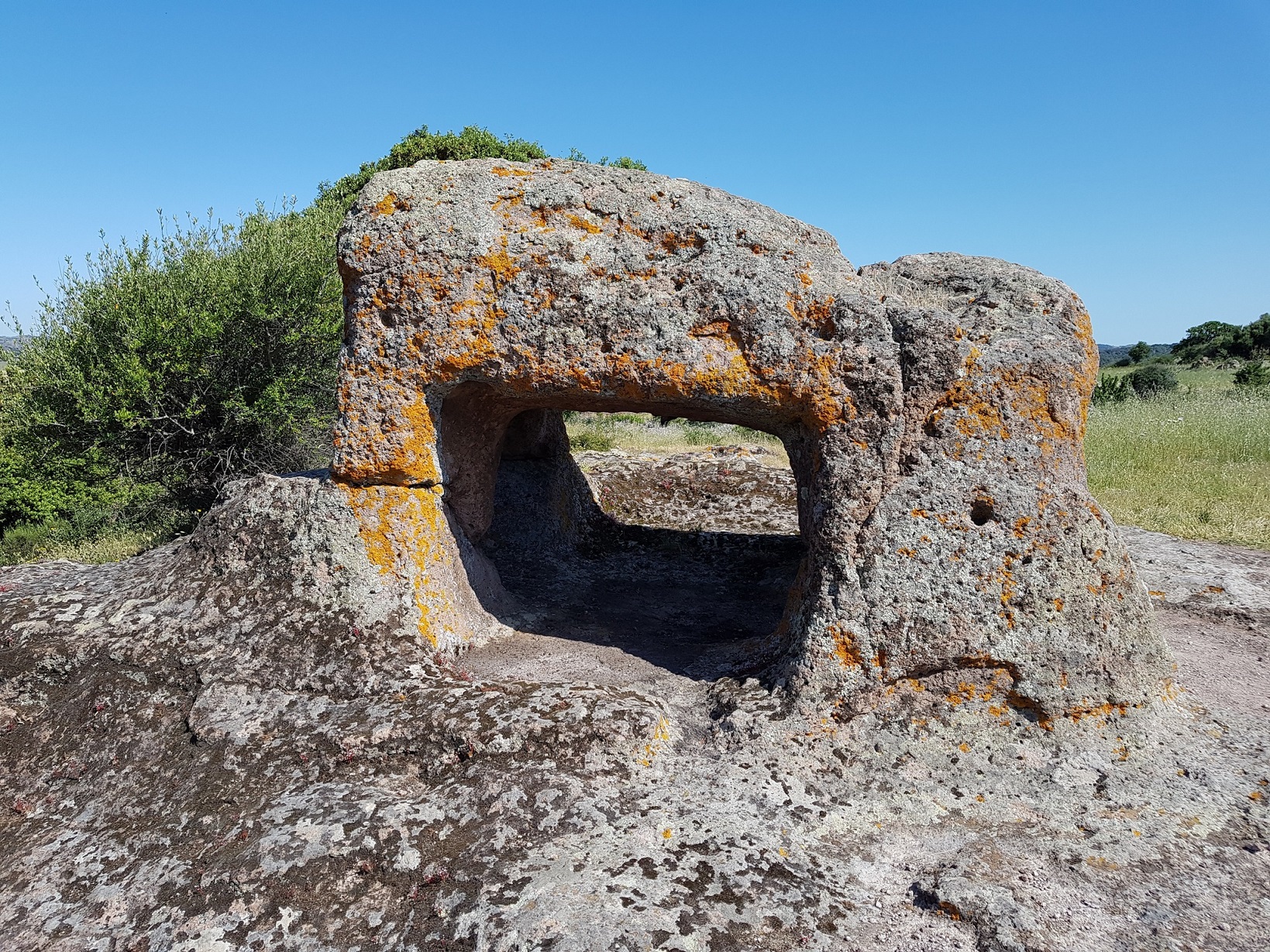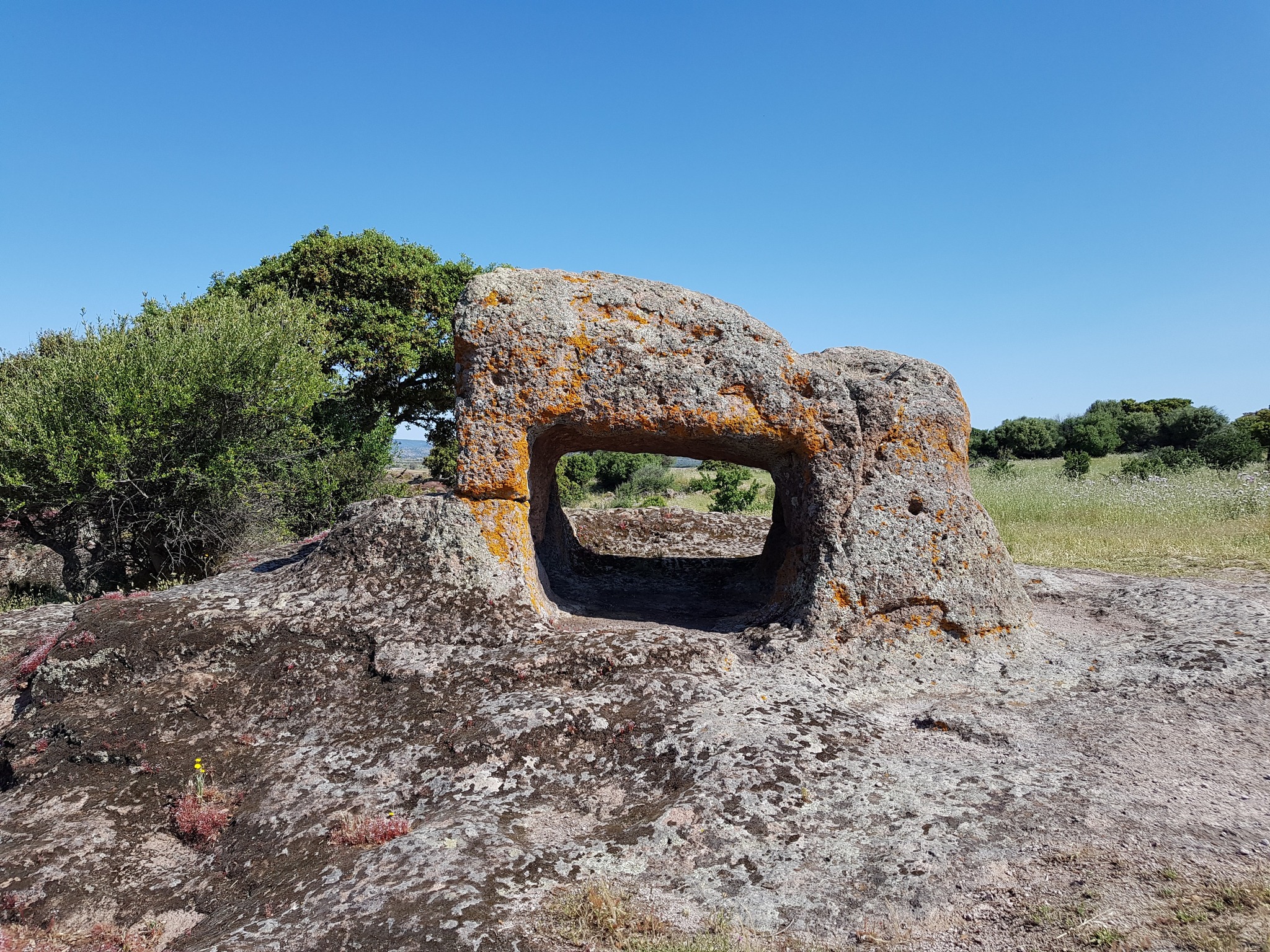 Le domus de janas che compongono questa necropoli, una delle più estese ed importanti della Sardegna, sono scavate sulla parete verticale e sul pianoro di un affioramento trachitico – alto circa 10 m e orientato a S – e consistono in una ventina di sepolture disposte per lo più ad una certa altezza rispetto al livello di campagna.