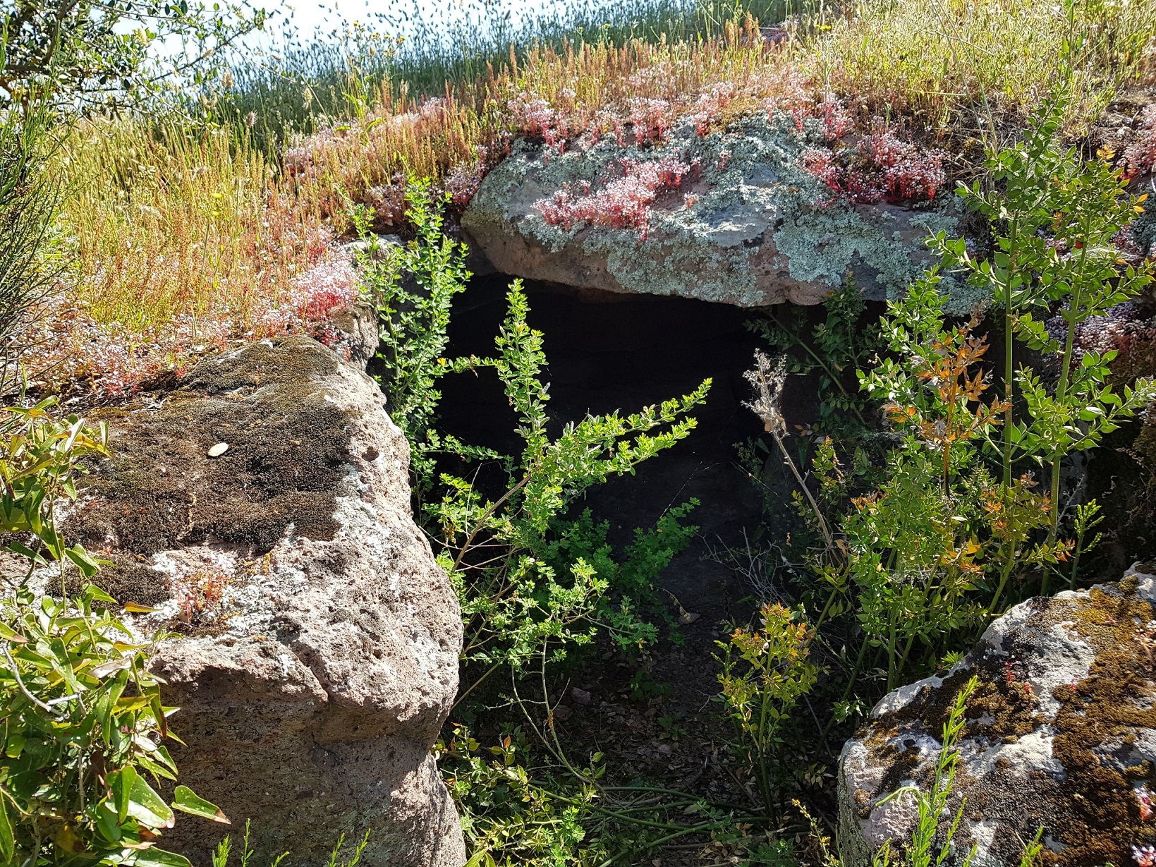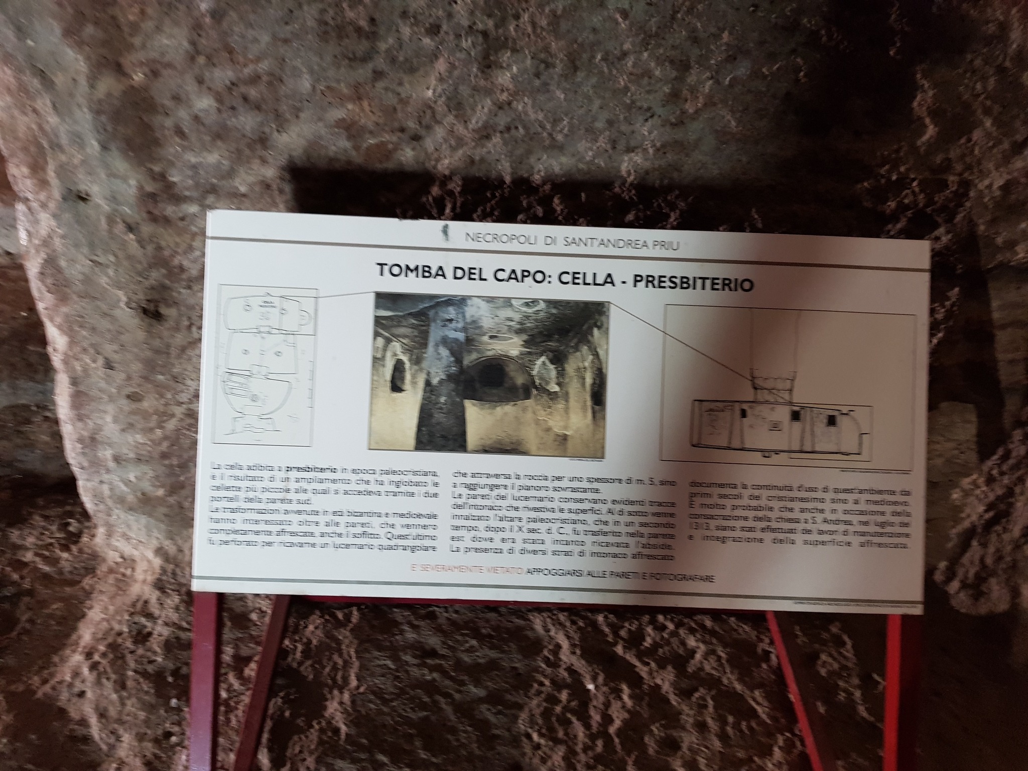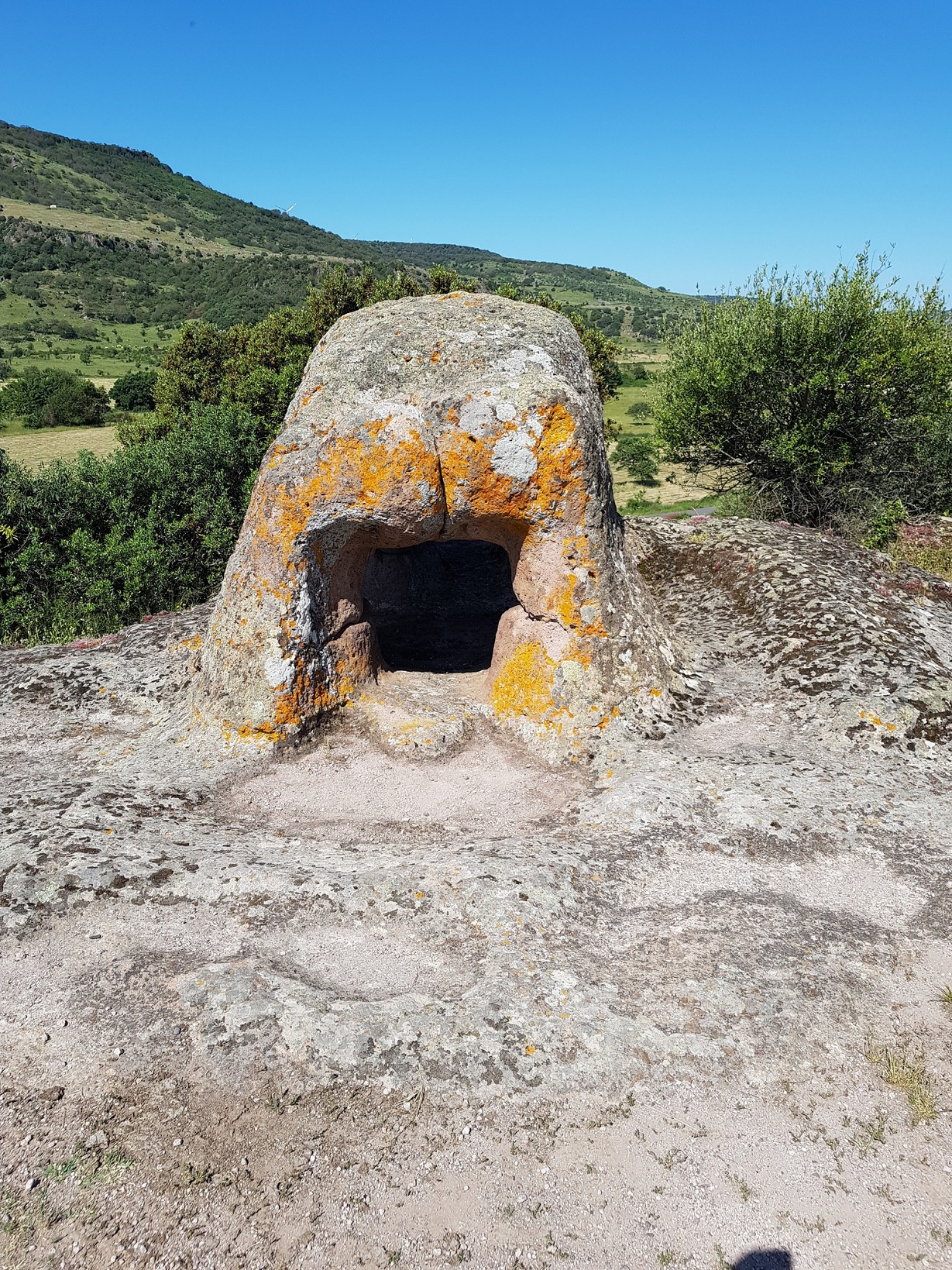 Le domus de janas che compongono questa necropoli, una delle più estese ed importanti della Sardegna, sono scavate sulla parete verticale e sul pianoro di un affioramento trachitico – alto circa 10 m e orientato a S – e consistono in una ventina di sepolture disposte per lo più ad una certa altezza rispetto al livello di campagna.