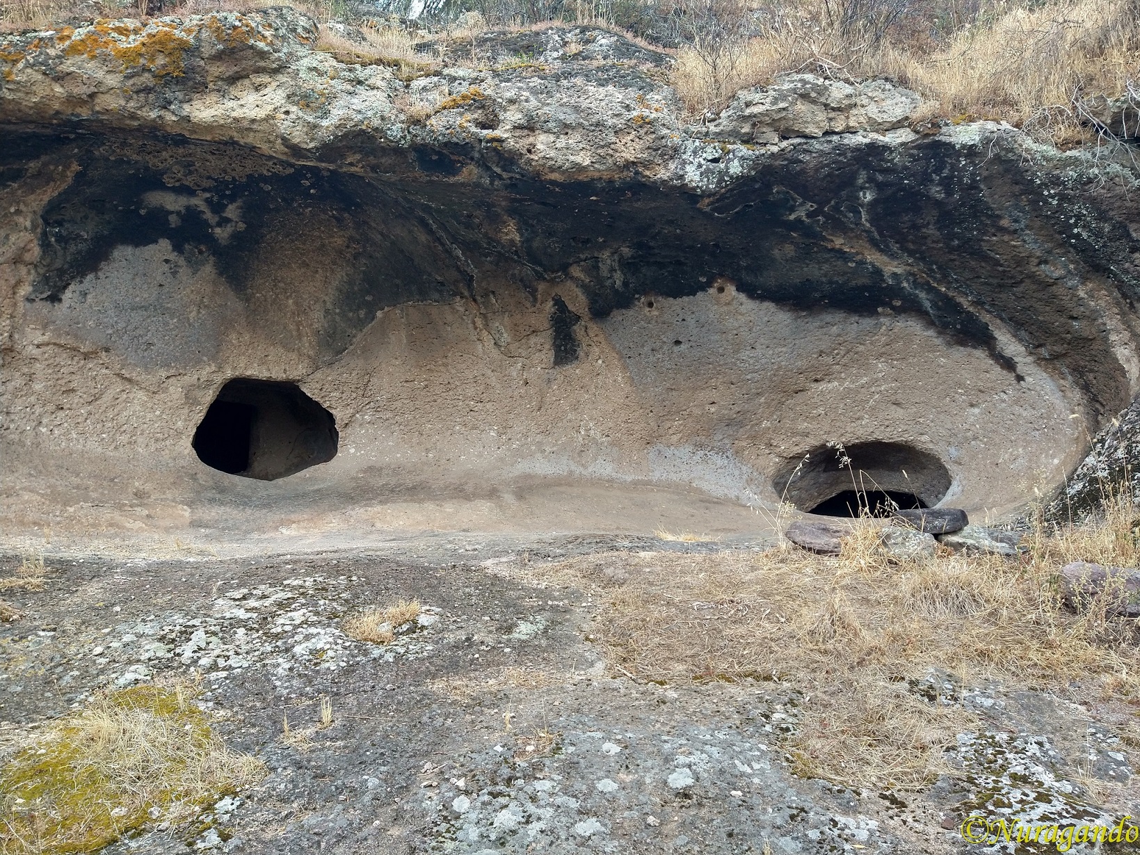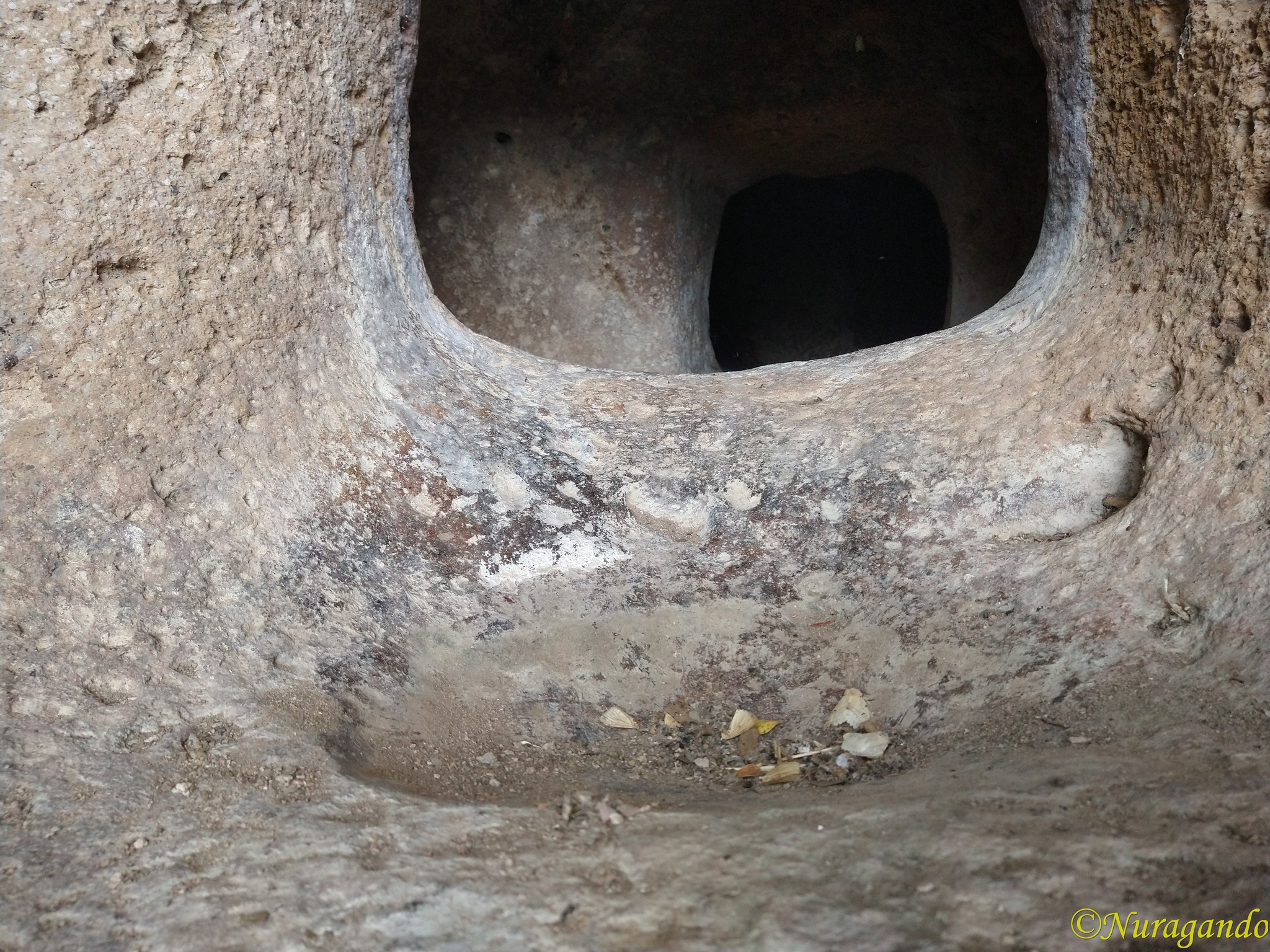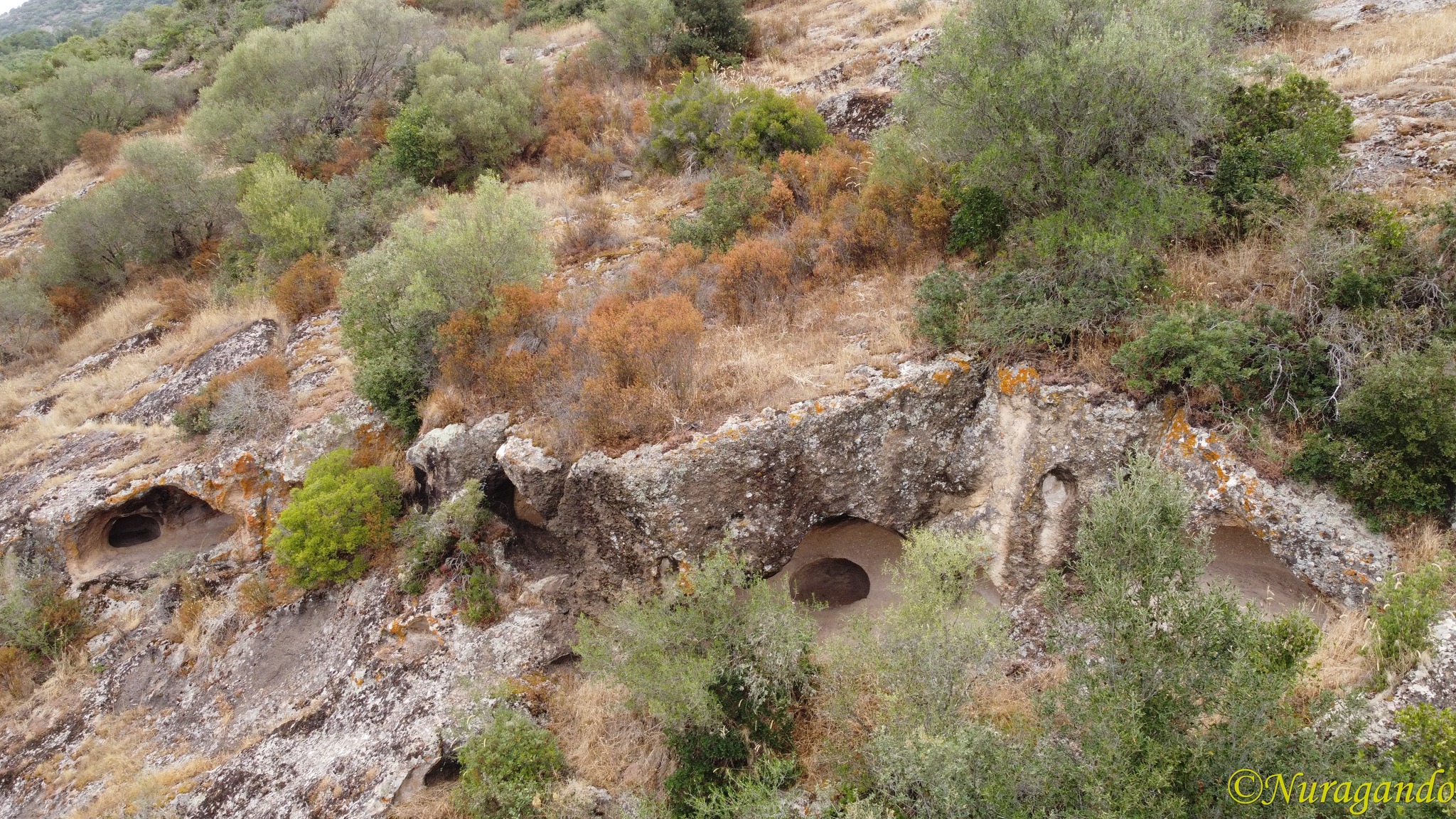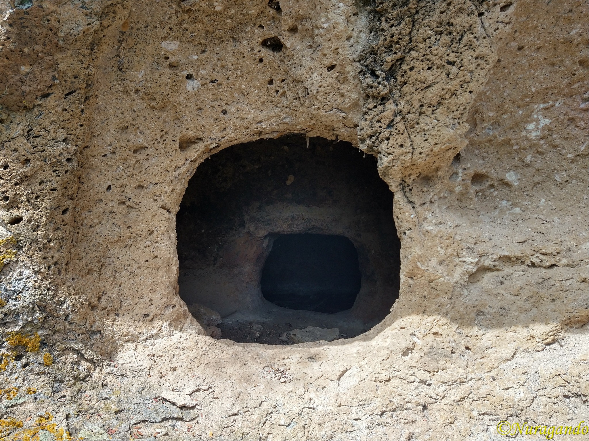 La tomba 2 è aperta anch’essa in un anfratto; comprende l’anticella ed una seconda cella ellissoidale irregolare. Sul portello d’ingresso alla cella è stato osservato un motivo corniforme, ora danneggiato.