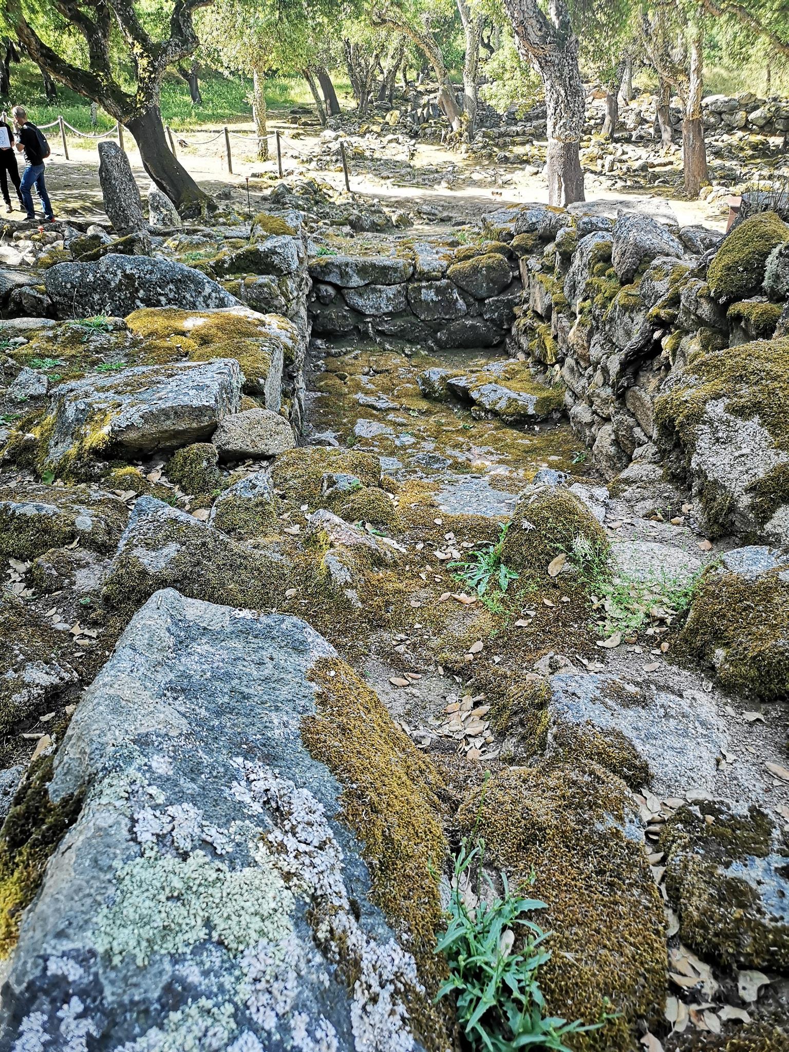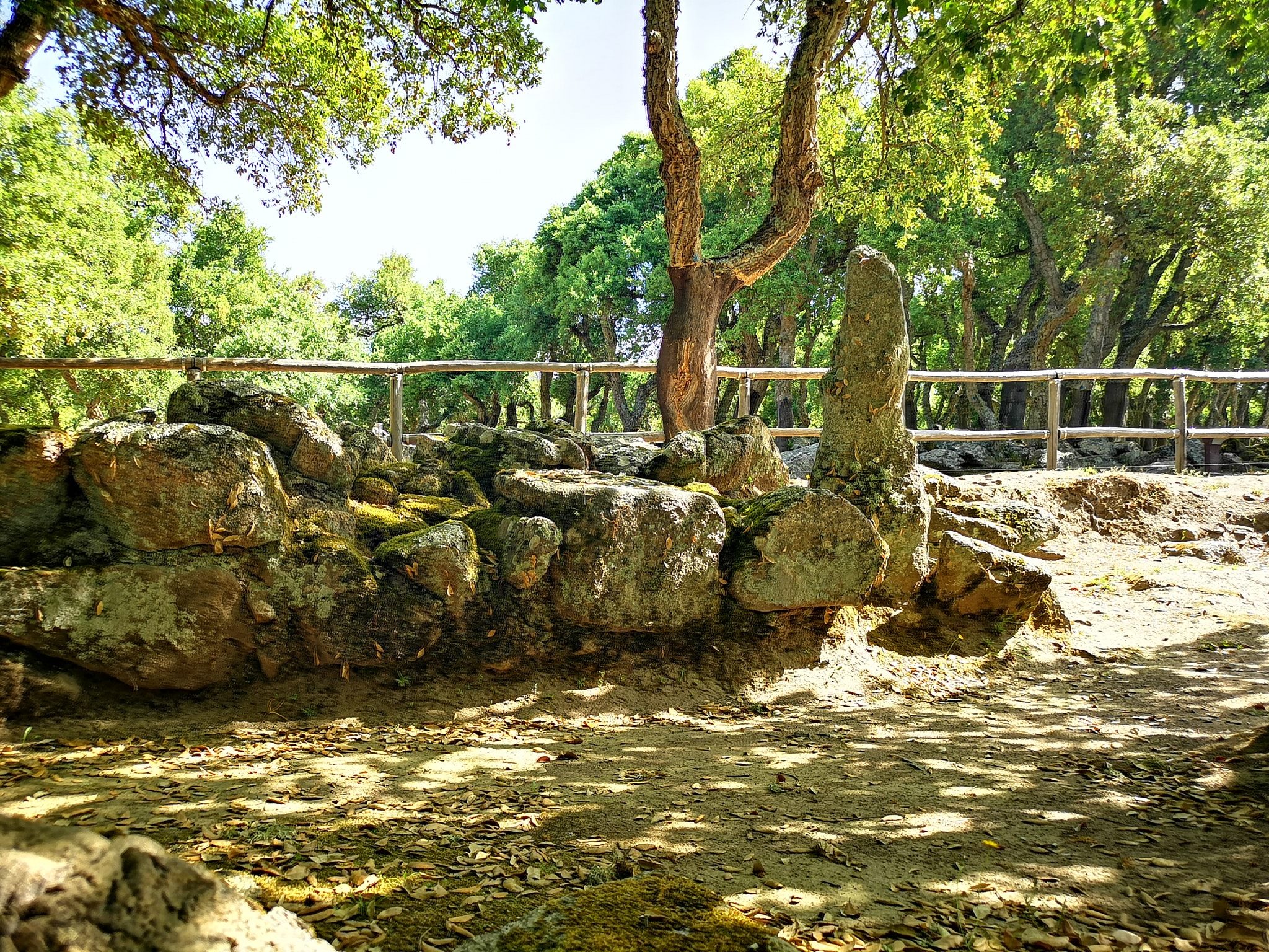 Il complesso nuragico di Romanzesu si trova a 750 m s.l.m. in località “Poddi Arvu” (il pioppo bianco), nella foresta di sughere dell”altopiano granitico di Sa Serra,in provincia di Nuoro. Si tratta di un villaggio nuragico esteso per oltre sette ettari risalente all”Età del bronzo, vicino alla sorgente del fiume Tirso, e che comprende il pozzo sacro, un centinaio di capanne, due templi a megaron, un tempio rettangolare, un anfiteatro ellittico a gradoni, e una grande struttura labirintica.