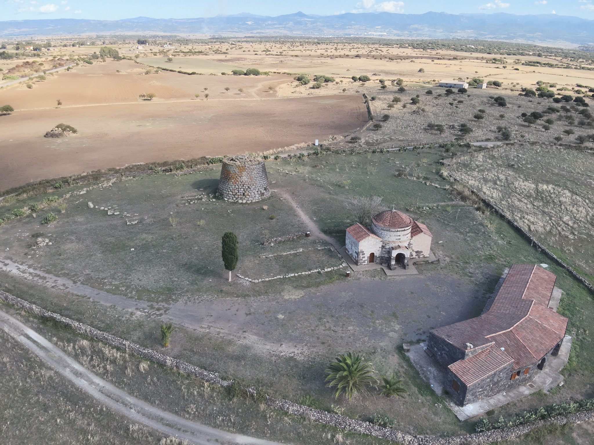 Il nuraghe di Santa Sabina o Sarbana è un monotorre attiguo all’omonima chiesa. Ha diametro alla base di 12,60 m e, benché demolito nelle parti alte, si conserva in elevato per 8,60 m. Attraverso l’ingresso rivolto a Sud si entra nel corridoio, su cui si aprono, a destra, una nicchia rettangolare e, a sinistra, la scala, ancora percorribile, che conduceva alla cella superiore, ormai distrutta. Il corridoio porta alla bella camera circolare, che ha un diametro di 4,15 m e sulla quale si aprono tre nicchie disposte a croce.