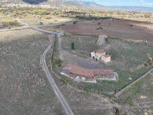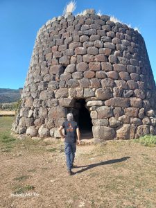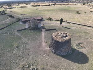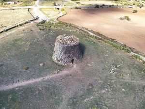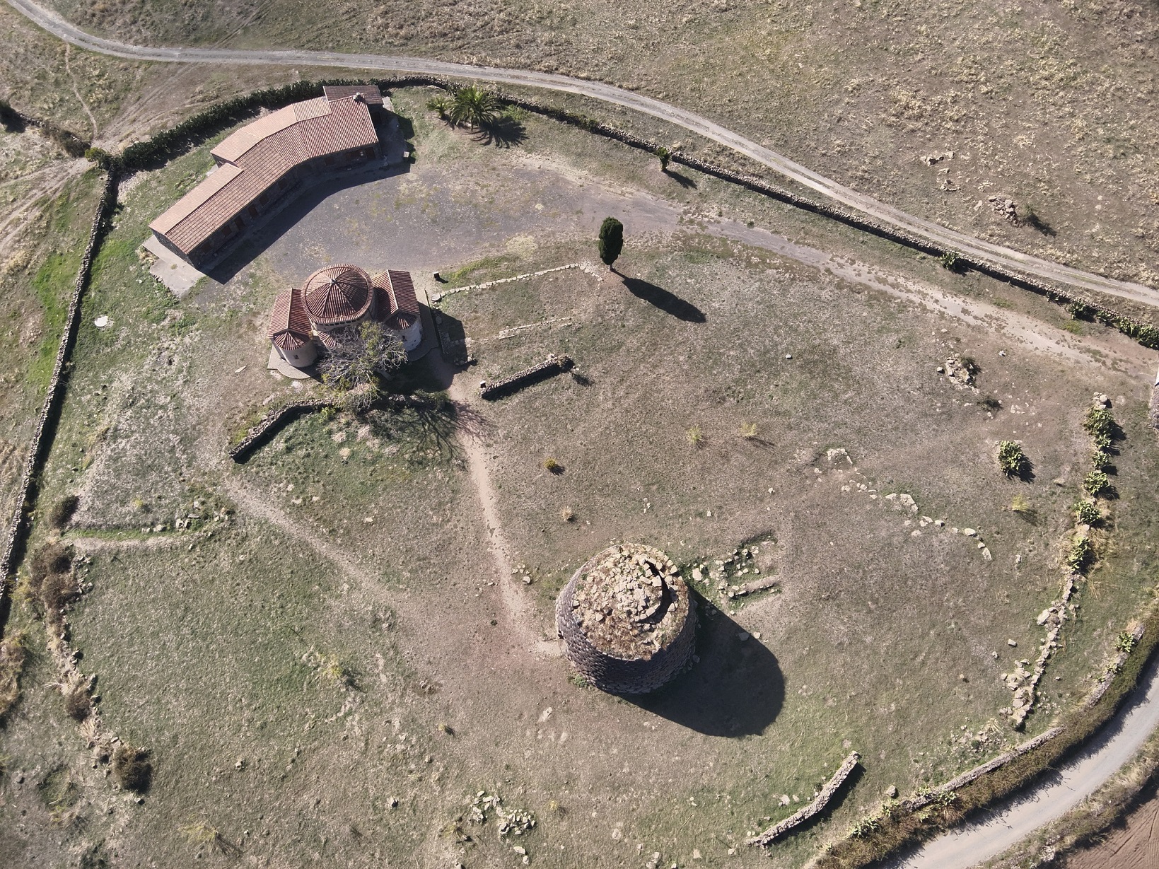 Nasce appoggiato ad un grosso sperone roccioso della medesima pietra di colore rosato che ne chiude in direzione sud est un quarto della circonferenza. Allo stato attuale non è possibile determinarne l’ubicazione dell’ingresso. L’edificio nuragico ha subito il crollo della tholos verso l’interno e di molto materiale dal lato est. Dalla sua posizione domina uno spazio visivo in direzione est amplissimo che spazia da nord a sud per decine e decine di kilometri. La zona circostante purtroppo è stata ampliamente modificata negli anni ’60 con l’impianto di pini marittimi su tutto il monte che ne hanno modificato la conformazione.