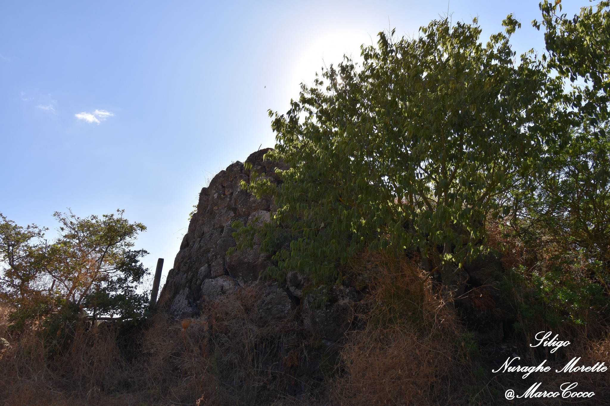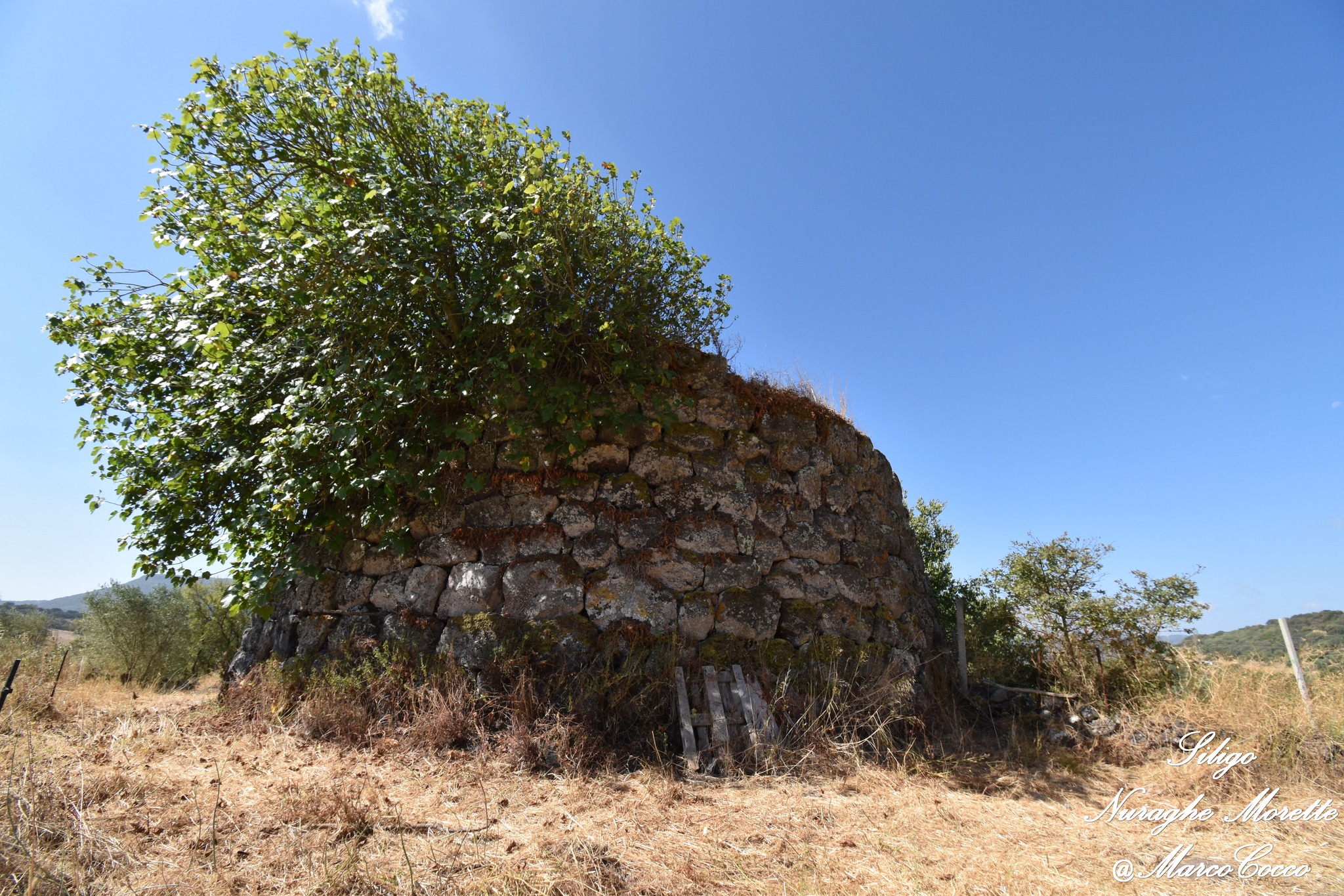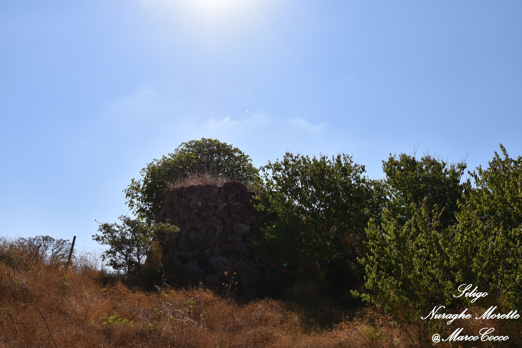 Il Nuraghe Morette è ubicato in territorio di Siligo, non lontano dalla SP 96 che collega Siligo con Ardara. Si tratta di un nuraghe semplice, costituito da una scala, una nicchia d’andito e una camera a tholos. La torre a pianta circolare (dia. alla base m. 14,40 e allo svettamento m.12,85, raggiunge l’altezza massima di m. 5,93 ad est e m. 4,40 a S/E. Il monumento risulta in buona parte interrato e l’unica foto dell’interno è stata scattata dalla finestrella sopra l’architrave.