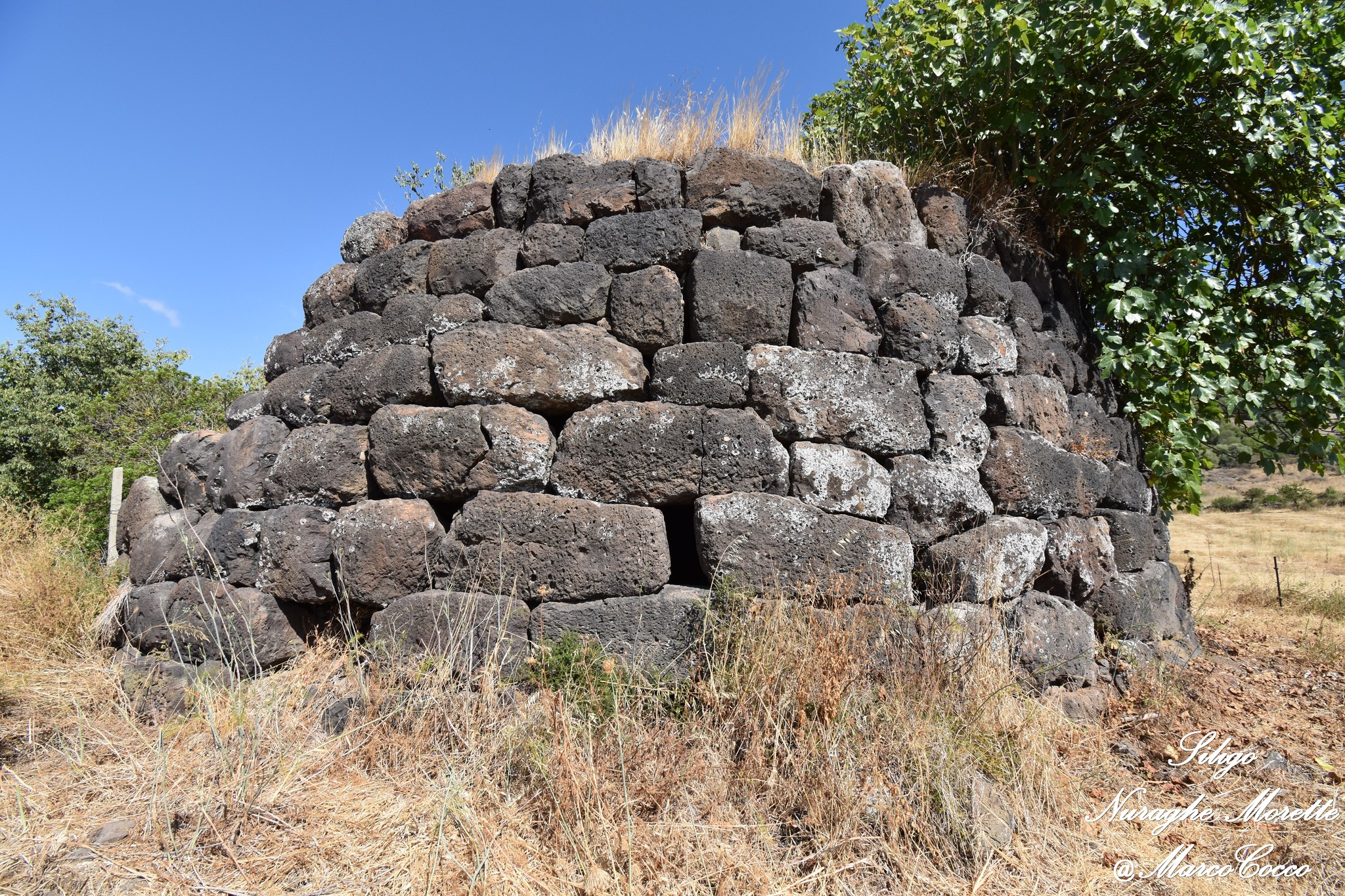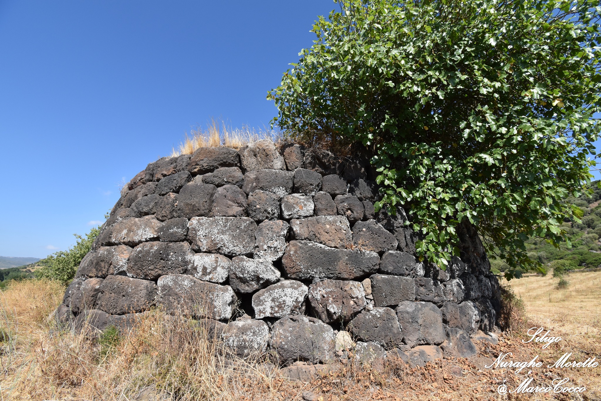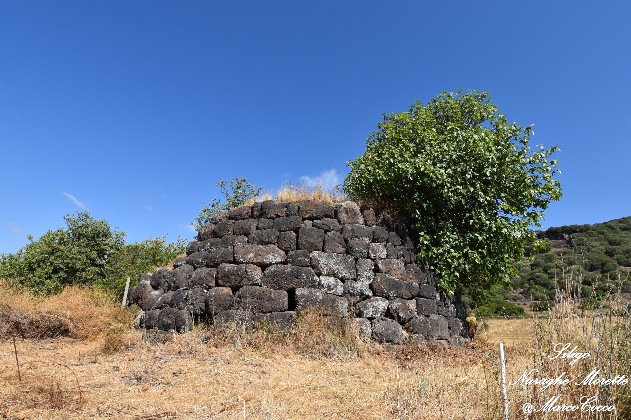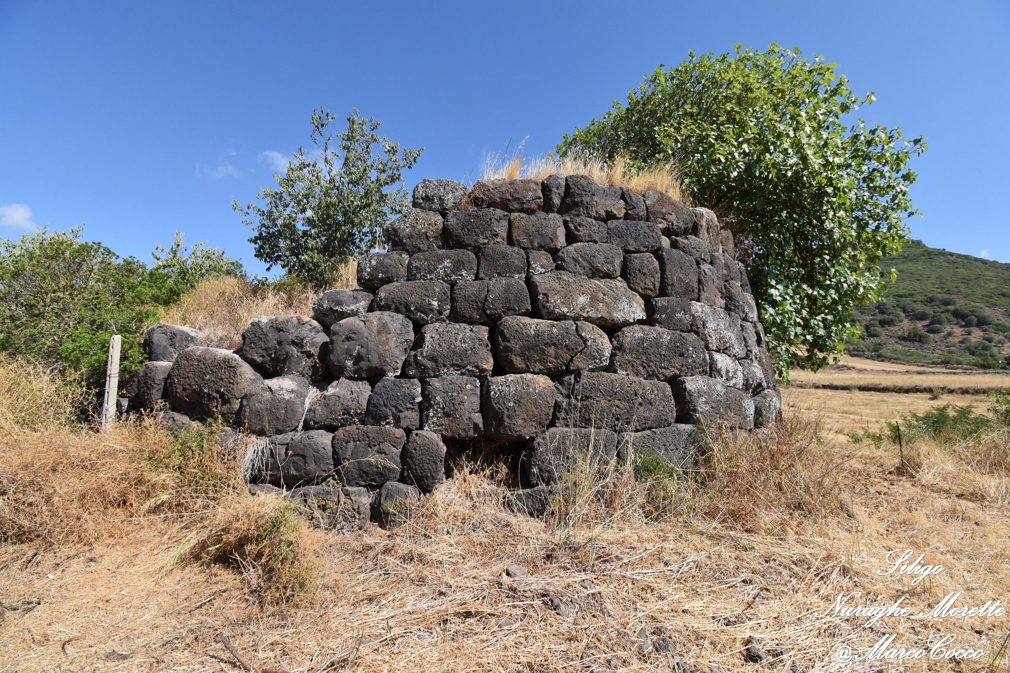 Il Nuraghe Morette è ubicato in territorio di Siligo, non lontano dalla SP 96 che collega Siligo con Ardara. Si tratta di un nuraghe semplice, costituito da una scala, una nicchia d’andito e una camera a tholos. La torre a pianta circolare (dia. alla base m. 14,40 e allo svettamento m.12,85, raggiunge l’altezza massima di m. 5,93 ad est e m. 4,40 a S/E. Il monumento risulta in buona parte interrato e l’unica foto dell’interno è stata scattata dalla finestrella sopra l’architrave.