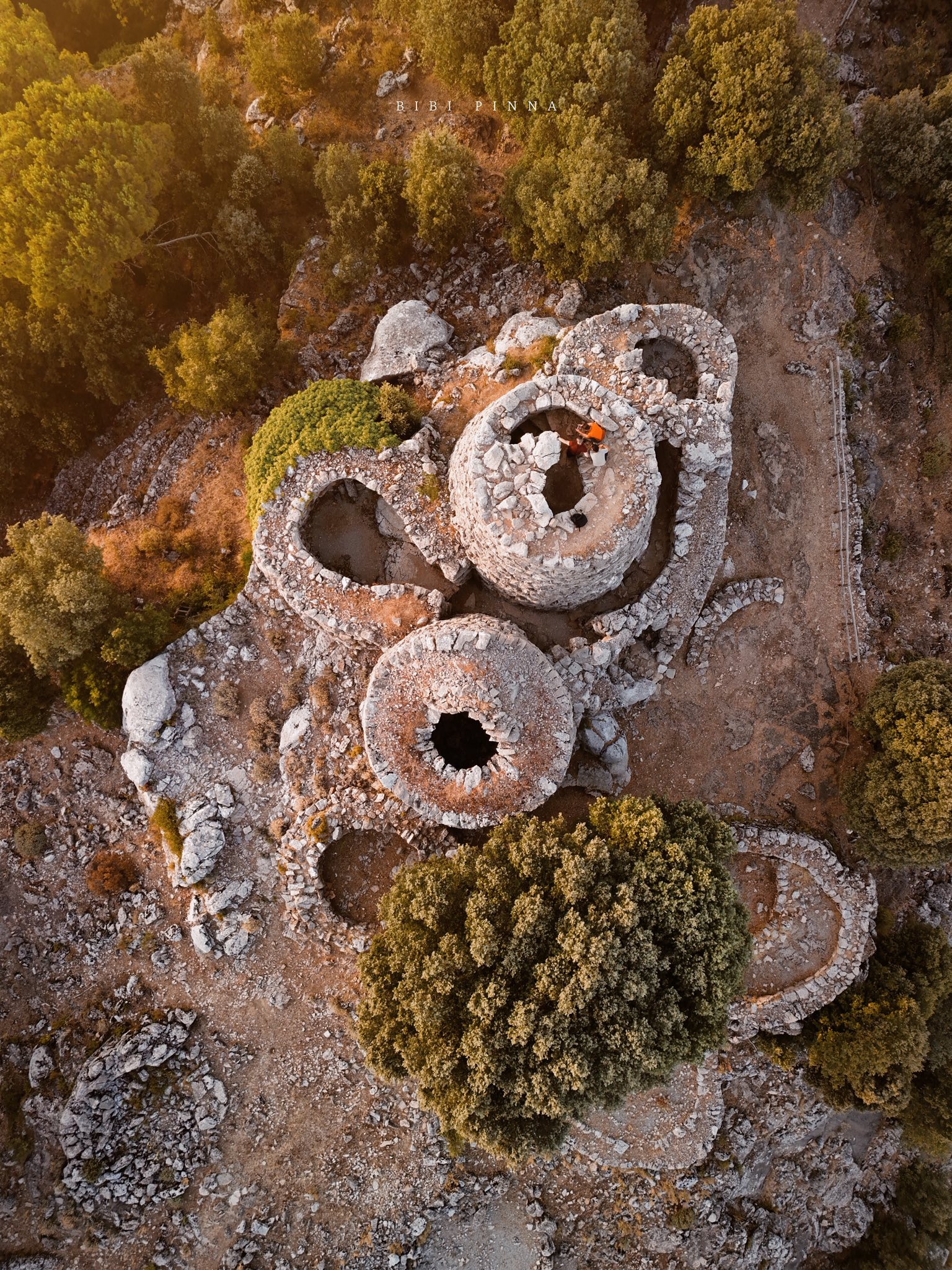 Luogo di rara bellezza. L”insieme, di particolare suggestione, comprende un nuraghe complesso con annesso villaggio, una grotta con due ingressi, due tombe di giganti e due nuraghi monotorri.