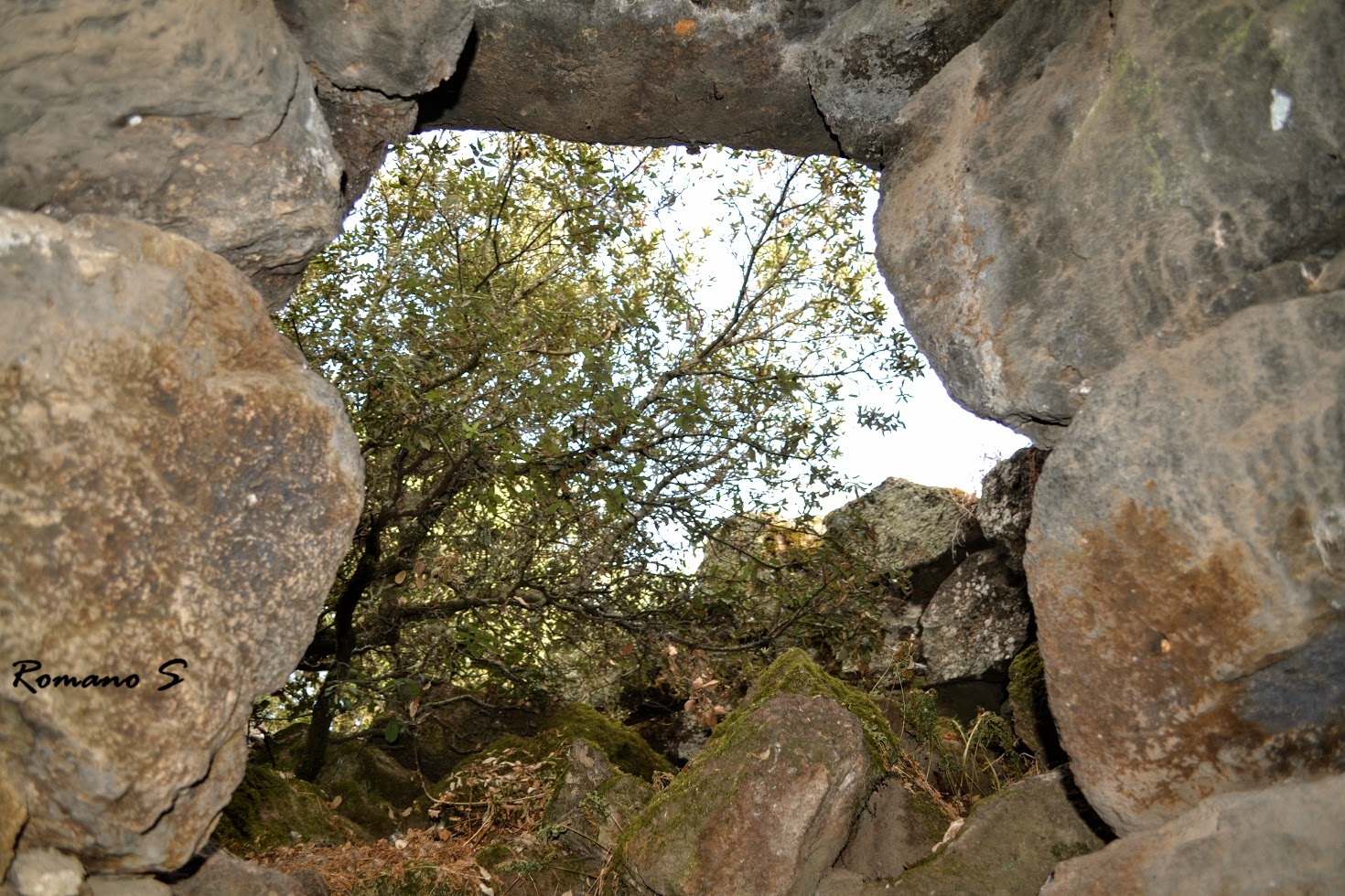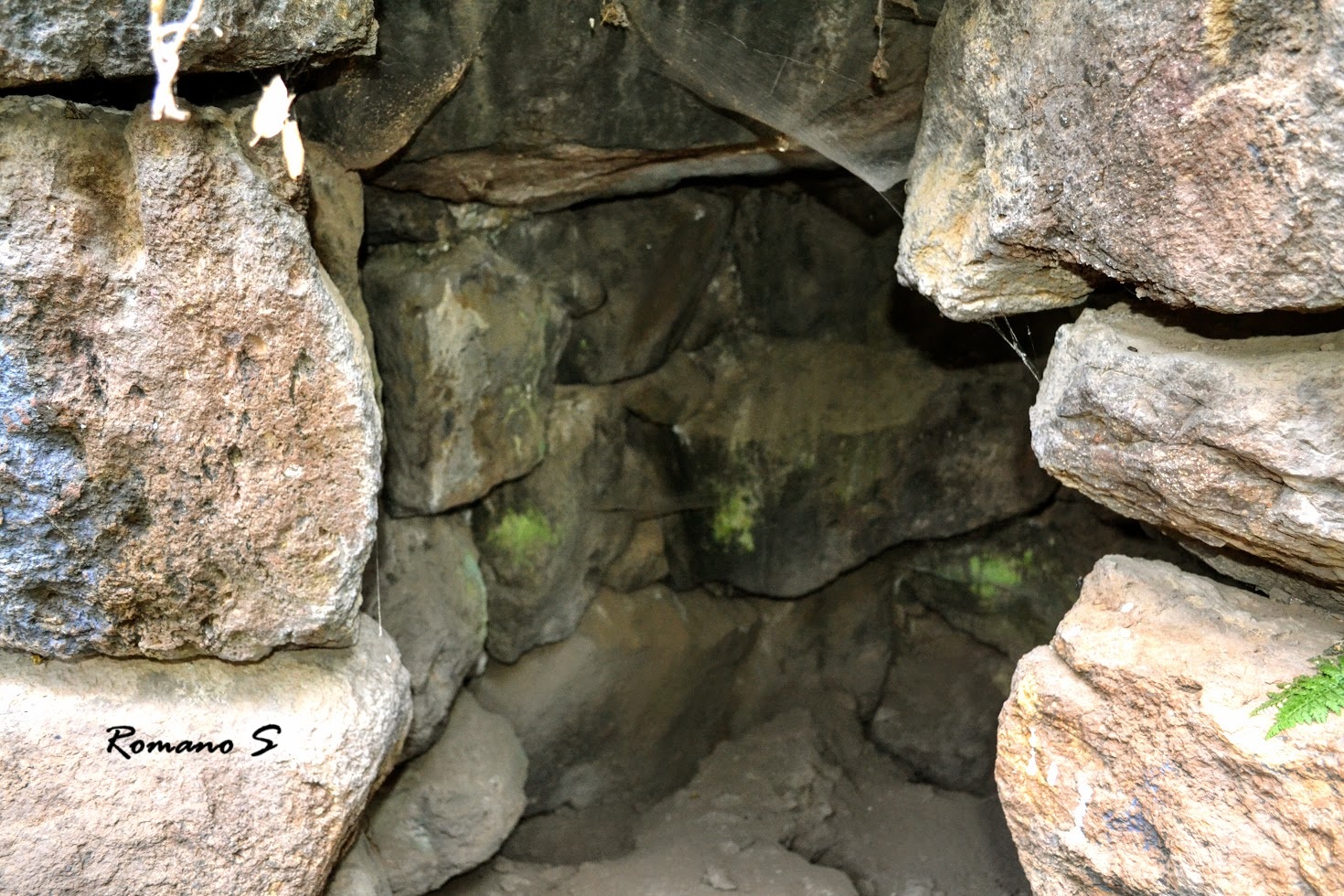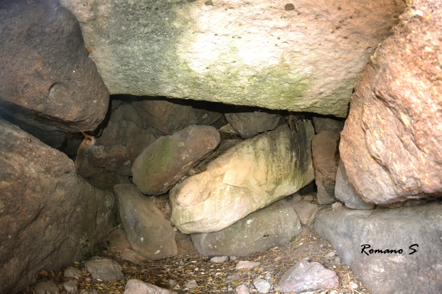 La porta principale e’ esposta a Sud-Sud-Est ed ha la particolarita’ di essere di calcare tufaceo bianco.All’interno, nonostante il crollo si puo’ visitare la camera interna dove sono in buono stato di conservazione alcune celle laterali.Dalla parte esposta a nord si contano una decina difilari di pietre di medie dimensioni bene sbozzate e poste a circoli ordinati.(M.U)
