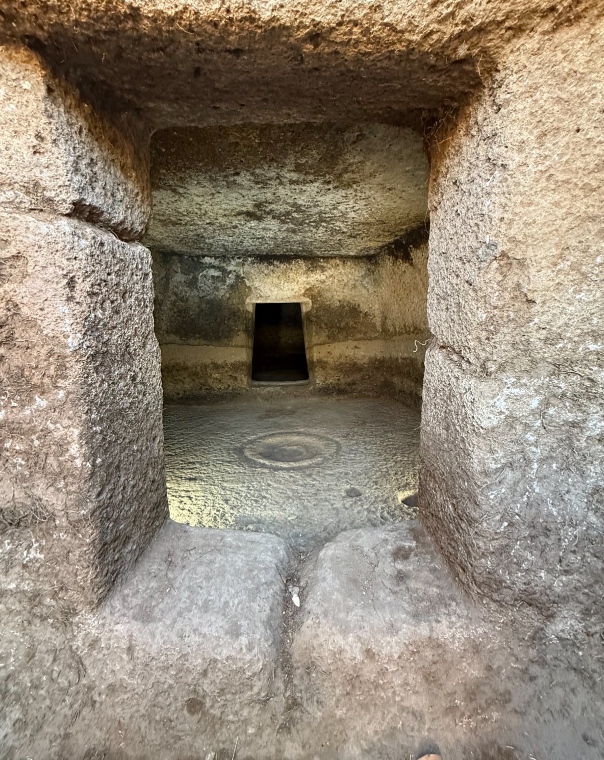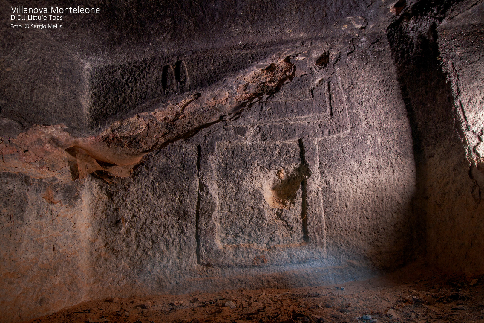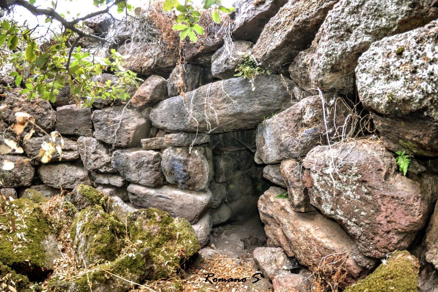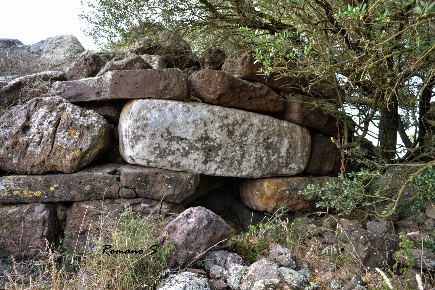 La porta principale e’ esposta a Sud-Sud-Est ed ha la particolarita’ di essere di calcare tufaceo bianco.All’interno, nonostante il crollo si puo’ visitare la camera interna dove sono in buono stato di conservazione alcune celle laterali.Dalla parte esposta a nord si contano una decina difilari di pietre di medie dimensioni bene sbozzate e poste a circoli ordinati.(M.U)