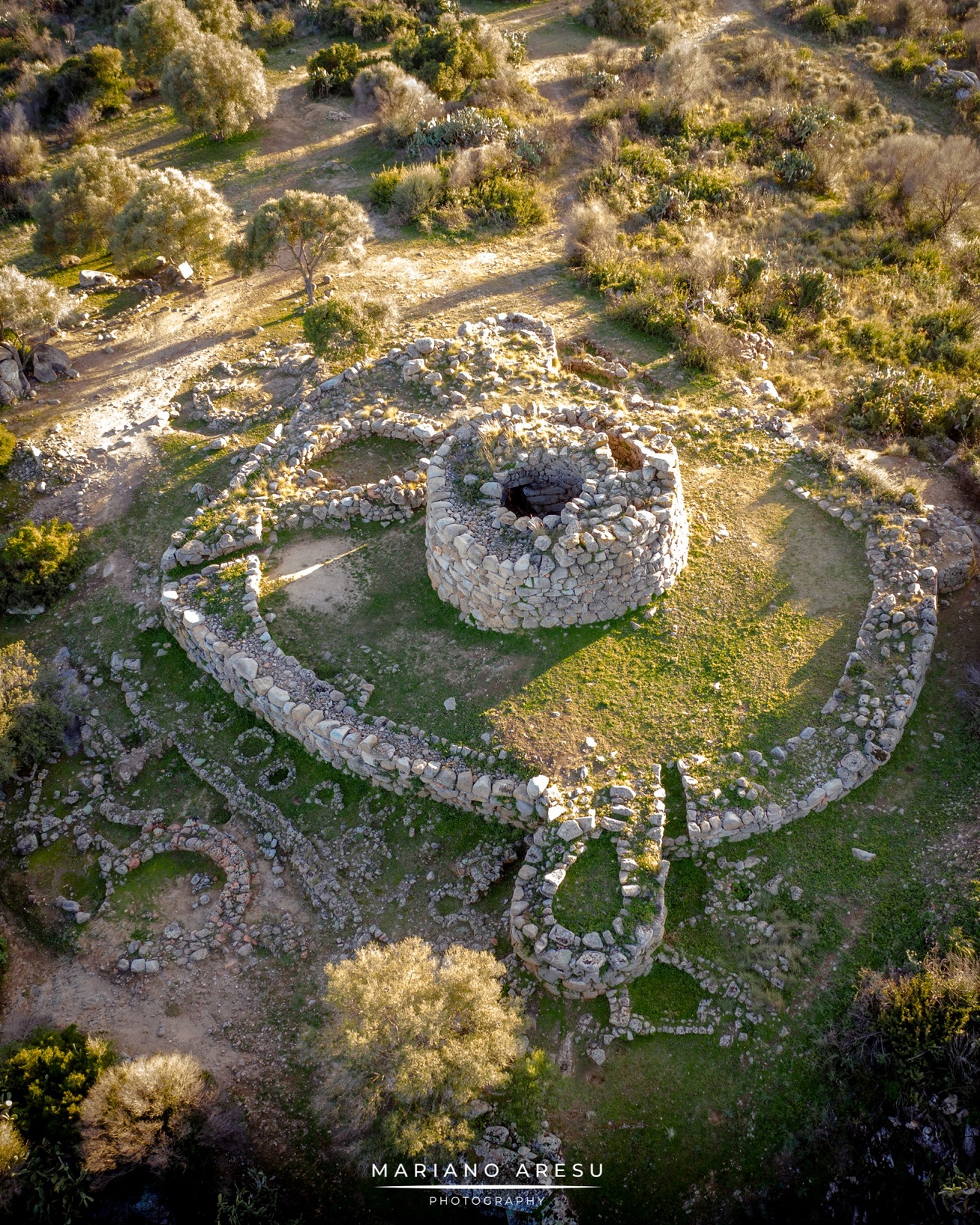 il nuraghe apparentemente formato da tre torri, all”interno si possono vedere tre nicchie. sulla sinistra una scala porta ai piani superiori , e intorno ad esso si vedono i resti del villaggio nuragico con alcune pietre rosse della zona. A sinistra del nuraghe si trova una piccola necropoli .