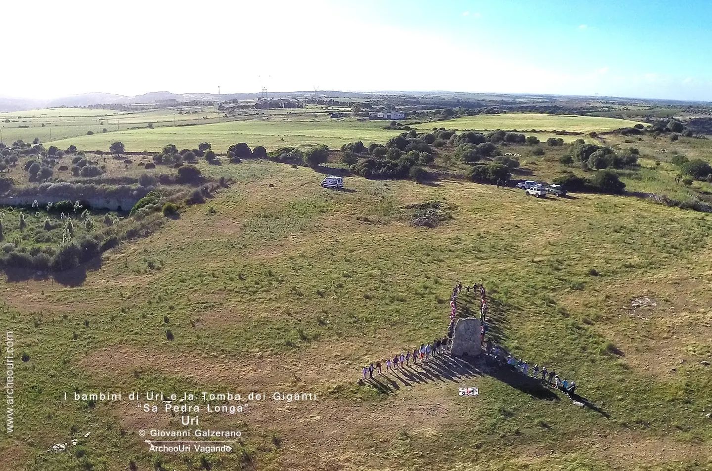 A pochi chilometri dall’abitato di Uri, una lunga stele in pietra si erge al centro di un campo, dando il nome al sito: Sa Pedra Longa (La Pietra Lunga). In passato costituiva il fronte di una tomba di giganti nuragica, risalente all’Età del Bronzo medio (1700-1350 a.C. circa). Del monumento originario si conserva appunto solo la stele centinata monolitica (ottenuta con un solo blocco di roccia), la cui tipologia e dimensioni relativamente modeste suggeriscono una datazione antica.