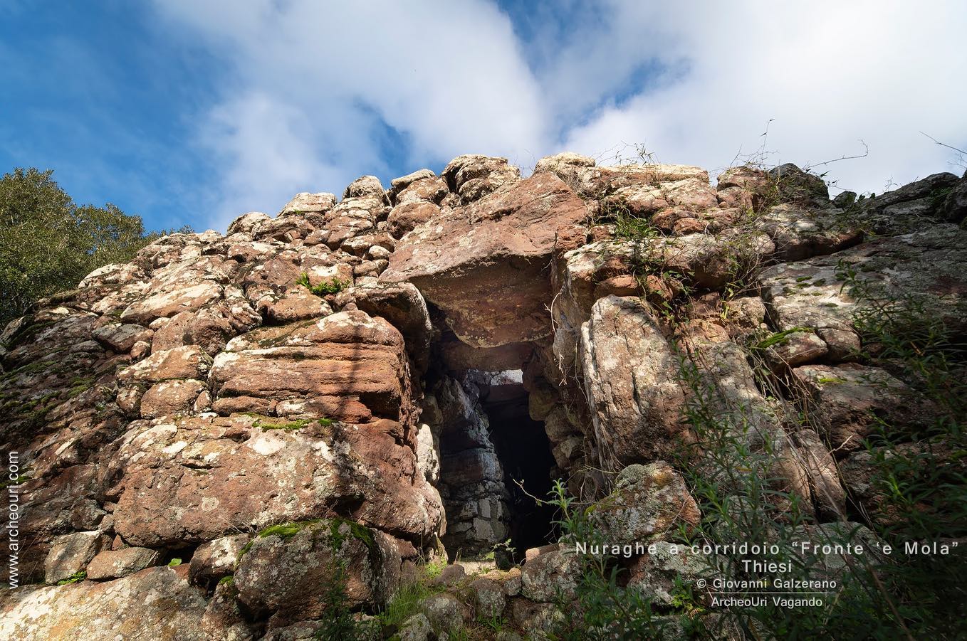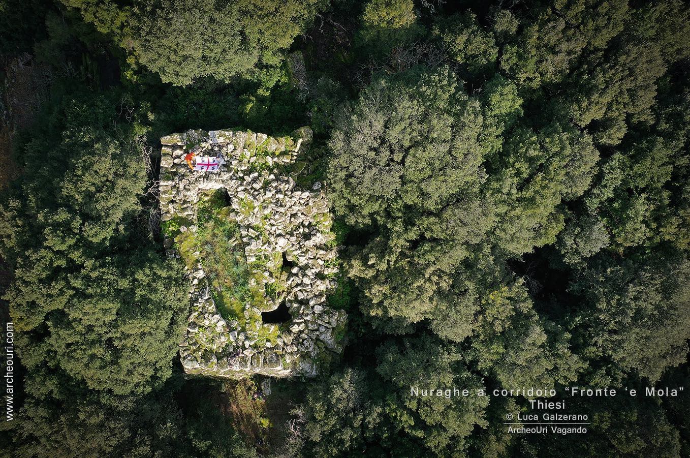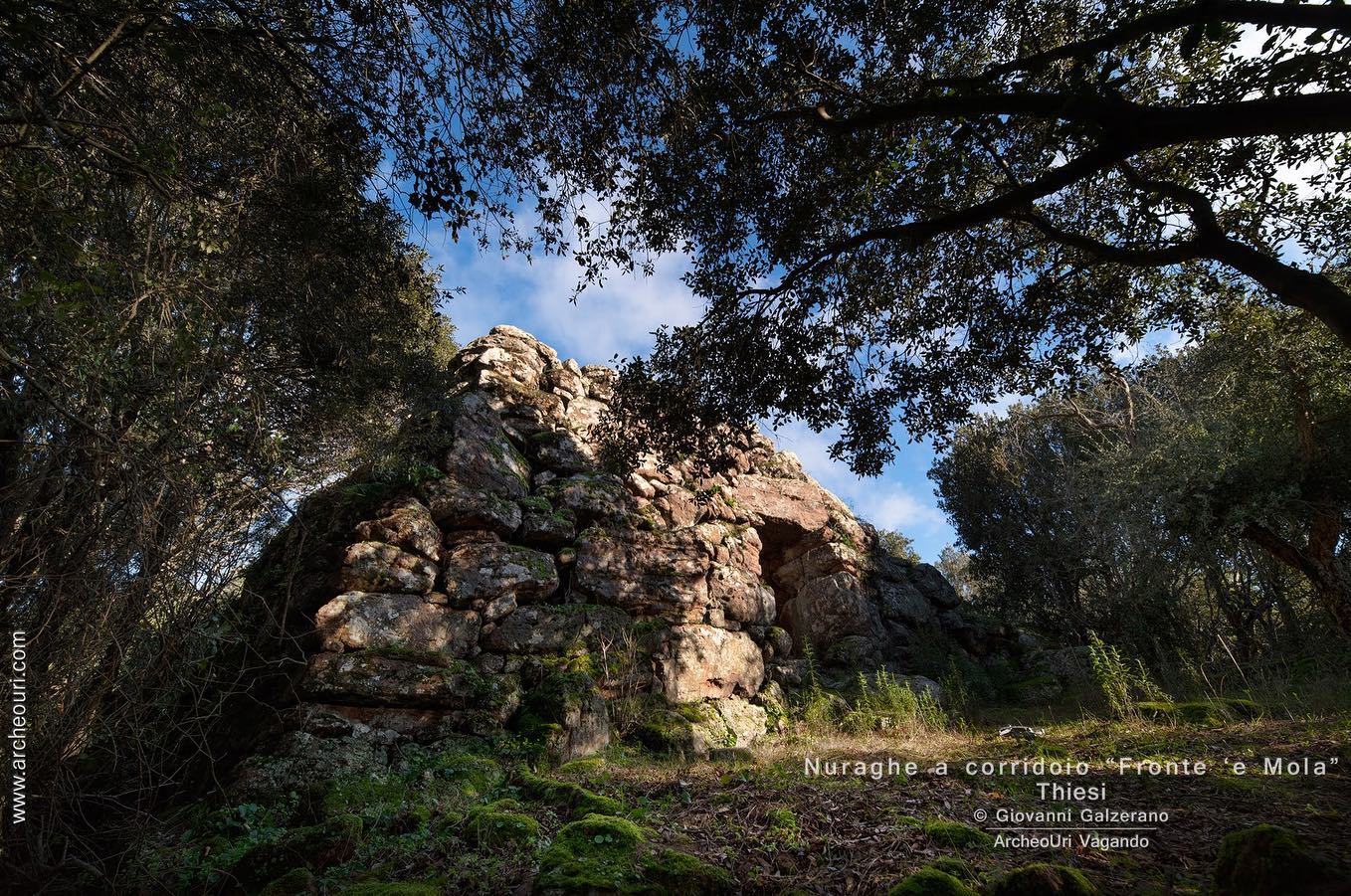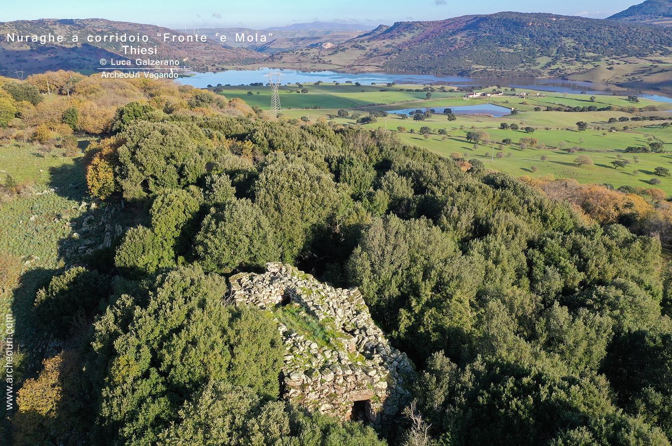 Il Fronte Mola è un interessante nuraghe “a corridoio”, l’unico finora noto a pianta rettangolare (lungh. m 16,20; largh. m 12, 00; alt. res. m 8,00). Orienta il lato maggiore lungo l’asse N-S e mostra l’ingresso a S. È costruito alla base con grossi blocchi di calcare rozzamente sbozzati e nelle parti superiori con massi più piccoli sovrapposti e rincalzati con zeppe.