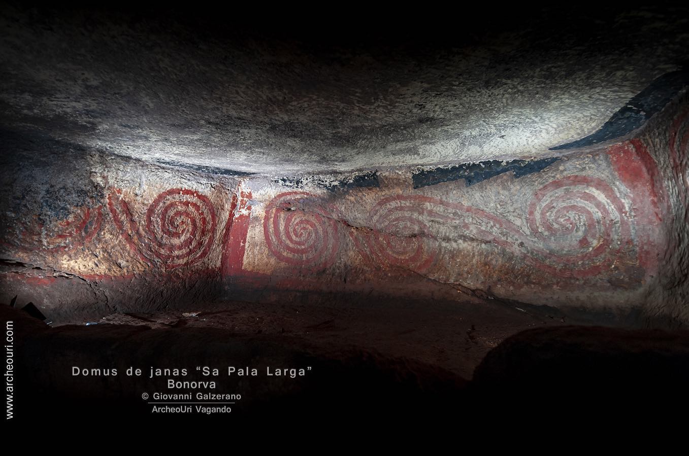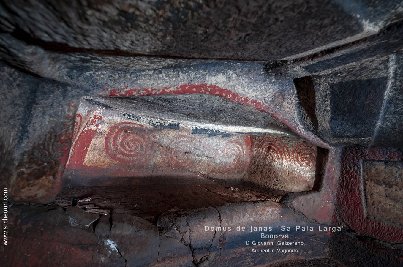 Gruppo di sette e più Domus de Janas poste sul passo, verso L”azienda Mariani, da cui si domina la piana di Santa Lucia e la sottostante necropoli di Sant”Andrea Priu e la valle dei nuraghi di Torralba. La tomba sette, della doppia spirale in ocra rossa, è stata restaurata di recente