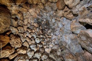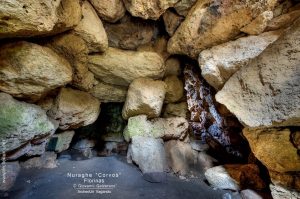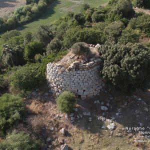 Si tratta di un nuraghe monotorre dalla forma caratteristica a tronco di cono con due camere sovrapposte….Vi si accede dalla porta centrale esposta a sud-sud-est ed è provvisto di una camera centrale con filari aggettanti che chiudono la cupola, e di tre celle laterali disposte ortogonalmente (90°) rispetto all’ingresso. Una scala a spirale in senso orario ci conduce sopra il nuraghe proprio sopra la camera centrale, dove è ancora evidente l’alzato della seconda camera.