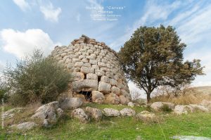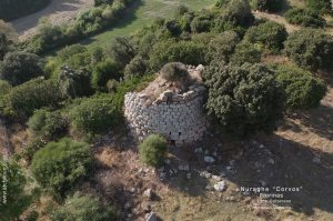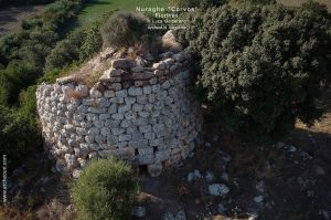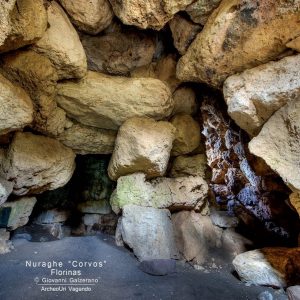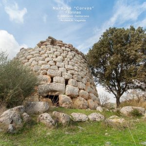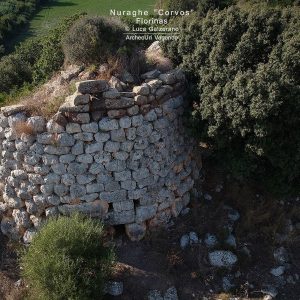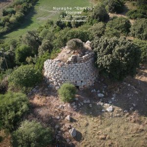Il Corvos, apparentemente monotorre, è invece un nuraghe complesso di cui si conserva ancora in ottimo stato la torre centrale bicroma con il primo livello in calcare ed il secondo in trachite. Varcata la soglia d’ingresso si nota da subito l’insolita scala, antioraria, che parte sul lato sinistro del corridoio; la camera, dotata di tre nicchie e notevolmente interrata conserva integra la tholos alta circa 5 metri. E’ crollato invece il primo piano