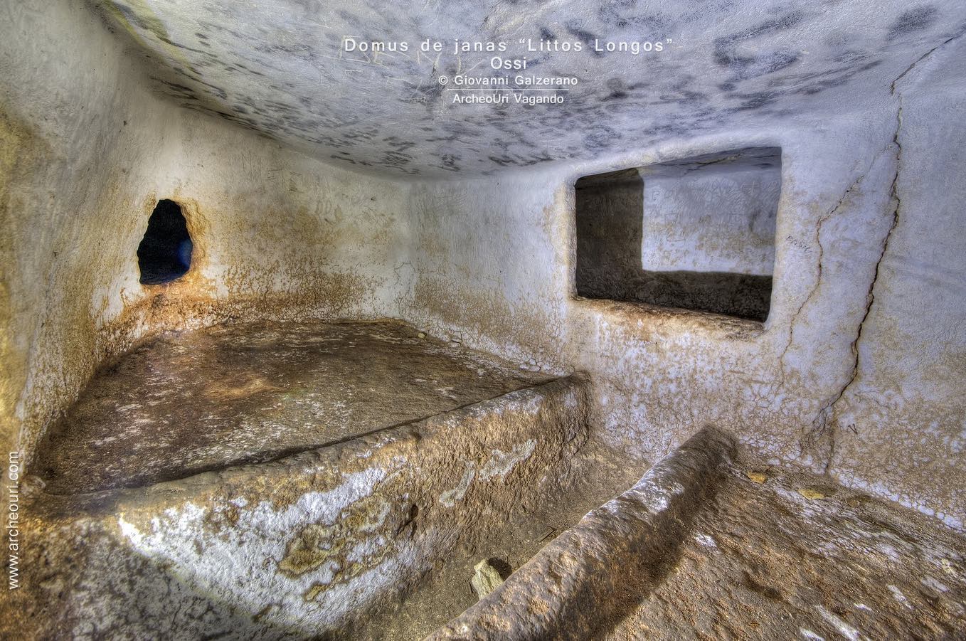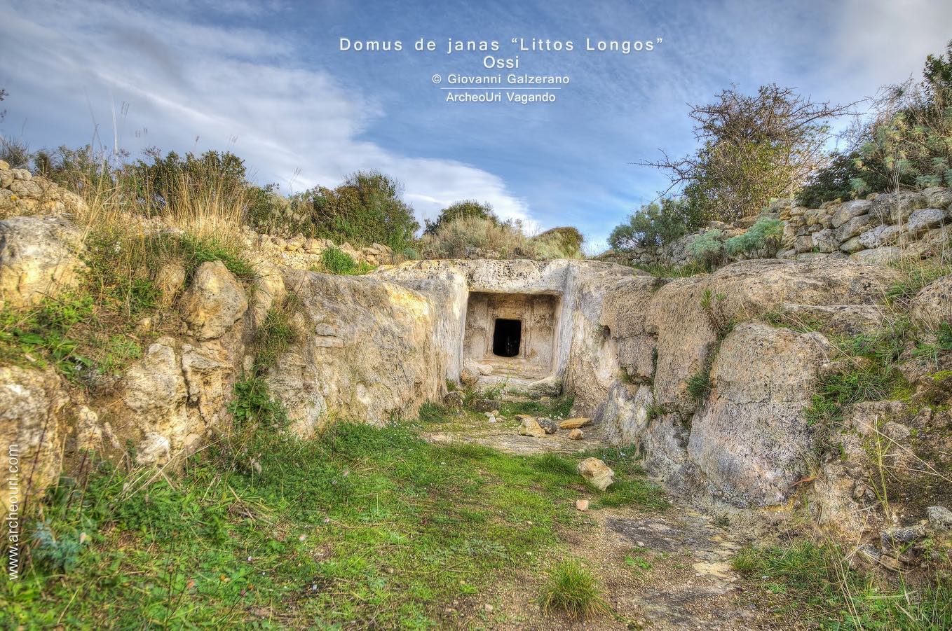 Nel quadro vasto e articolato dell’architettura ipogeica isolana, infatti, le maestose necropoli di Mesu ‘e Montes, S’Adde ‘e Asile, S’Isterridolzu, Noeddale, Su Littu, e la Tomba di Littos Longos hanno apportato dati estremamente significativi per la conoscenza del fenomeno dell’ipogeismo. L’ingresso è caratterizzato da un lungo dromos scavato nel calcare. All’interno protomi taurine e altre decorazioni scolpite.