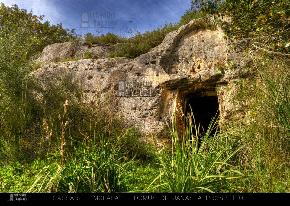 La domus, il cui ingresso è preceduto da un lungo corridoio, il dromos, ha sezione planimetrica a T: è formato da una piccola anticella quadrangolare che, attraverso un portello, immette in un ampio vano rettangolare; qui, nelle pareti laterali si aprono due cellette.