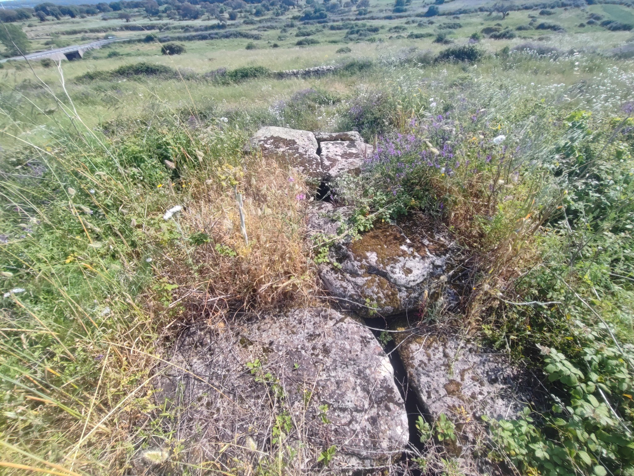 Questa maestosa sepoltura isodoma in blocchi di basalto é inclusa in un area archeologica che comprende un dolmen ed un nuraghe a poche decine di metri l’uno dall’altro.