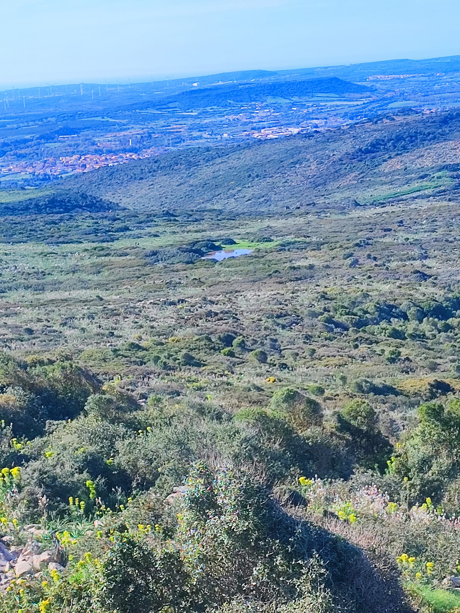 Nuraghe complesso costituito da 3 torri erette in posizione lineare, arroccate sulla punta rocciosa del Monte Sirimagus, una delle quali con un pozzo scavato nella roccia. Tutto attorno un villaggio con decine di capanne circondato da ben 3 cinta di mura. Sito ampiamente manomesso dai tombaroli. Ai piedi del monte un laghetto perenne utilizzato in epoca nuragica.